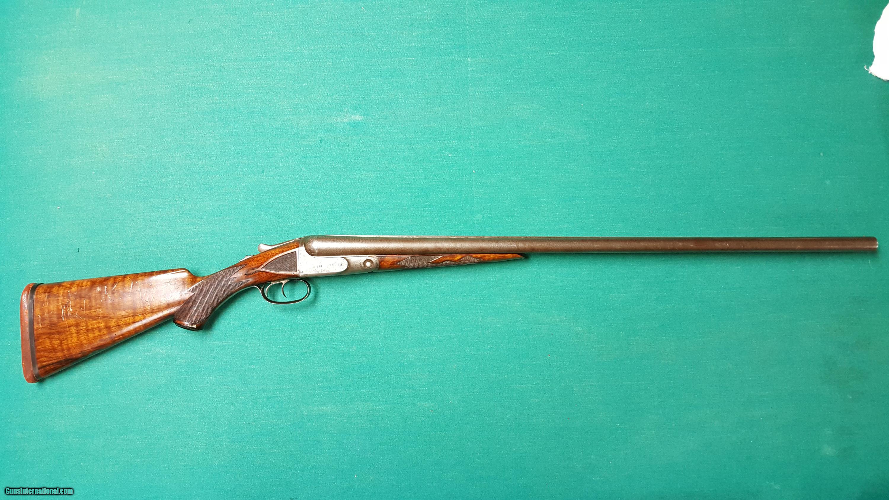 Description: Parker Brothers two barrel 12 gauge set. Beautifully engraved with bird dogs and geese in flight. Damascus steel. Dual triggers. Extracters. Mirror Bores. SOLD Manufacturer: Parker Brothers Model: DHE Serial Number: N130941 Caliber Info: 12 Gauge Bore: Full/Skeet Chambers: 2 3/4 Ejectors: Yes Condition: 95% Metal Condition: 98% Wood Condition: 95% Bore Condition: 99% Barrels: 26" skeet, 30" full Barrel Type: Double Damascus Triggers: Dual Gauge Info: 12 ga. Butt Pad: 75% Rib: No Finish: Damascus Weight: 8 lb Sights: Bead Manufacture Date: 1905 Engraving: Bird dogs, geese Item Location: Nashville Tennessee |