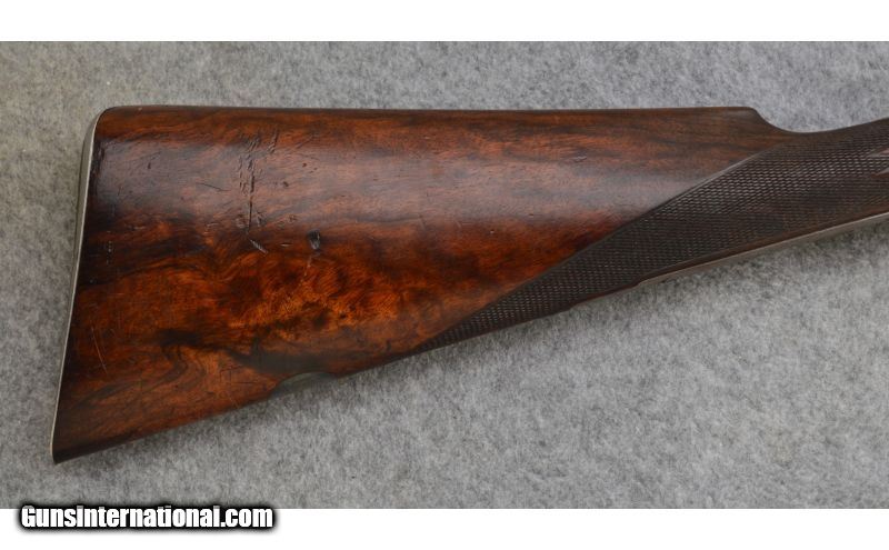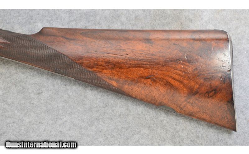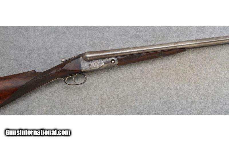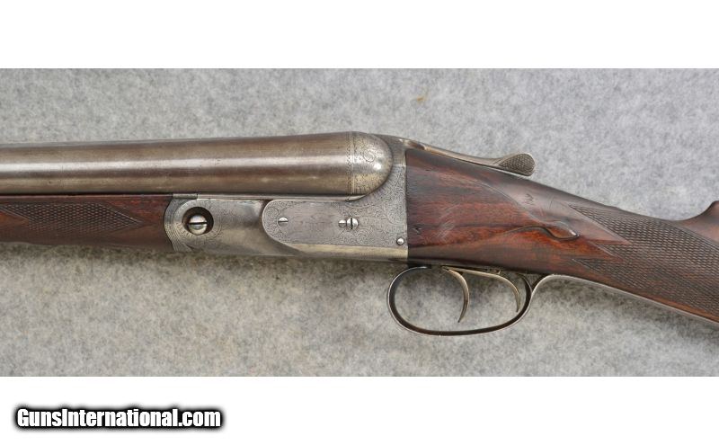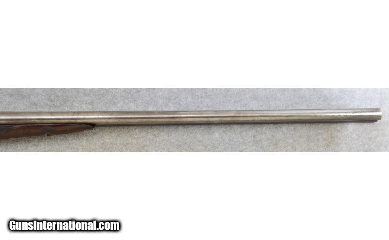 Description: Good condition overall with normal handling wear. Has the number 2 size frame. SOLD Curio/Relic: Yes Manufacturer: Circa: 1900 Caliber Info: 12 Gauge Chambers: 2 9/16 Metal Condition: Good Wood Condition: Good Bore Condition: Very Good Barrels: 30" Titanic Steel Barrels with Tapered Concave Rib Triggers: Double Triggers with Extractors Stock: Checkered Deluxe Walnut Straight Grip Butt Stock Stock Dimensions: DAC: 1 3/8", DAH: 2 1/8". Cast off: 1/8", LOP: 14 3/8 Fore End: Checkered Splinter Style with Engraved Irons Butt Pad: Checkered Wood with Steel Skeleton Butt Plate Weight: 7 lbs. 12 ozs. Sights: Single Bead Chokes: Fized: Improved Modified & Improved Modified Item Location: Hamburg, PA |