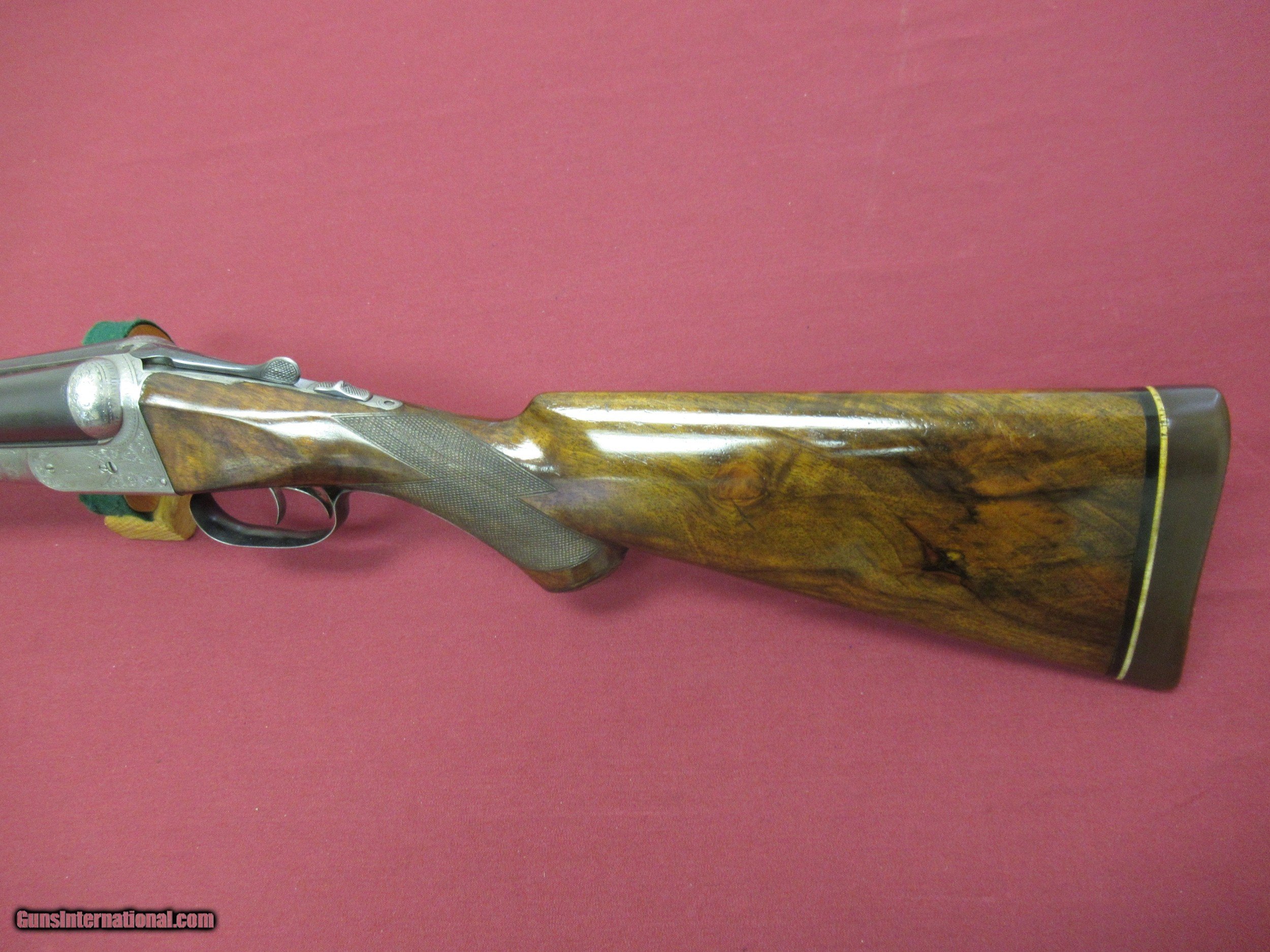 Description: Parker Bros. 12 GA. DHE Serial# 153xxx (1910 Production). Appears that some refinish work on the Wood ( coat of varnish added but not in the checkering ). Barrels possibly. The scroll work around the receiver end appears a little light. Selling and pricing it as a refinished gun. Number 3 Frame with the chambers opened up to 3". Auto Ejectors work fine and the gun shoots well. Double Triggers. 30" Barrels choked Mod. & Full. A Nice Old Parker for Pheasants or Water Fowl. Several minor Handling Marks on the buttstock (pictured). Can't hurt this old gun taking it afield. Slight Case Colors on the protected areas of the Receiver. Pachmayr Presentation Pad added. Priced to Sell. SOLD Curio/Relic: Yes Manufacturer: Parker Brothers Model: DHE Serial Number: 153559 Chambers: 3 Ejectors: Auto Ejectors Condition: Some Refinish Metal Condition: Excellent - showing wear for it's age Wood Condition: Coat of Varnish added Bore Condition: Excellent Barrels: 30 Barrel Type: Titanic Steel Action: Double - Side by Side Triggers: Double Gauge Info: 12 Stock Comb: 1&1/4 Stock Heel: 2&1/8 Fore End: Factory Beavertail Butt Pad: Pachmayr Presentation LOP: 14 Rib: Standard Sights: Raybar Front sight Manufacture Date: 1910 Choke Left: Full Choke Right: Modified Engraving: Standard DH Grade Case: Very Little |