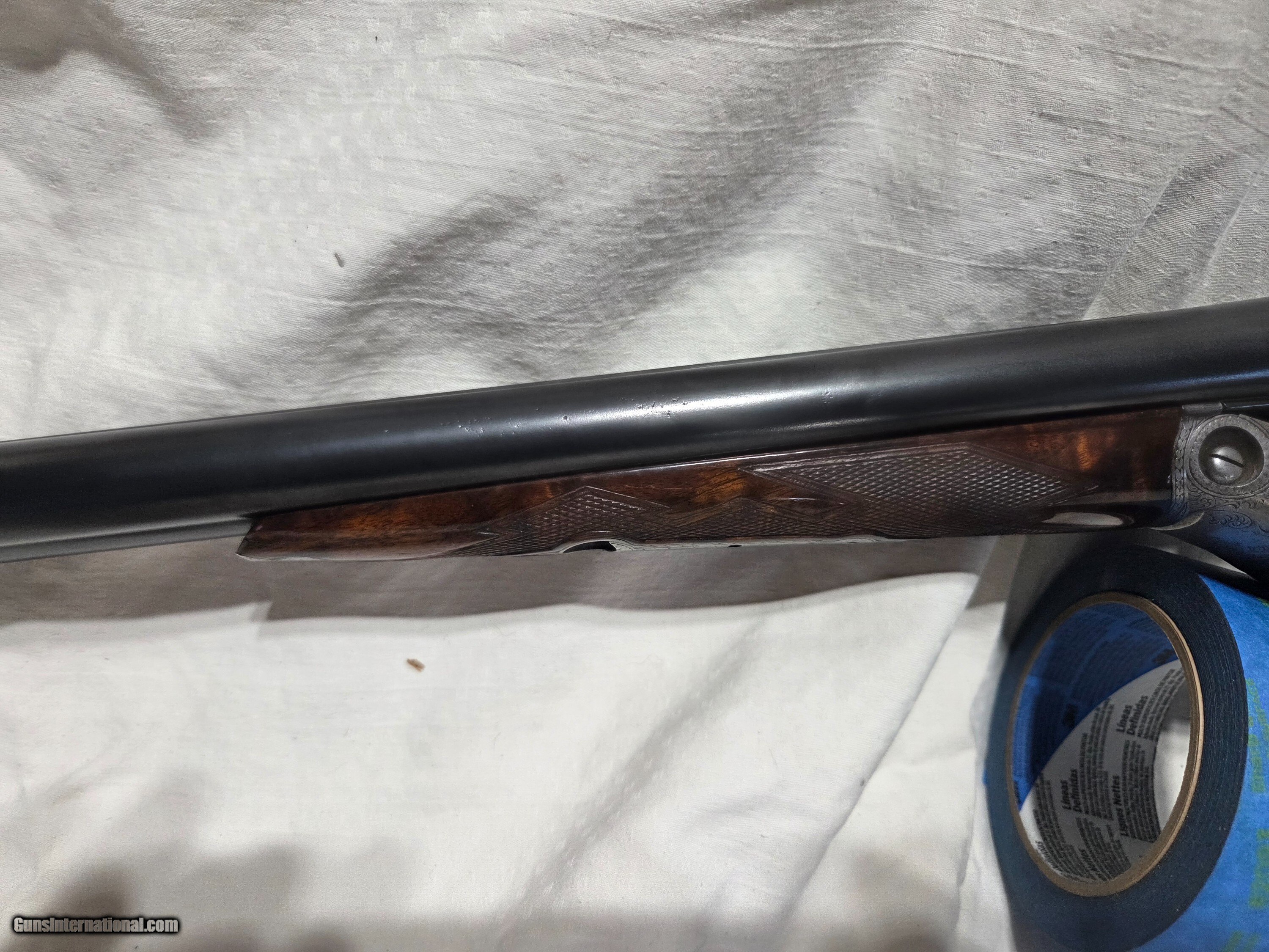 Description: Par ker Brothers DHE 12 gauge with 32" barrels on a number two frame, choked IC right Mod left. LOP 15" frrom front triger. Fluid steel barrels, right ejector needs work barrels are clean inside and out no pitting or dents. Curio/Relic: Yes Shotgun Gauge: 12 Gauge Manufacturer: Parker Bro. Model: DHE Serial Number: 209122 Barrel Length: 32 Bore Info: No pitting Chambers: 2 3/4 Ejectors: yes Condition: very good Metal Condition: excelent Wood Condition: excellent Bore Condition: excellent Barrels: No dents Barrel Type: Fluid Steel Action: Break action Triggers: Double Stock Dimensions: 15 Stock Comb: 1 1/2 Stock Heel: 2 Stock Cast: 0 Butt Pad: Silvers pad with spacers LOP: 14 3/4 Rib: Solid Weight: 8lb 4oz Manufacture Date: Approx. 1924 Choke Left: Modified Choke Right: Improved Cylinder Engraving: D grade Price: $3,200.00 Contact Seller |