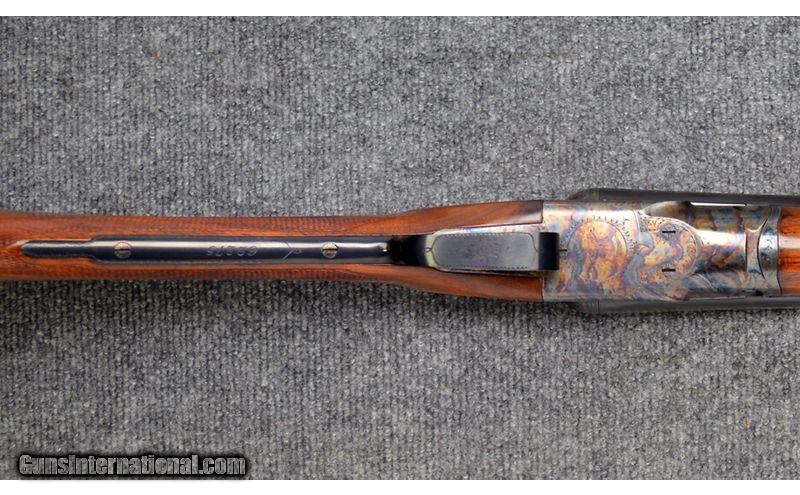 Description: For your consideration, a Parker Brothers G Grade side by side chambered in 12 Gauge. This piece is equipped with extractors, an automatic safety, and a concave game rib. The frame is dazzlingly case colored and is embellished with accents of ducks in flight, snipes, and pheasant. Stock dimensions are as follows: 14 1/4" LOP, 2" drop at heel, 1 1/2" at face, and 1 1/16" at comb. 12 Gauge SOLD Chambers: 2.75 Metal Condition: Excellent Wood Condition: Excellent Bore Condition: Excellent Barrels: 28 Triggers: Double Stock Dimensions: 14.25" LOP Fore End: Splinter Butt Pad: Checkered Weight: 8 LBS Sights: Bead Chokes: "Left, Mod / Right, IC Item Location: Hamburg, PA |