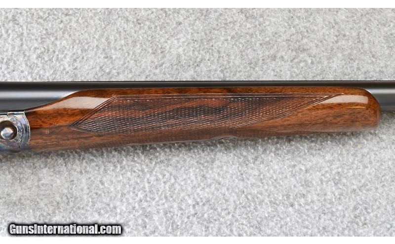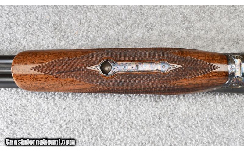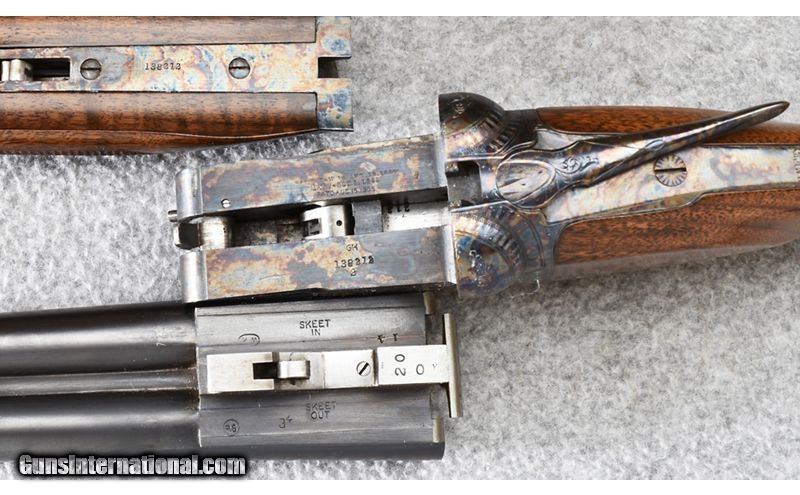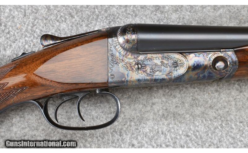 Description: This Parker shotgun dates to 1906 and has been beautifully restored by Larry DelGrego & Son in Ilion, NY. The company has been around since 1955 and maintains Parker's high standard of excellence in their restoration projects. Wood is excellent with visually attractive grain pattern. There are a couple of indentations in wood where it has been bumped, but it still remains solid with a wonderful finish. Butt pad has also been checkered. Blue is wonderfully done with some light blue loss at top of barrel where it rested in rack. Case color dances with lovely patterns. Engravings are still sharp. According to Parker Shotgun book barrels were originally 28". This is a beautiful gun for the collector or shooter. 20 Gauge SOLD Chambers: 2 3/4" with Extractor Metal Condition: Excellent Wood Condition: Excellent Bore Condition: Excellent Barrels: 26" Solid Matte Rib Triggers: Double - Single Selective Safety Stock Dimensions: 13 3/4" LOP Fore End: Checkered Walnut Pistol Grip - Checkered Walnut Beavertail Butt Pad: Checkered Walnut Weight: 6 lb Sights: White Front Bead with White Mid Bead Chokes: Imp. Cyl. / Imp. Cyl. Item Location: Wheeling |