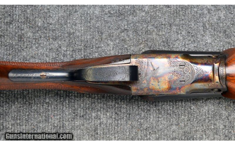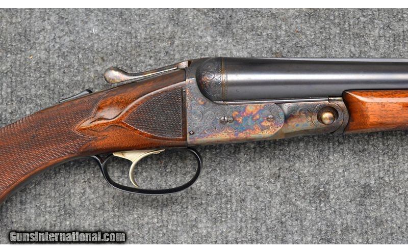 Description: For your consideration, a Parker Brothers GHE chambered in 12 Gauge. This piece features ejectors and an automatic safety. A switch next to the trigger allows selection of barrel firing order. The frame retains dazzling case coloration and is embellished with scroll work, scenes of pointing dogs, and of a pheasant cock in flight. The beavertail type forend is retained via Deeley type release. Stock dimensions are as follows: 14" LOP, 1 3/8 drop at heel, 1 1/4" at face, and 1 1/8" at comb. 12 Gauge SOLD Chambers: 3 Metal Condition: Excellent Wood Condition: Excellent Bore Condition: Excellent Barrels: 31 Triggers: "Single, Mechanical Fore End: "Beavertail, Checkered Butt Pad: Rubber Weight: 8.75 lbs Sights: Bead Chokes: IC Both Item Location: Hamburg, PA |