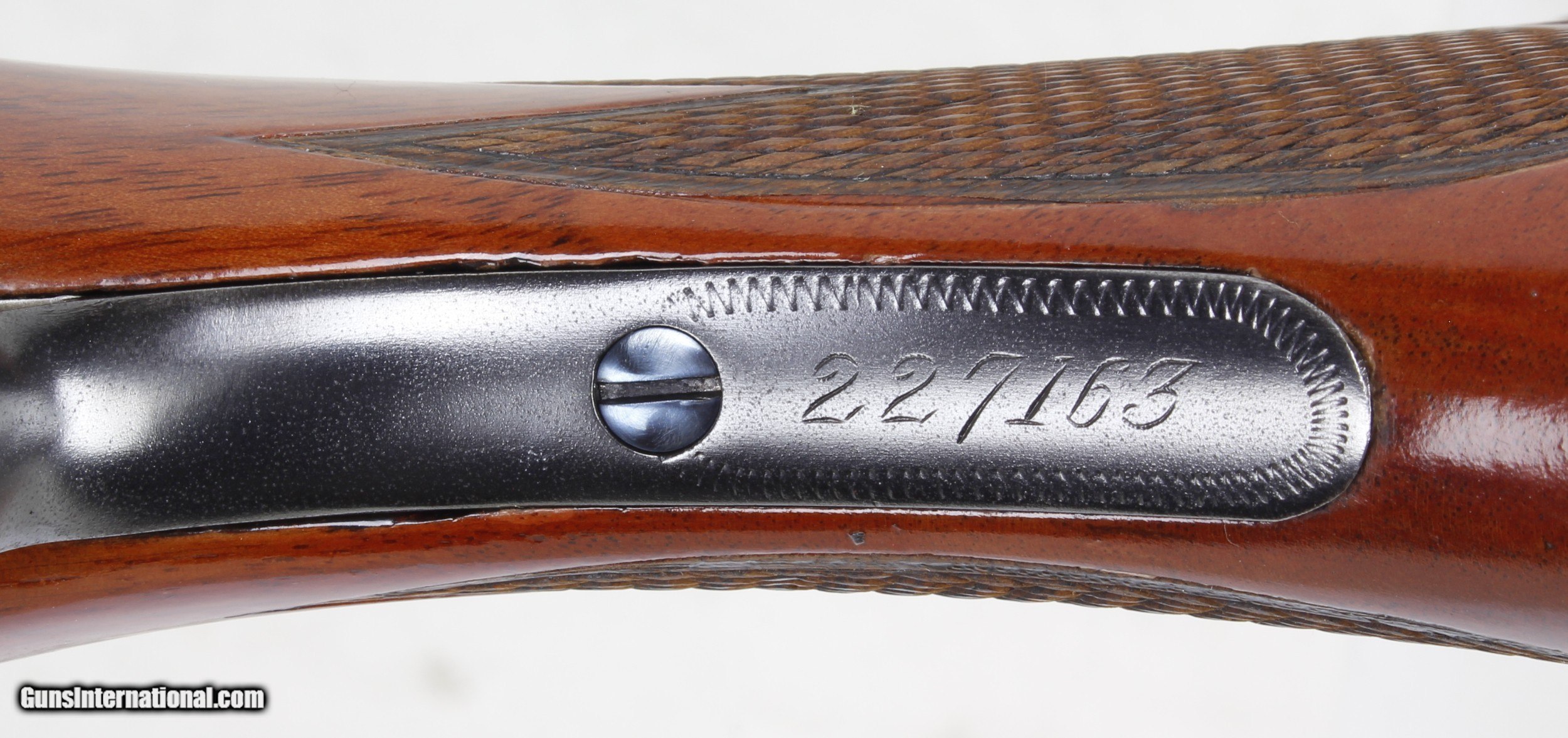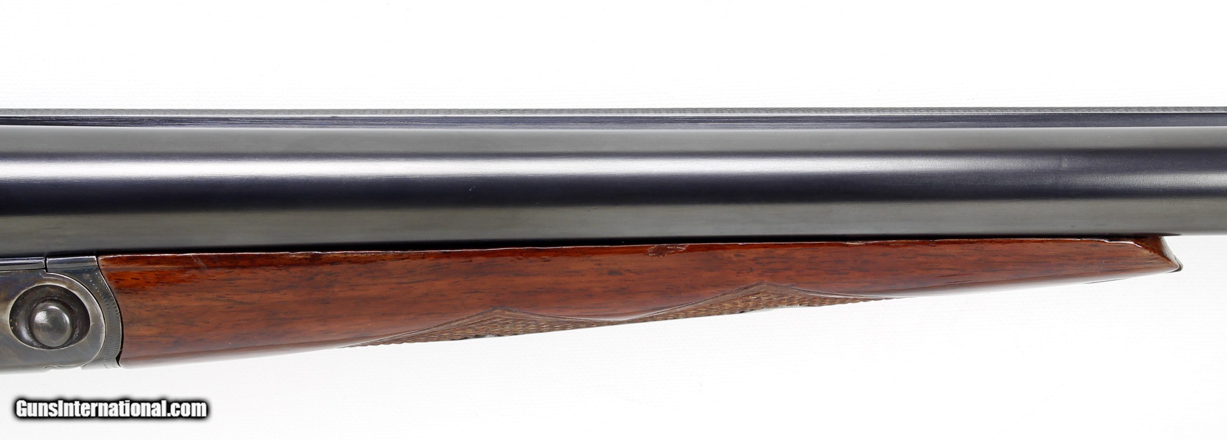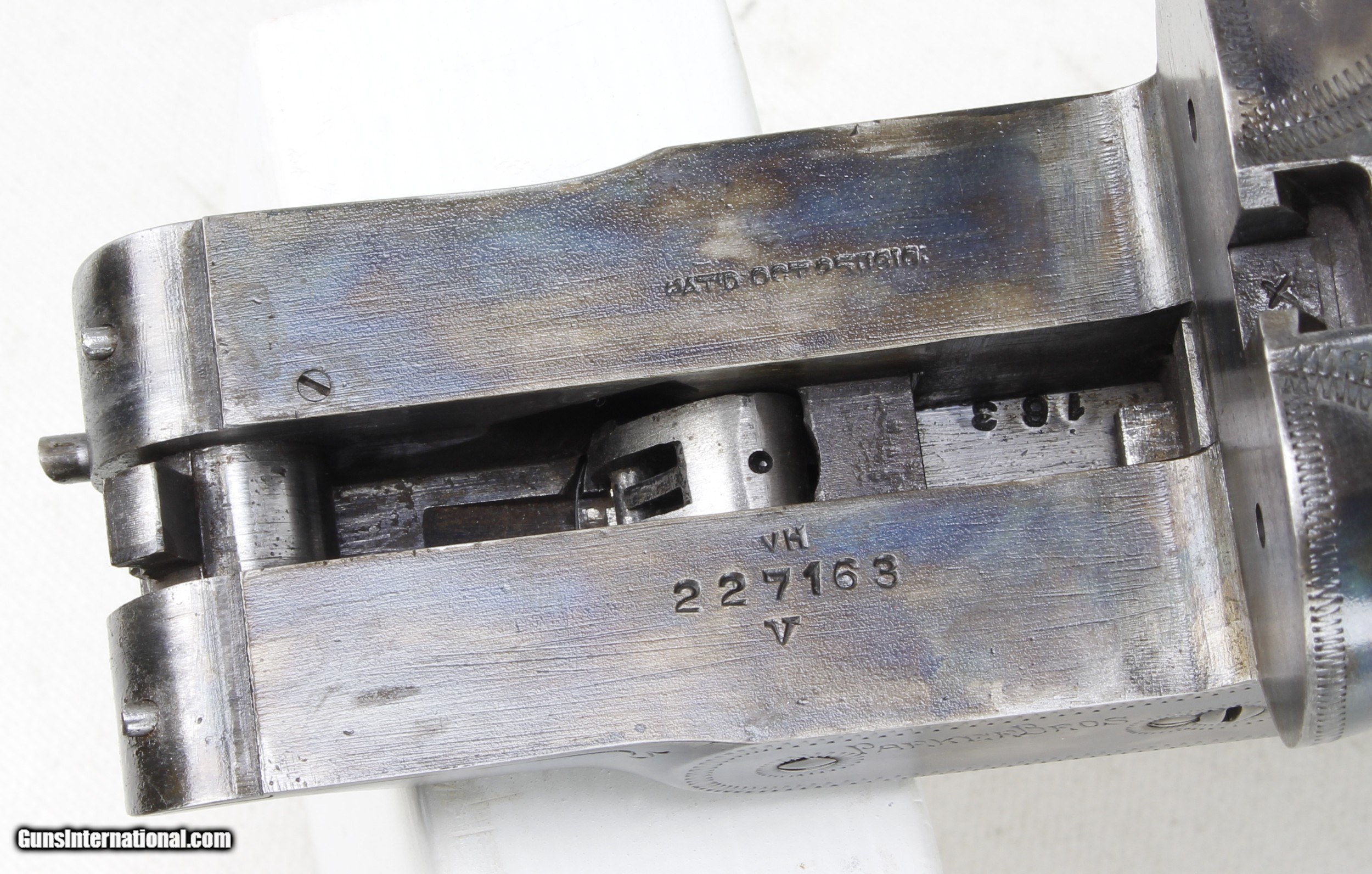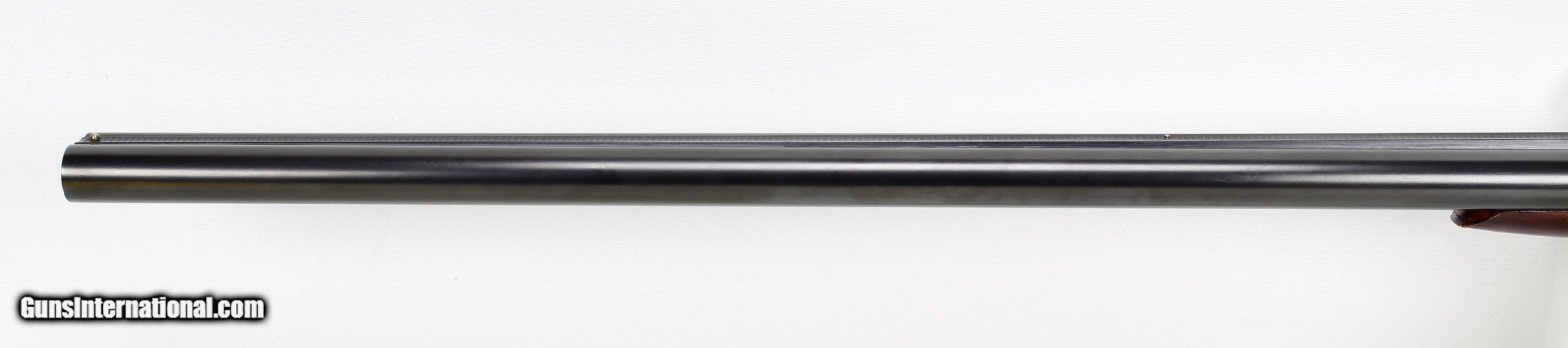 Description: Parker Brothers Model VHE SxS Grade V Shotgun in 12Ga. SN #227163. Mfg. in 1927. LOP 14 3/8" & 13 3/8". Chamber 2 5/8". DAH 2 9/16"- DAC 1 1/2". 30" Barrels with EXCELLENT Bores for the age of the gun. Chokes are R/S = Light Full and L/S = Full. The Blued Barrel and Case Colored Receiver have been nicely REFINISHED In-House as has the Checkered Grade V Pistol Grip Stock and Forend. Gun has Vulcan Steel Barrels, Matted Tapered Concave Rib with two Gold Sighting Beads. The Extractor, Serrated Safety and Top Lever all operate smoothly. Rubber Recoil Pad. The bottom of the Buttstock has the Original German Silver Shield inlaid into the stock. VERY SHARP ALL-AROUND. Weight: 7.8 lbs. Trigger Pull: Front- 4.2 lbs. Back- 5.25 lbs. More photos available upon request. Ships to Lower 48 W/ Insurance $45.00. SOLD Curio/Relic: Yes Shotgun Gauge: 12 Gauge Manufacturer: Parker Brothers Model: VHE Grade V SxS Serial Number: 227163 Barrel Length: 30 Condition: Excellent Metal Condition: Refinished Wood Condition: Refinished Bore Condition: Excellent LOP: 14 3/8" & 13 3/8 Finish: Blue / Case Colored Weight: 7.8 lbs Manufacture Date: 1927 Choke Left: Full Choke Right: Light Full |