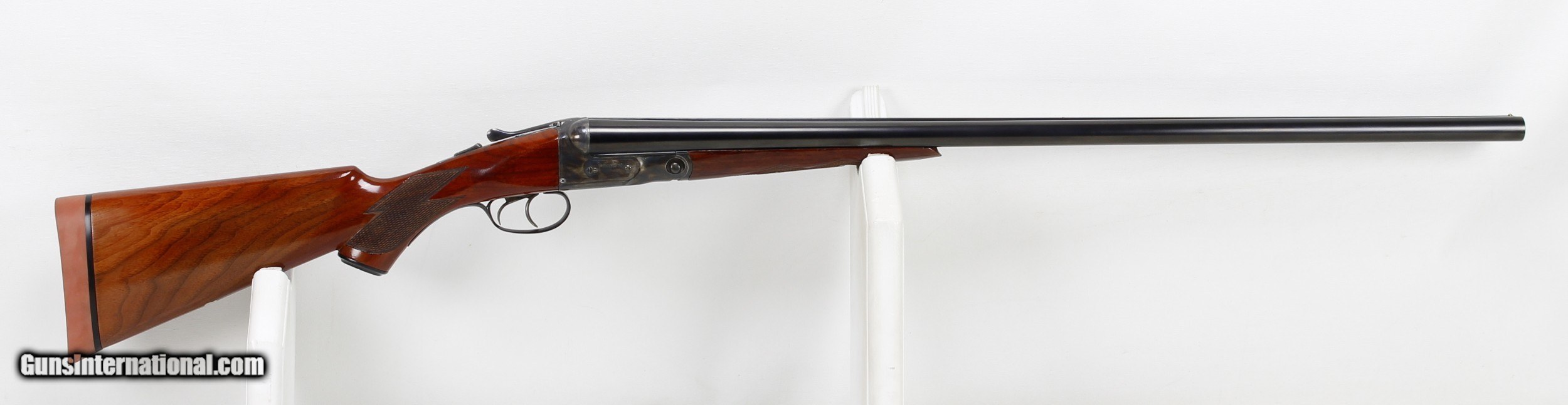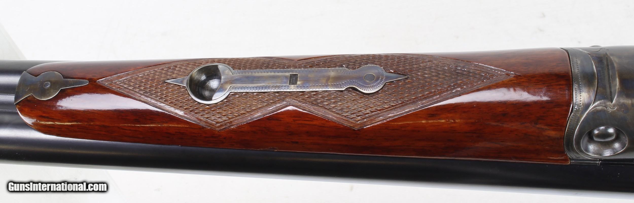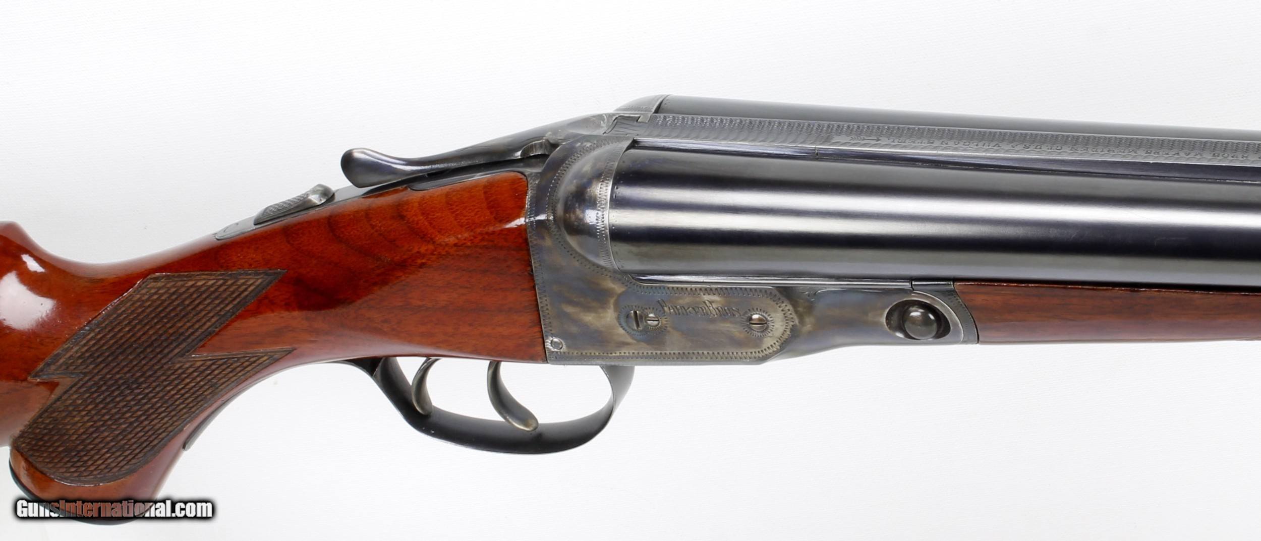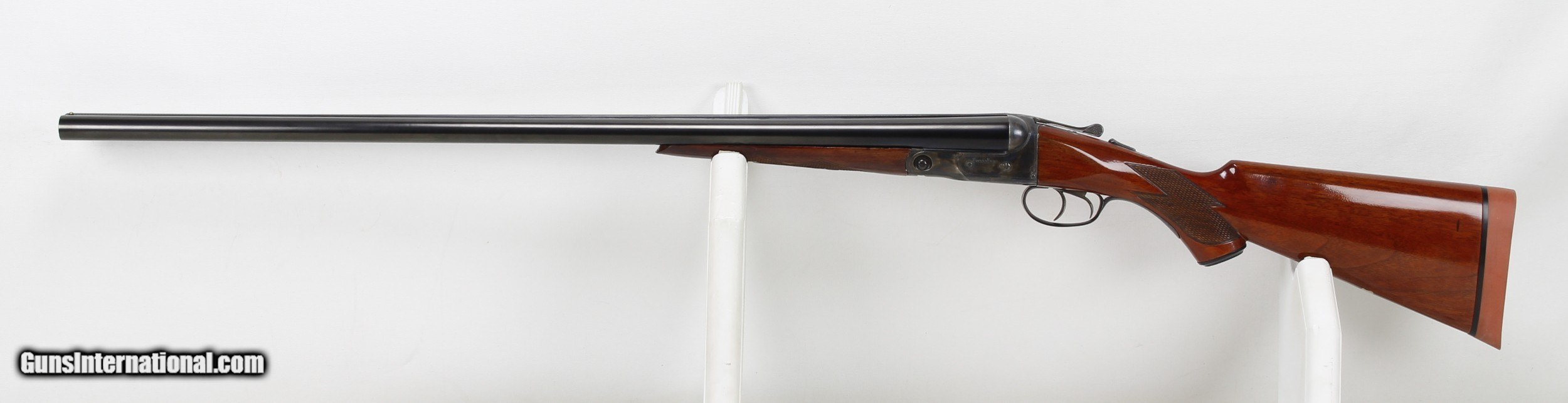 Description: Parker Brothers Model VHE SxS Grade V Shotgun in 12Ga. SN #227163. Mfg. in 1927. LOP 14 3/8" & 13 3/8". Chamber 2 5/8". DAH 2 9/16"- DAC 1 1/2". 30" Barrels with EXCELLENT Bores for the age of the gun. Chokes are R/S = Light Full and L/S = Full. The Blued Barrel and Case Colored Receiver have been nicely REFINISHED In-House as has the Checkered Grade V Pistol Grip Stock and Forend. Gun has Vulcan Steel Barrels, Matted Tapered Concave Rib with two Gold Sighting Beads. The Extractor, Serrated Safety and Top Lever all operate smoothly. Rubber Recoil Pad. The bottom of the Buttstock has the Original German Silver Shield inlaid into the stock. VERY SHARP ALL-AROUND. Weight: 7.8 lbs. Trigger Pull: Front- 4.2 lbs. Back- 5.25 lbs. More photos available upon request. Ships to Lower 48 W/ Insurance $45.00. SOLD Curio/Relic: Yes Shotgun Gauge: 12 Gauge Manufacturer: Parker Brothers Model: VHE Grade V SxS Serial Number: 227163 Barrel Length: 30 Condition: Excellent Metal Condition: Refinished Wood Condition: Refinished Bore Condition: Excellent LOP: 14 3/8" & 13 3/8 Finish: Blue / Case Colored Weight: 7.8 lbs Manufacture Date: 1927 Choke Left: Full Choke Right: Light Full |