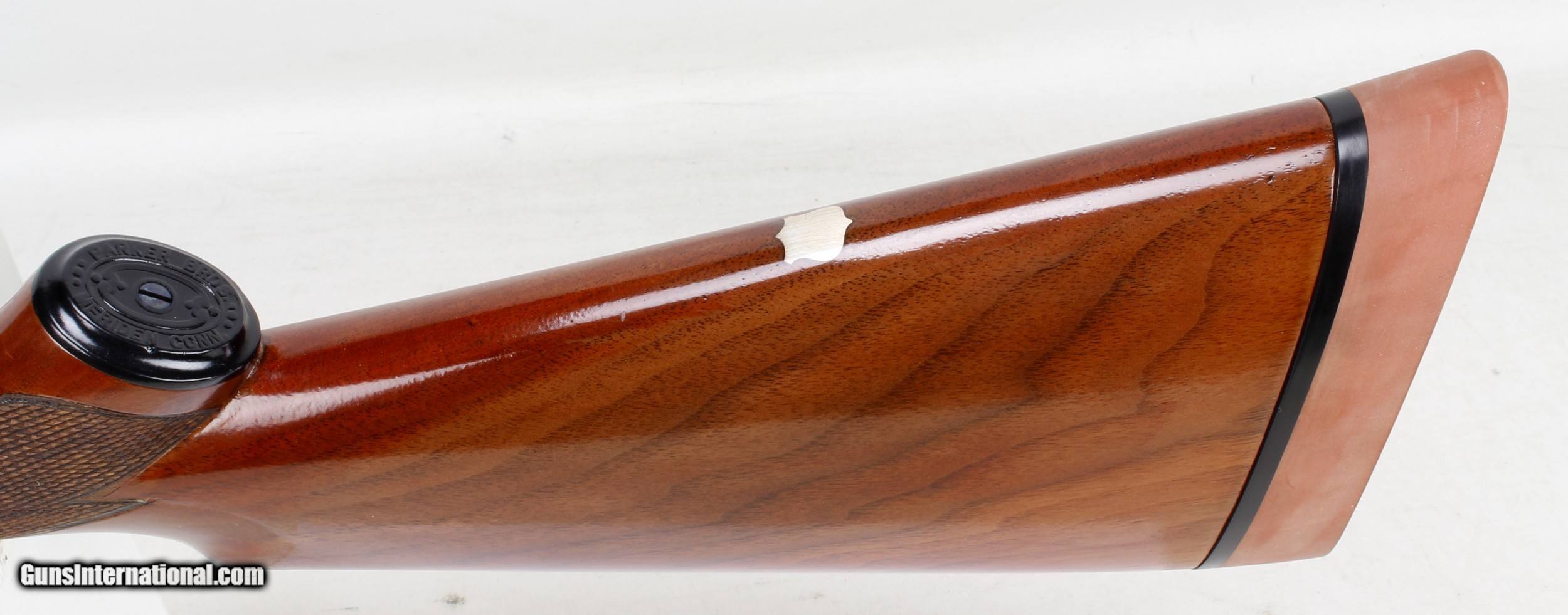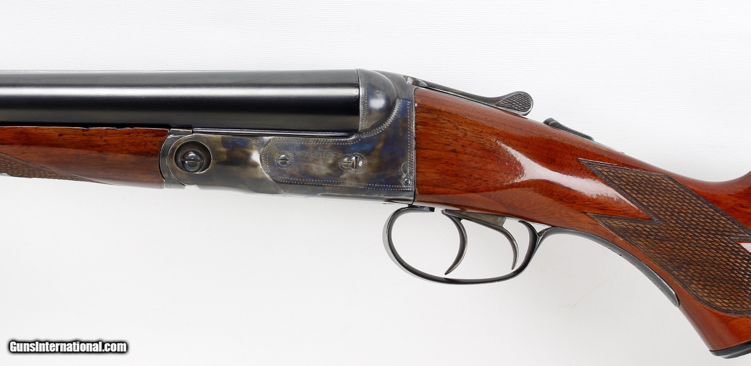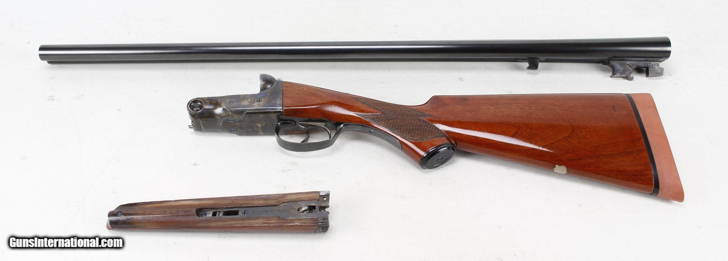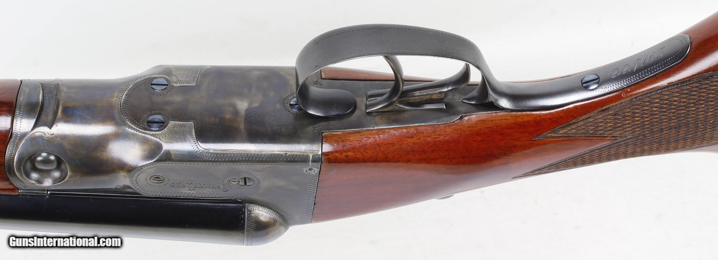 Description: Parker Brothers Model VHE SxS Grade V Shotgun in 12Ga. SN #227163. Mfg. in 1927. LOP 14 3/8" & 13 3/8". Chamber 2 5/8". DAH 2 9/16"- DAC 1 1/2". 30" Barrels with EXCELLENT Bores for the age of the gun. Chokes are R/S = Light Full and L/S = Full. The Blued Barrel and Case Colored Receiver have been nicely REFINISHED In-House as has the Checkered Grade V Pistol Grip Stock and Forend. Gun has Vulcan Steel Barrels, Matted Tapered Concave Rib with two Gold Sighting Beads. The Extractor, Serrated Safety and Top Lever all operate smoothly. Rubber Recoil Pad. The bottom of the Buttstock has the Original German Silver Shield inlaid into the stock. VERY SHARP ALL-AROUND. Weight: 7.8 lbs. Trigger Pull: Front- 4.2 lbs. Back- 5.25 lbs. More photos available upon request. Ships to Lower 48 W/ Insurance $45.00. SOLD Curio/Relic: Yes Shotgun Gauge: 12 Gauge Manufacturer: Parker Brothers Model: VHE Grade V SxS Serial Number: 227163 Barrel Length: 30 Condition: Excellent Metal Condition: Refinished Wood Condition: Refinished Bore Condition: Excellent LOP: 14 3/8" & 13 3/8 Finish: Blue / Case Colored Weight: 7.8 lbs Manufacture Date: 1927 Choke Left: Full Choke Right: Light Full |