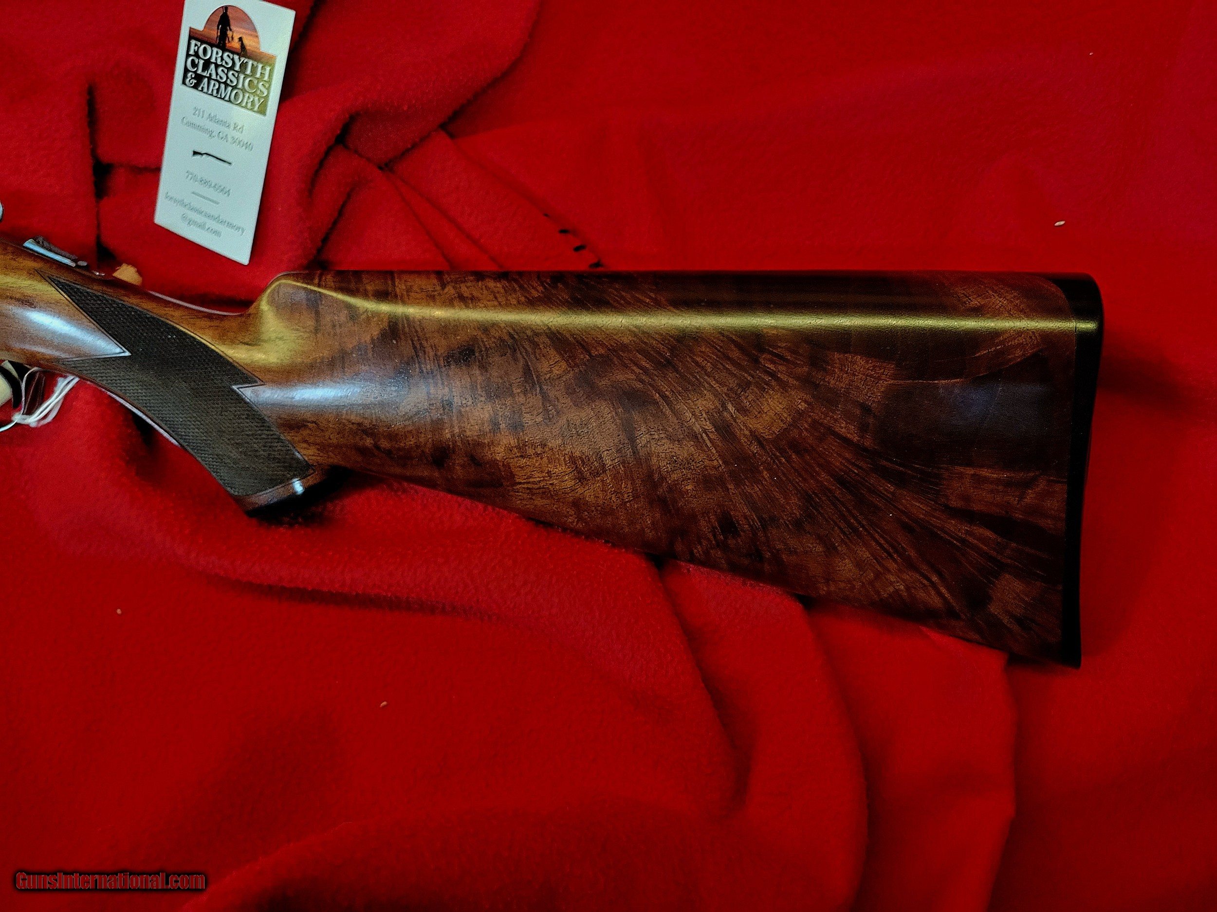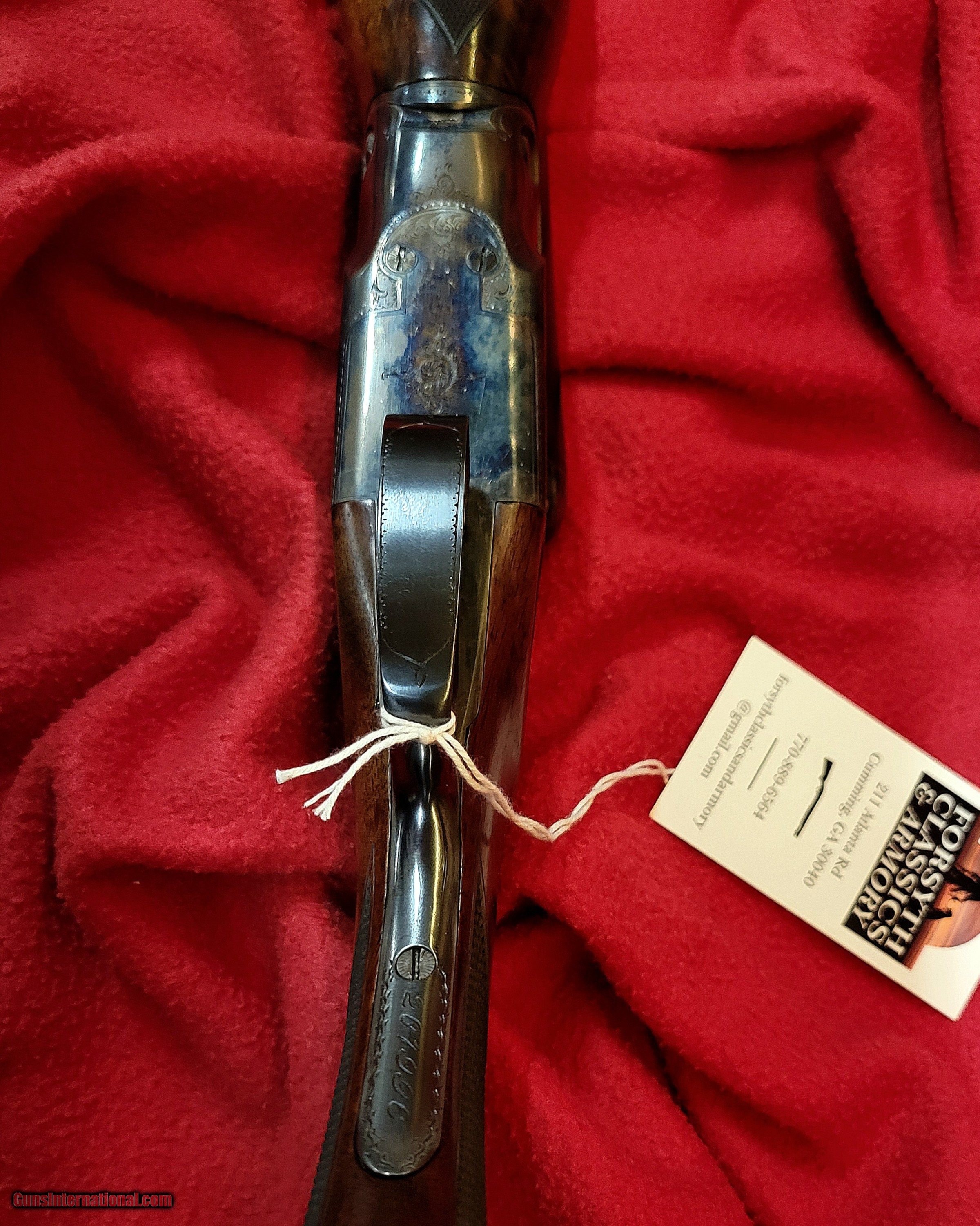 Description: +++REDUCED PRICE FOR QUICK SALE+++ This Parker PHE, 16ga PHE in 95%+ condition and was delivered in 1923. Is a Presentstion Parker. Gun will letter to factory records. All features on this Parker are amazing and shows as near new. The wood is grade 4 with highlights of Feather crotch and highly grained with colors. The wood to metal fit is simply impeccable. This Parker in our opinion has seen very little use as an older high quality restoration that resembles works of Doug Turnbull. The buttstock has a factory shield in gold that is engraved. The shield pictured shows engraved name (WW BACON) Walter Wolfkiel Bacon. He was the Governor of Delaware from 1941-1949, during the difficult period of WWII. Gov. Bacon was instrumental in devising a mission to provide key alliances with various branches of the US Military in support of strategic methods to help the returning Soldiers safely back home as the war ended. This gun was simply used as a token and presentation of gun to thank Gov Bacon about 1946 or 1947 for his service and Actions. Being this Parker Bros Gun is on Consignment through Forsyth Classics and Armory, we are not accepting trades or layaways. Please review all photos and details of this fine Parker Bros example. Should you have any questions, please feel free to contact us anytime via GI or simply call. We love talking Classic Arms. SOLD Curio/Relic: Yes Shotgun Gauge: 16 Gauge Manufacturer: Parker Brothers Model: PHE Bore: Mirror and Bright Chambers: 2 3/4in Ejectors: Yes, strong Condition: Excellent Metal Condition: Excellent Wood Condition: Excellent Bore Condition: Excellent Barrels: Parker Steel Triggers: Double Fore End: Beavertail Butt Pad: DHBP Weight: 6lbs, 6oz Sights: Dual Ivory Beads Manufacture Date: 1923 Engraving: PH Grade Case: Hard Case to accompany gun |