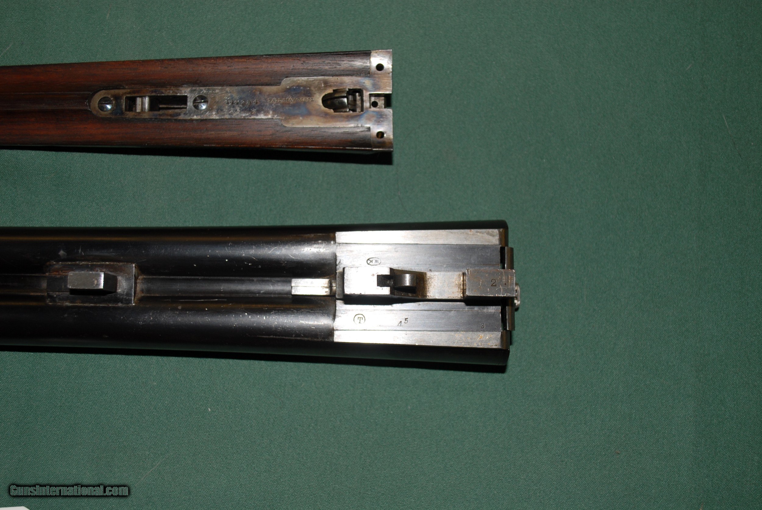 Description: NOTE NEW PRICE AND ADDITIONAL BARREL. Nicely engraved Parker Brothers Model DH 12 gauge with 28" barrels and 30" barrel set with matching numbers. (also called "D"grade) Serial number places it in the 1907 era. Graded 80-90%. Barrels blue, bore very good, mechanics good. wood had some dings but nothing significant. After market butt pad. Beautiful engraved hunting scene. This gun is ready for collecting or field use. It has a capped pistol grip, ejectors, and hammerless action with Titanic steel barrels. We will ship to the lower 48 insured, except California for $55.00. We are FFL and must ship FFL. The price is for cash. We do accept credit cards at a 3% up charge. This is a very nice example of a legendary shotgun. You will enjoy it. If you have questions please call before offering KTF & Collectibles, Inc. at 817-334-0559. SOLD |