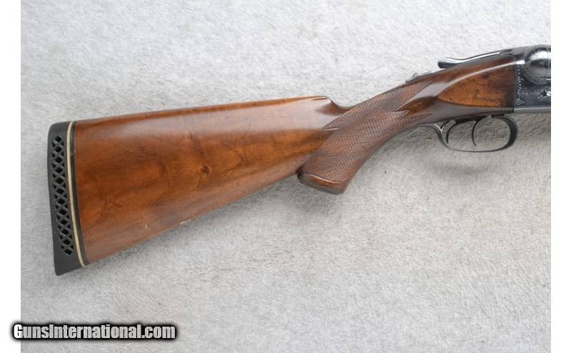 Description: This Parker Brothers SxS is a side by side shotgun in 12 Gauge. Manufactured in 1892. The barrels are 28 inches long with extractors and bead front sight. It has a splinter style, checkered hardwood forearm and the stock is a smooth hardwood with checkered panel pistol grips with a cap. It has black textured rubber recoil pad. None Chambers: 2 rounds Metal Condition: Good Wood Condition: Good Bore Condition: Good Barrels: "28"", smooth, extractors Triggers: Double triggers Stock Dimensions: LOP 14.25 Fore End: Splinter style checkered hardwood Butt Pad: Textured rubber recoil pad Weight: 8 lbs Sights: Bead front sight Chokes: Fixed Cylinder Item Location: Richfield, WI Price: $1,299.99 Contact Seller |