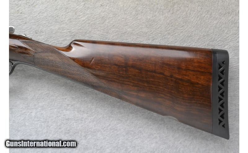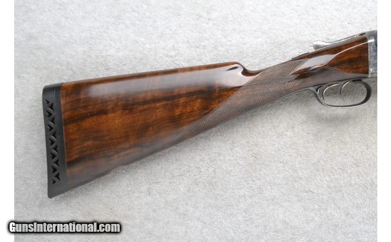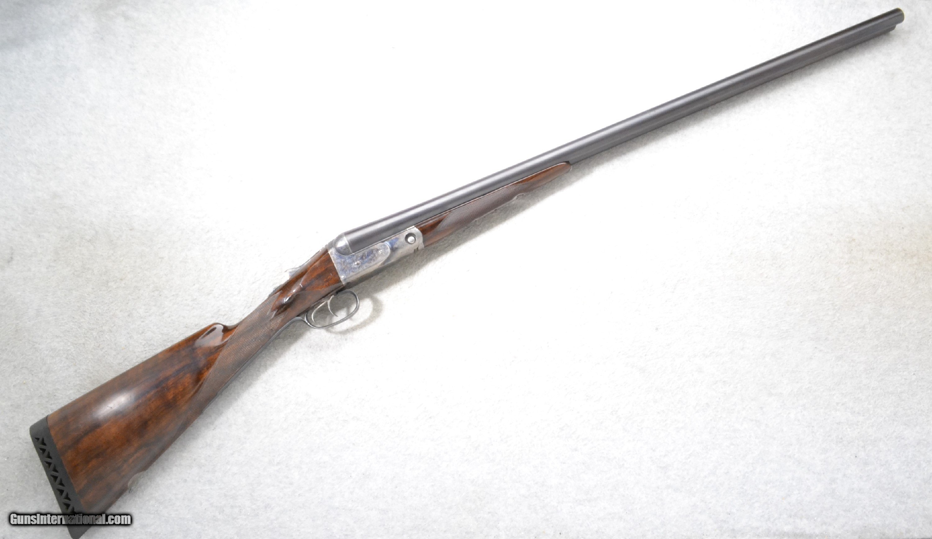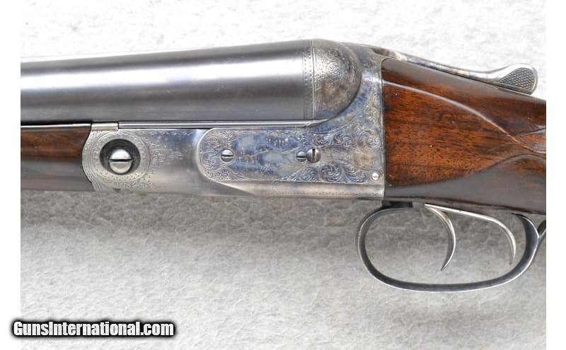 Description: This Parker Brothers SxS is a right-hand Side by Side shotgun in 12 Gauge. The barrels are 30 inches long. It has a brass bead front sight and an ivory bead mid-sight. The forearm is a splinter style, checkered walnut. The stock is a smooth walnut straight grip with checkered side panels. It has a black rubber recoil pad. The grading is DHE, and it was manufactured in 1907. 12 Gauge Curio/Relic: Yes Chambers: 2 rounds Metal Condition: Very good Wood Condition: Very good Bore Condition: Good Barrels: 30 Triggers: 2 triggers Stock Dimensions: LOP 14.5 Fore End: Splinter style checkered walnut Butt Pad: Black rubber recoil pad Weight: 8 lbs Sights: "Brass bead front, ivory bead mid Chokes: "R: fixed Modified, L: fixed Full Item Location: Richfield, WI Price: $1,799.99 Contact Seller |