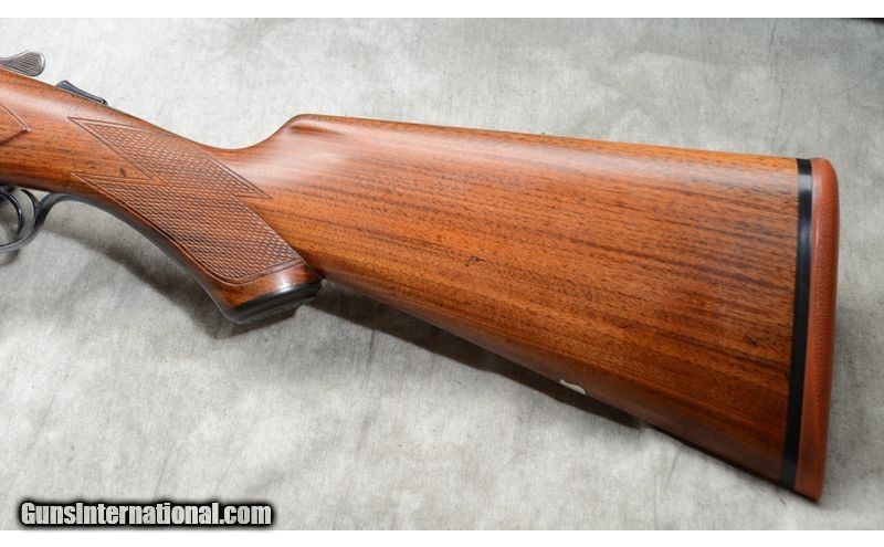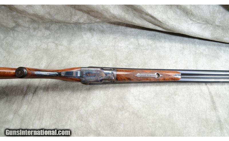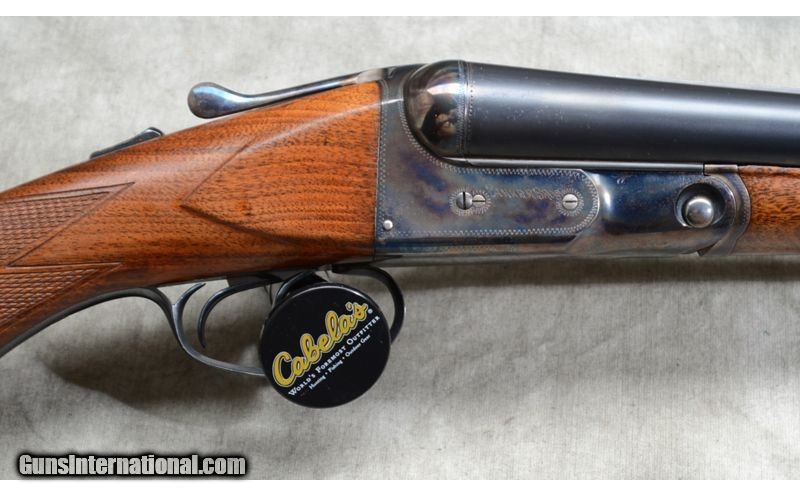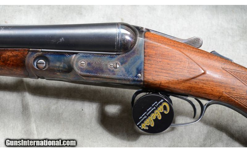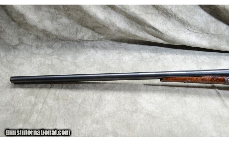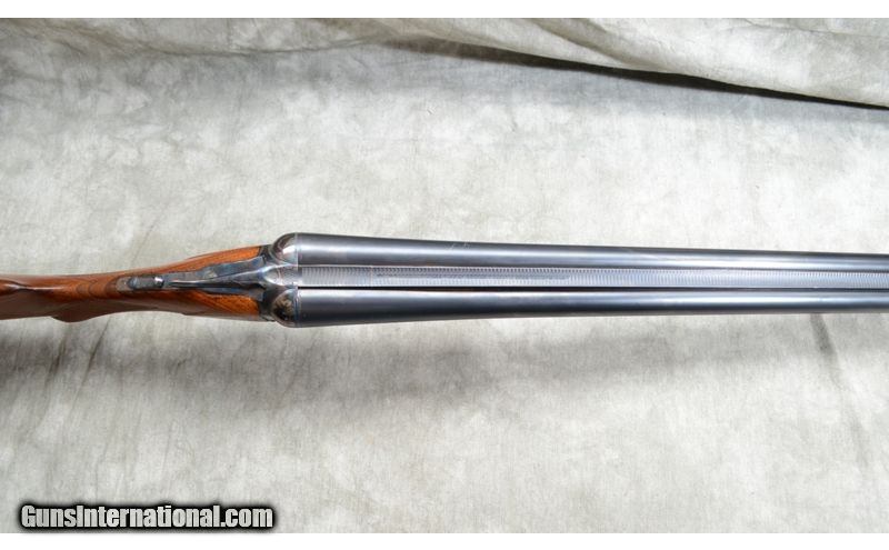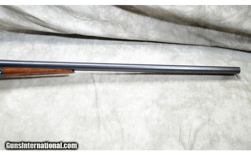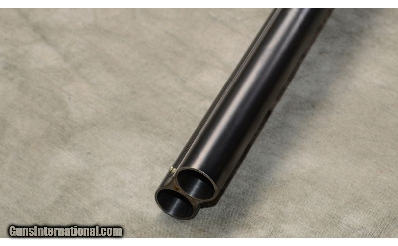 Description: Nice gun featuring some figure in the forearm, case colored frame and overall good condition. Top lever is well right of center. Engravings are quite sharp. Checkering is a little flat but sharp and clean. 12 Gauge SOLD Curio/Relic: Yes Chambers: 2 Metal Condition: Very good. Bluing is very nice and the engravings quite sharp. It doesn't look like it was re-done, but if it was, it was done very well by a good craftsman. Case color on the frame is vivid with some very shallow rust along the edges. Wood Condition: Very good. The stock appears to have been sanded and re-finished by a competent craftsman. Bore Condition: It has been fired but shiny and bright. Barrels: 30 inch Triggers: Double triggers. Stock Dimensions: 13-3/4 inch LOP. Fore End: Walnut splinter. Butt Pad: Rubber pad. Weight: 7 lb 13 Oz Sights: Gold bead on a solid matte rib. Chokes: Fixed Full and Full Item Location: Rogers |