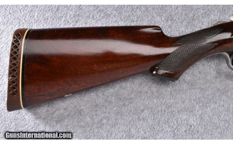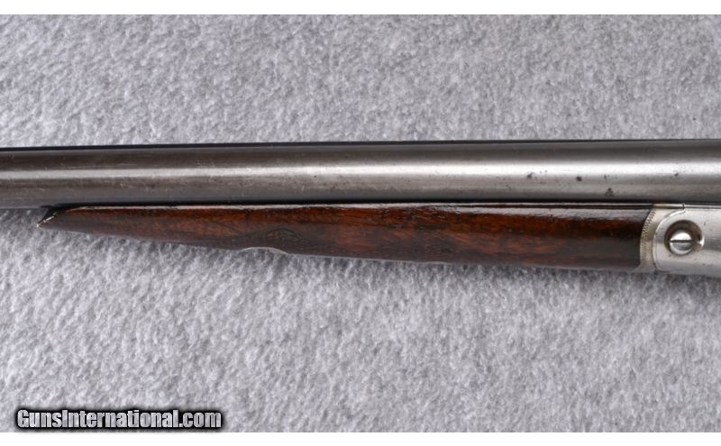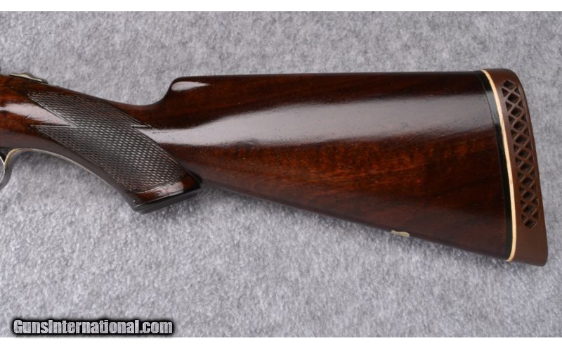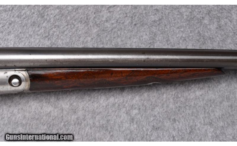 Description: Wood remains solid showing the normal scratches and scars of time with no visible cracks. Butt appears to have been cut long ago and a Pachmayr White Line butt pad added. A coat of finish has been added to wood. Bluing is very worn on barrels, especially high contact places. Very little case color remains. Bores remain excellent. Matching serial numbers on stock, forend and barrels. SOLD Manufacturer: S/N 143XXX (Circa 1907) Caliber Info: 16 GA Chambers: 2 1/2 Metal Condition: Very Good Wood Condition: Very Good Bore Condition: Excellent Barrels: 28" Vulcan Steel Triggers: Double Stock: Checkered Walnut Straight Grip Stock Dimensions: 13 1/4" LOP Fore End: Checkered Walnut Splinter Butt Pad: Pachmayr White Line Vented Brown Rubber Butt Pad Weight: 6 1/2 LB Sights: Single Front Brass Bead Chokes: Full/Full - Fixed Item Location: Wheeling, WV |