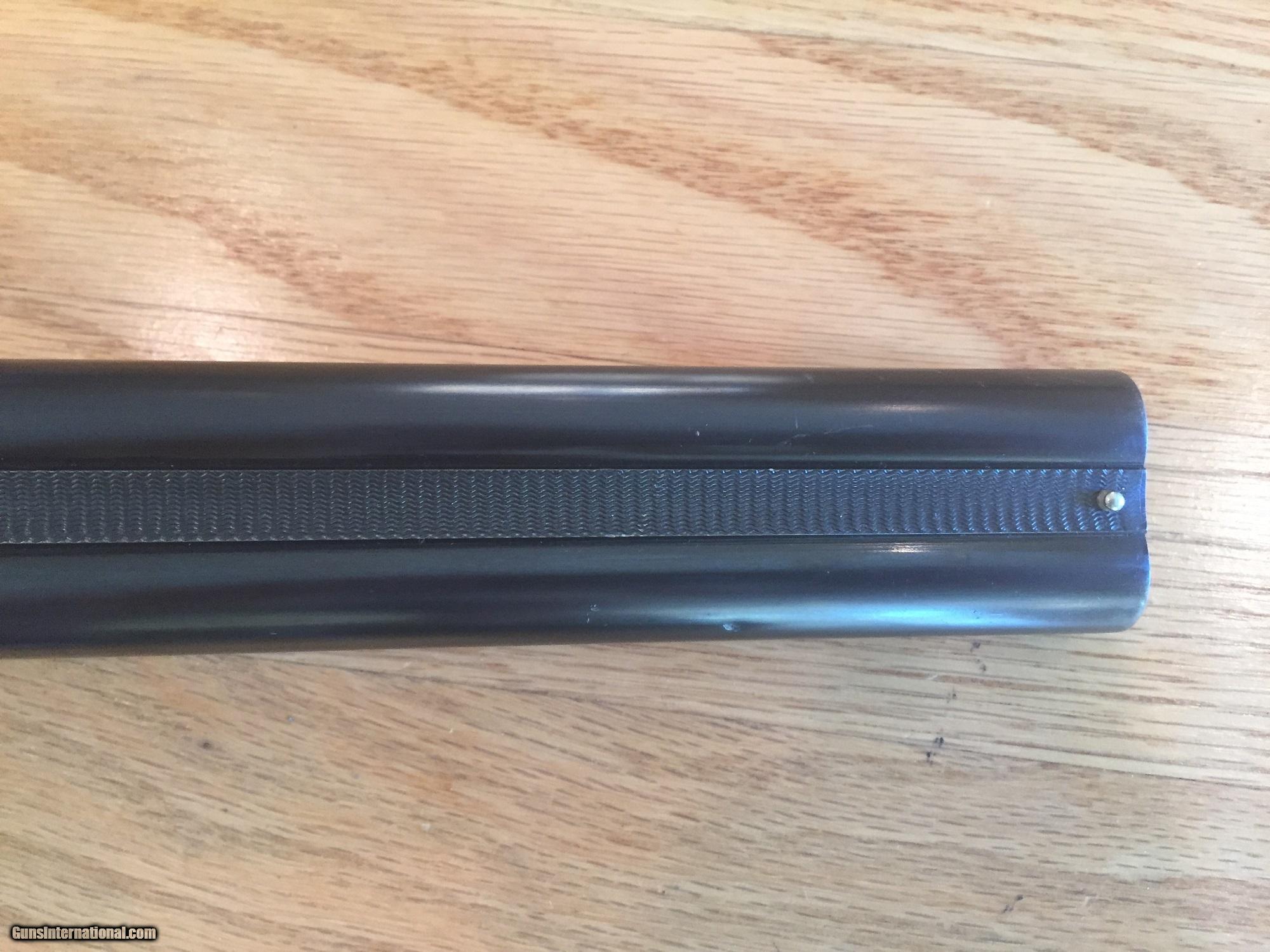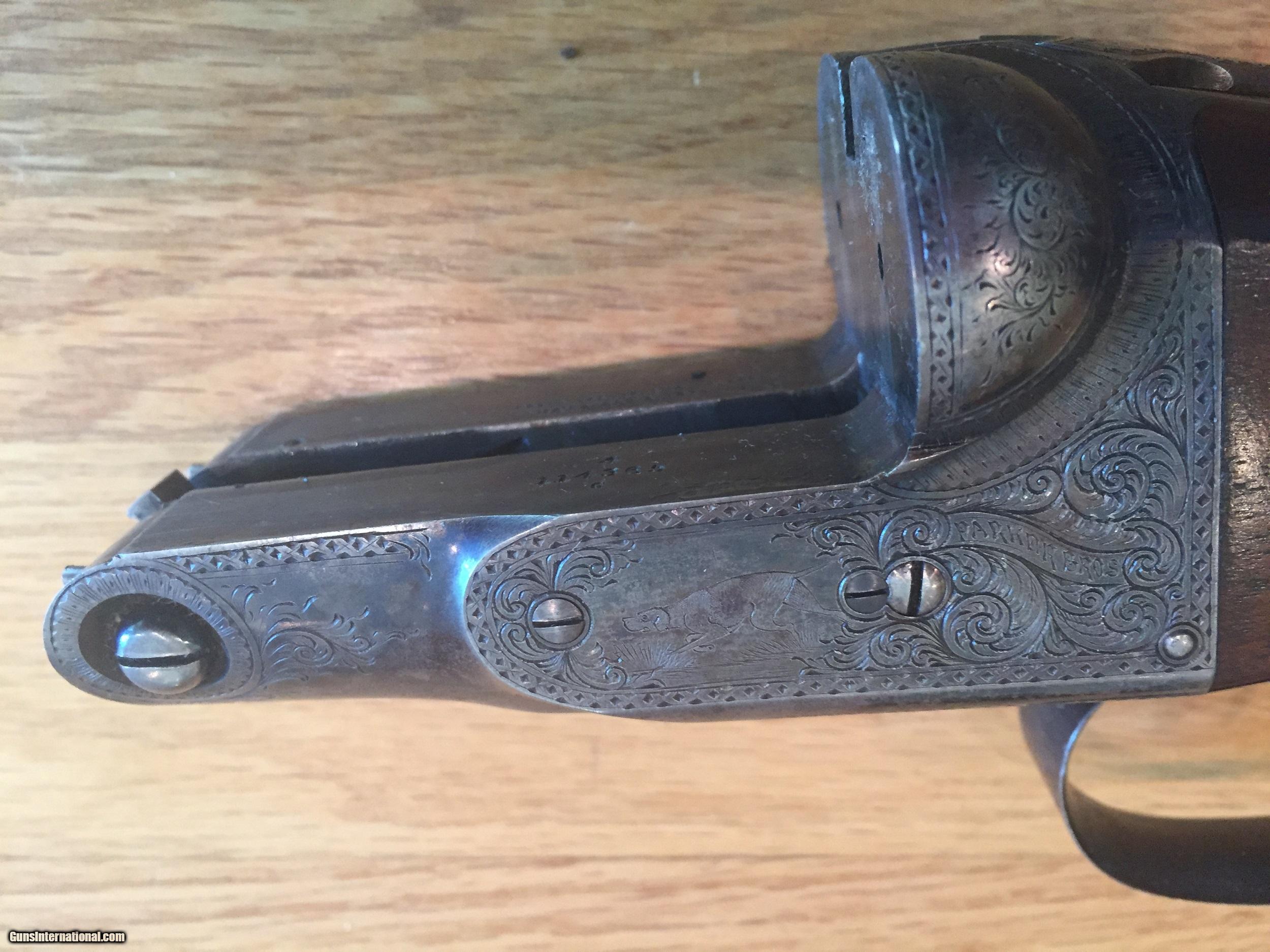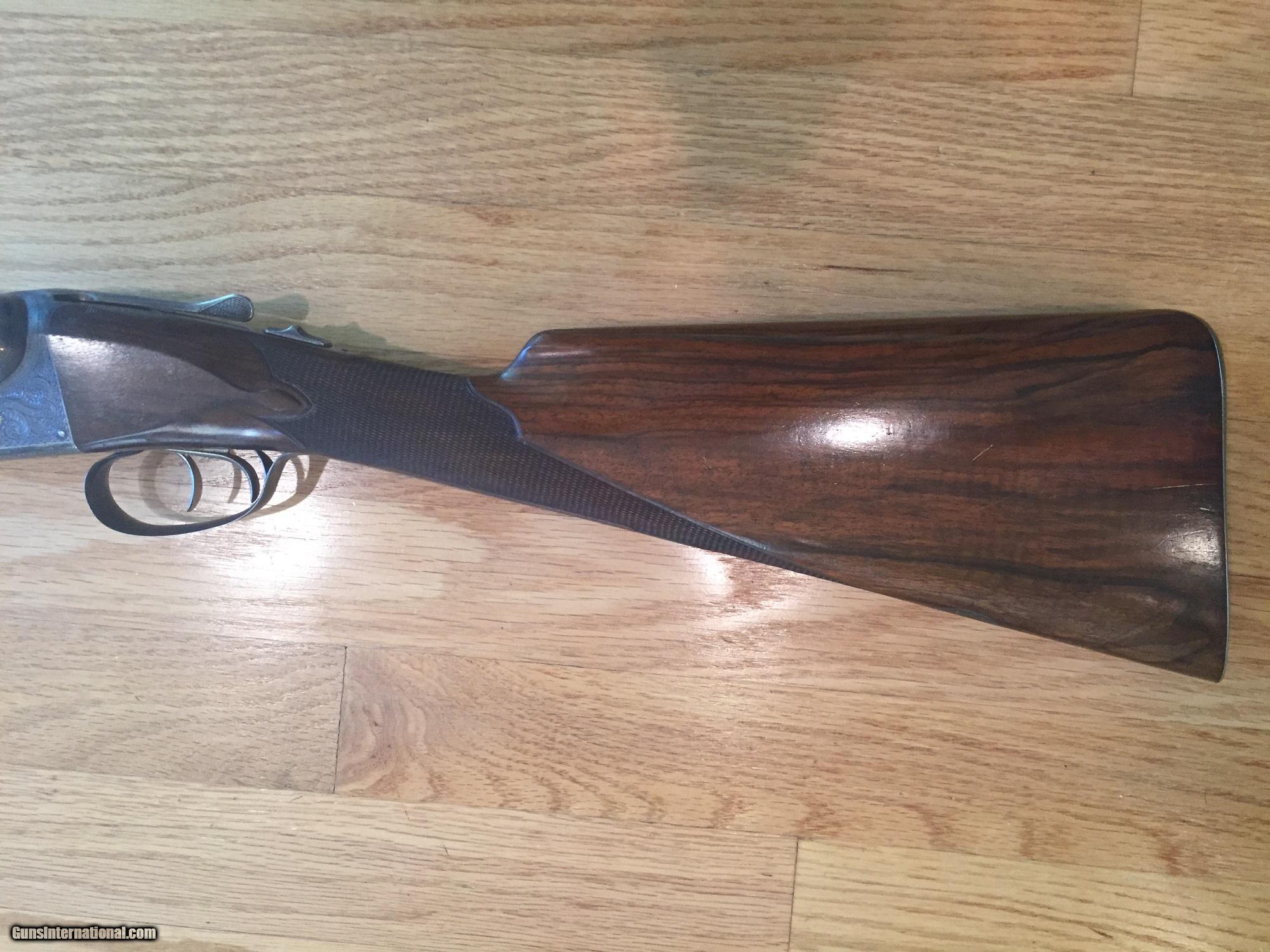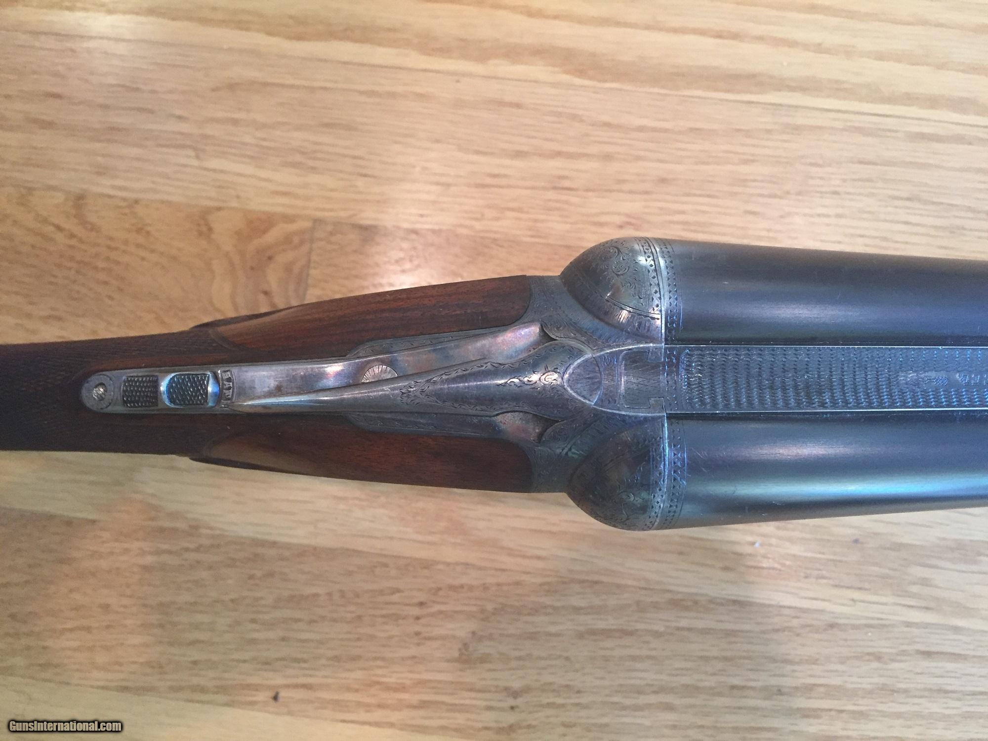 Description: All original non-molested Parker CHE side x side shotgun built in 1902 on a #2 frame with Titanic steel bbls and a single silver sighting bead. The receiver is engraved in a typical C pattern and foliate arabesque scroll. It is stocked with beutiful streaky walnut and a skeleton steel butt. The Parker Serialization Book identifies this gun as a grade 4 with Titanic steel barrels. Only 269 12 gauge Titanic Steel barreled guns were produced and only 150 of those were straight grip. This Parker is in very good condition. The barrels retain 85-90% original blue with slight muzzle wear, normal nicks and dings, and some thinning at the breach area where the gun was carried. The receiver and fore-end metal retain 35-45% case color, especially in protected areas (see photos). The trigger guard is "silver-gray" where the palm holds the grip, while all blue remains through the bow, along with case color darkening in guard. The wood is sound and beautiful with the usual light nicks and scratches. The fore-end and grip checkering can be felt easily. The fore-end metal is silver gray but case color darkening on underside (see photos). The mechanics are crisp. The bores are shiny and bright, but right barrel has one minor dent near muzzle (see photo). All serial numbers are matching. Price: $14,250.00 seller pays shipping and insurance Manufacturer: Parker Model: CHE Serial Number: 114XXX Ejectors: Yes Barrels: 30 in Barrel Type: Solid Rib Action: SxS Triggers: Double Triggers Gauge: 12 ga Stock: Nicely Figured Wood Stock Comb: 1 3/4 in Stock Heel: 2 7/16 in Fore End: Splinter Fore-end Butt: Skeleton Steel LOP: 14 1/4 in Weight: 8 lbs 3 ozs SOLD Curio/Relic: Yes Manufacturer: Parker Bros. Model: CHE Serial Number: 114XXX Ejectors: Yes Barrels: 30 Triggers: Double Gauge Info: 12 Stock: Straight Grip Stock Comb: 1 3/4 Stock Heel: 2 7/16 Fore End: Splinter Butt Pad: Skeleton Steel LOP: 14 1/4 Rib: Solid Manufacture Date: 1902 Engraving: C |