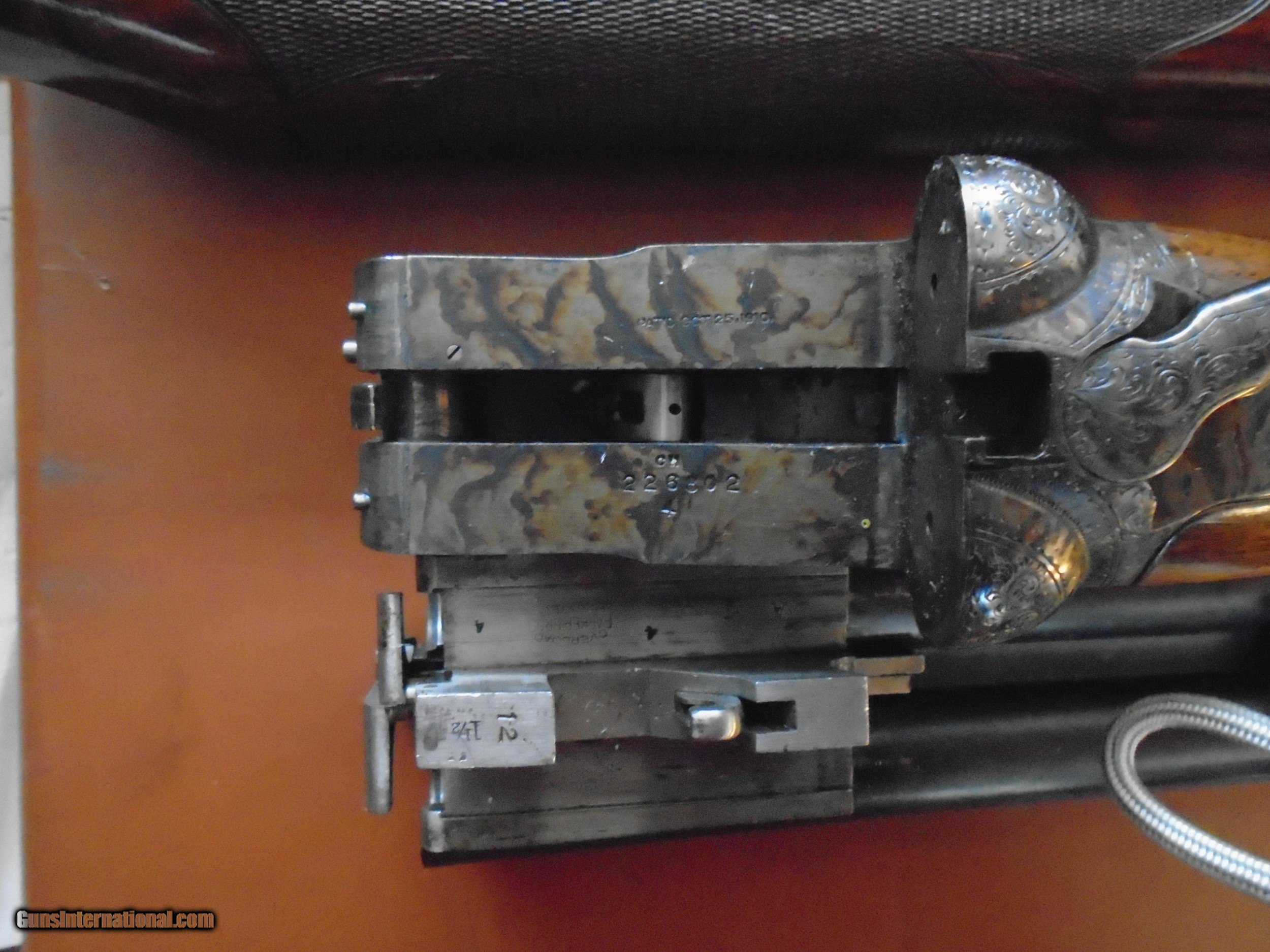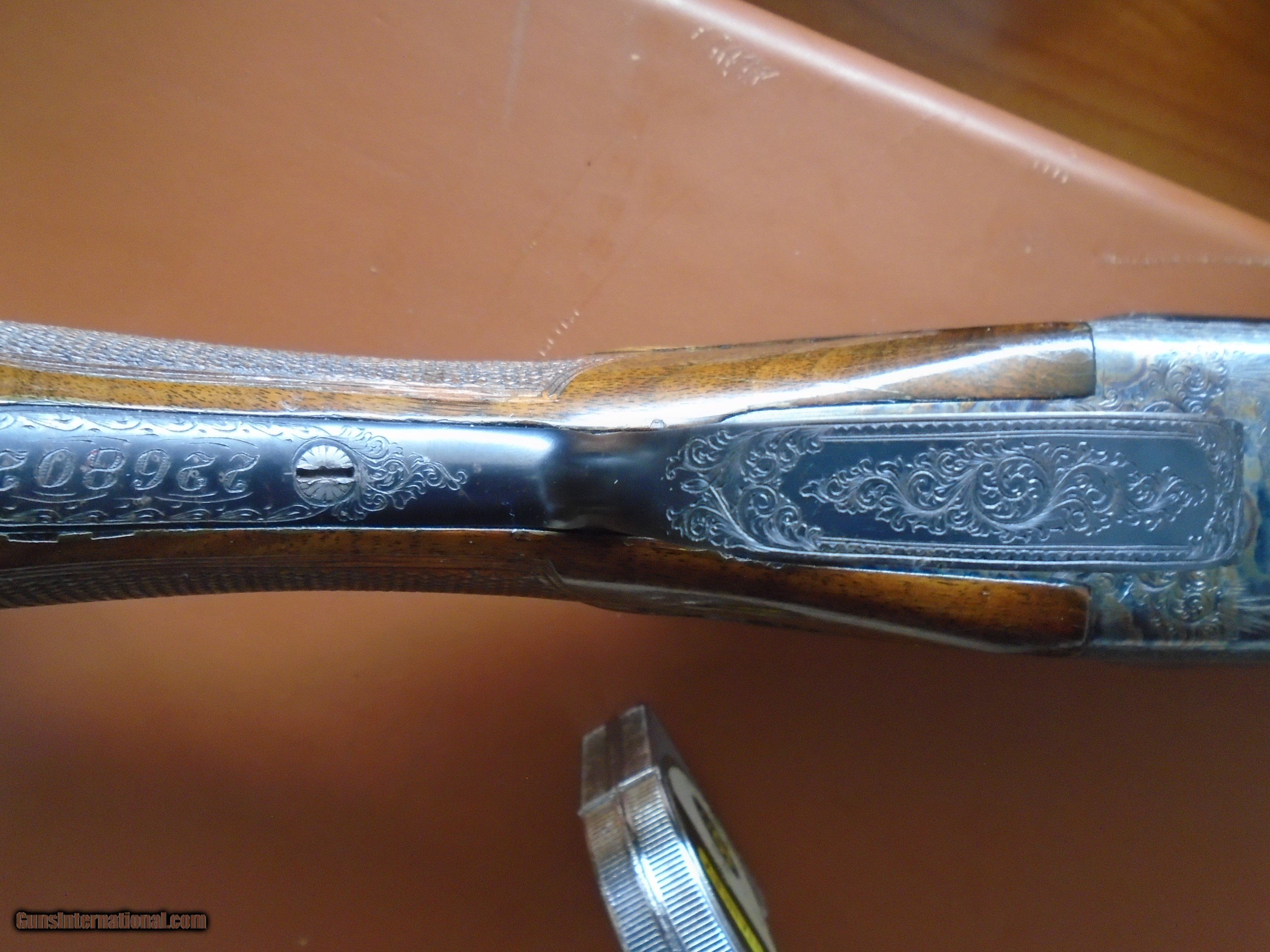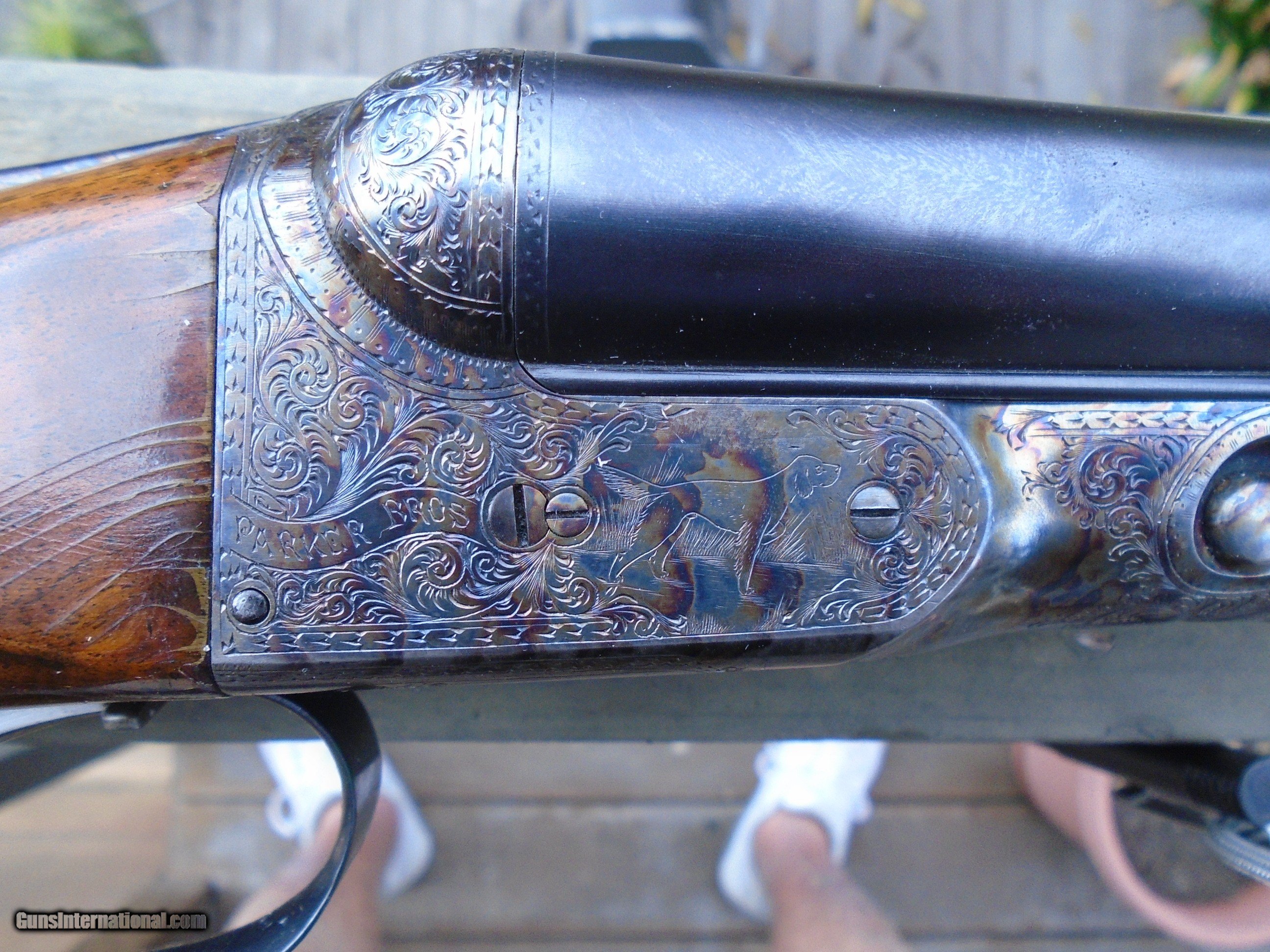 Description: Parker CHE grade Trap or Pigeon gun refinished by Del Grego in the 1960s and appears unfired since. A beautiful gun to shoot or for your collection. This gun has all the desired features: single selective trigger, auto ejectors, ventalated rib, beavertail forend, and high stock dimensions. Price reduced from $9500 SOLD Curio/Relic: Yes Shotgun Gauge: 12 Gauge Manufacturer: Parker Bros. Meridian, Conn Model: CHE Serial Number: 226802 Barrel Length: 30 Chambers: 2 3/4 Ejectors: auto Condition: Excellent Metal Condition: Exl Wood Condition: Exl Bore Condition: perfect Barrels: double Barrel Type: Acme Action: Boxlock Triggers: Single Selective Stock: pistol grip Walnut Stock Heel: 1 3/8 Fore End: Beavertail Butt Pad: 1" Rubber LOP: 14 5/8 Rib: Vent Weight: 8lb 15oz Sights: Twine Ivory Manufacture Date: 1928 Choke Left: Mod 0.020 Choke Right: Lite Mod 0.12 Engraving: yes Item Location: CA |