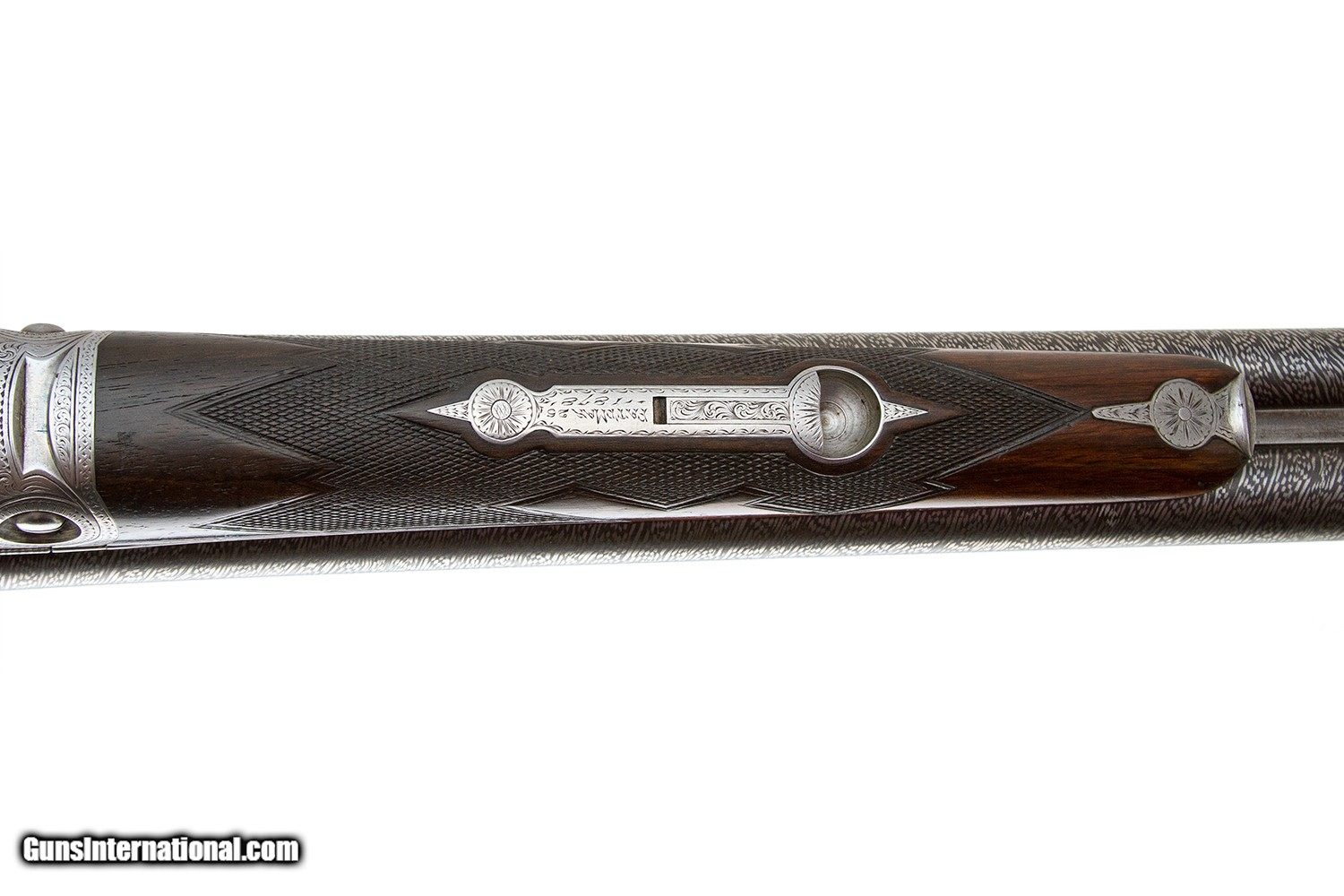 Description: #125XXX O FRAME PHOTOGRAPHED ON BACK COVER OF TRADITIONAL SIDE BY SIDE KING OF THE UPLAND BIRDS WE RECEIVED THE GUN FROM THE AUTHOR DOUG STEWART 28"011 AND 024 2 1/2 CHAMBERS DOUBLE TRIGGER EJECTORS SPLINTER FOREARM PISTOL GRIP SKELETON BUTT ORIGINAL CONDITION 6LBS 2 7/8 DAH 1 3/4 DAC 14 LOP SOLD |