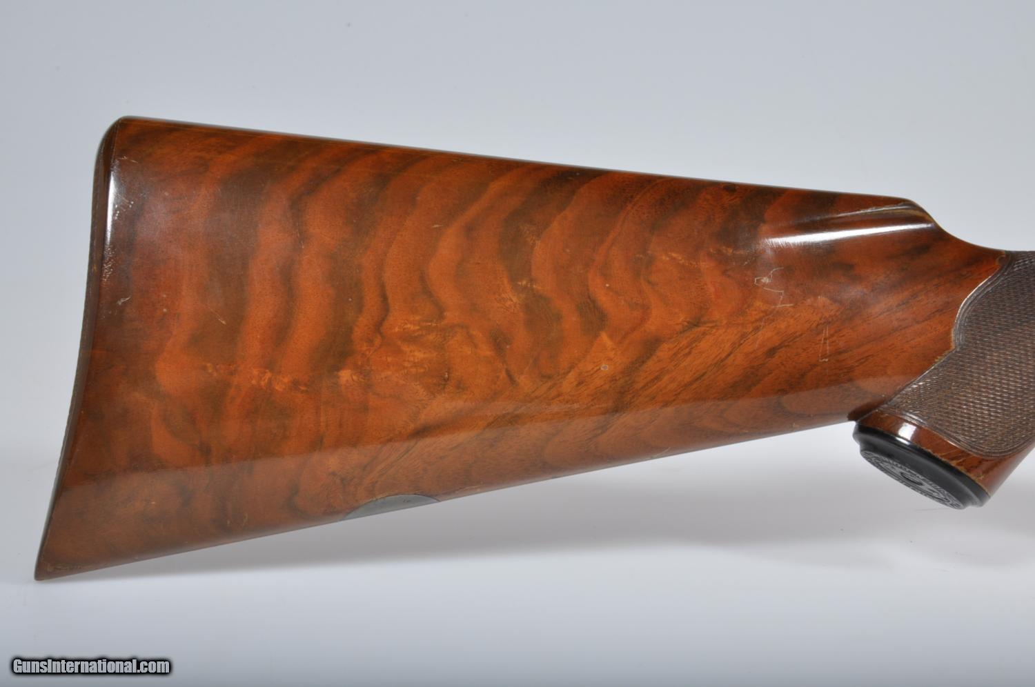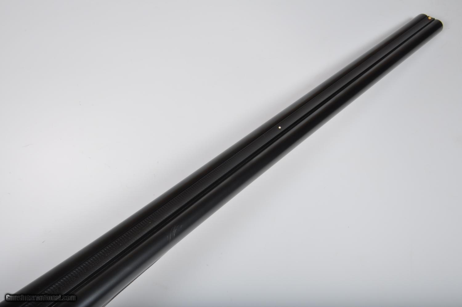 Description: This Parker CHE has double triggers and ejectors. The 28’ barrels have 2 ¾” chambers, double ivory beads and have been reblued. The right barrel choke measures .0085 constriction and the left barrel is .017 constriction. The 1 ½ frame has had its case coloring redone and the trigger guard has been reblued. The buttstock has a checkered butt and a 14 1/8” length of pull to the front trigger. The forearm appears original. Drop at comb: 1.5", drop at heel: 2.25", weight: 6.7 lbs. No California Sales My office hours are 7am-4pm CST Monday through Thursday and 7am-11am Friday. Emails or phone calls received after hours and on the weekend will be answered on the following business day. SOLD Manufacturer: Parker Model: CHE Serial Number: 126426 Chambers: 2 3/4 Ejectors: Yes Barrels: 28 Triggers: Double Gauge Info: 12 LOP: 14 1/8 Choke Left: Cylinder Choke Right: Spreader |