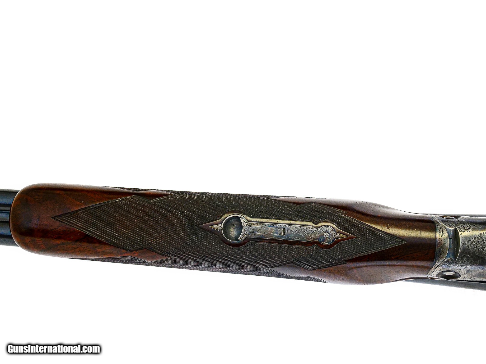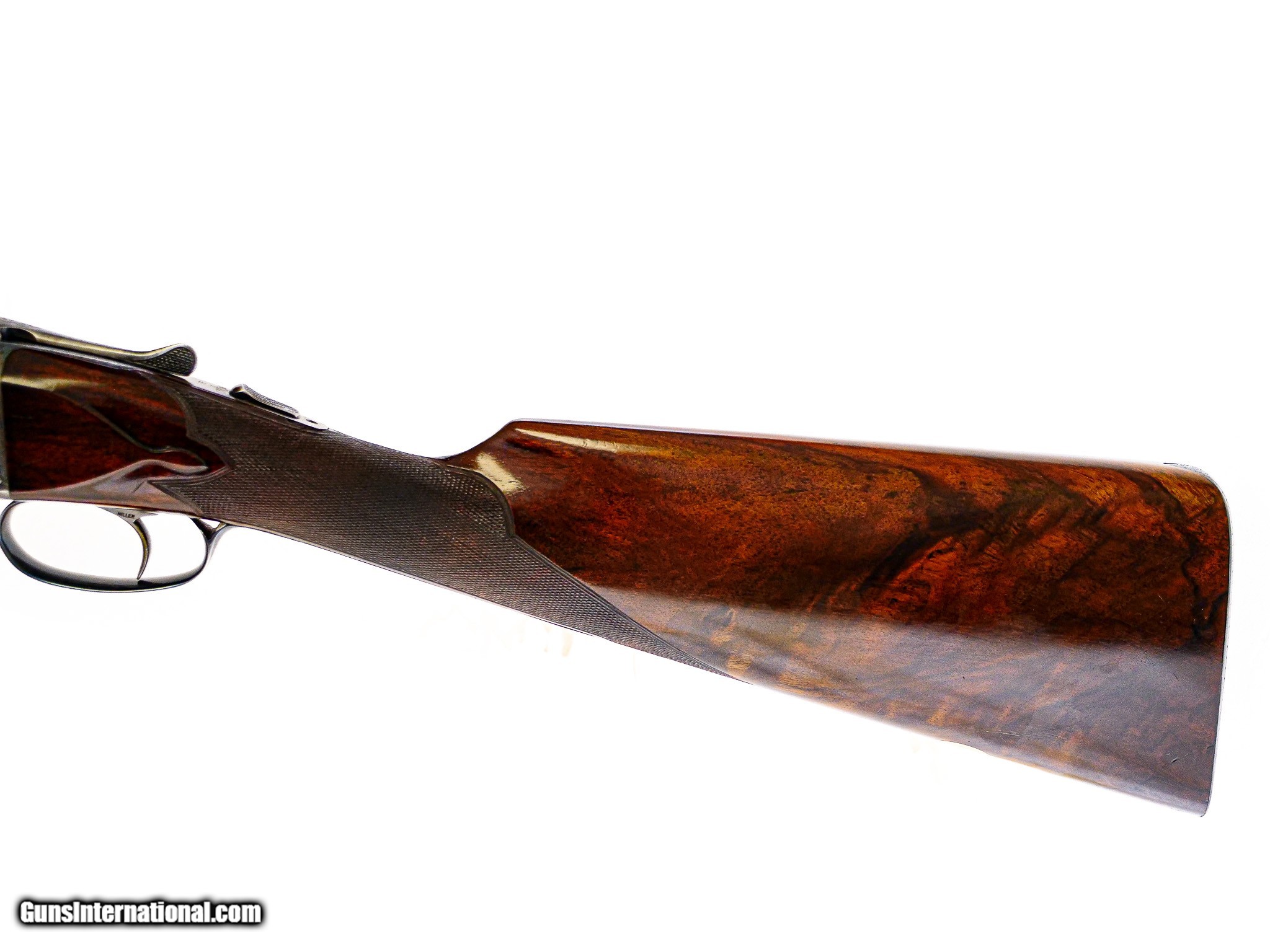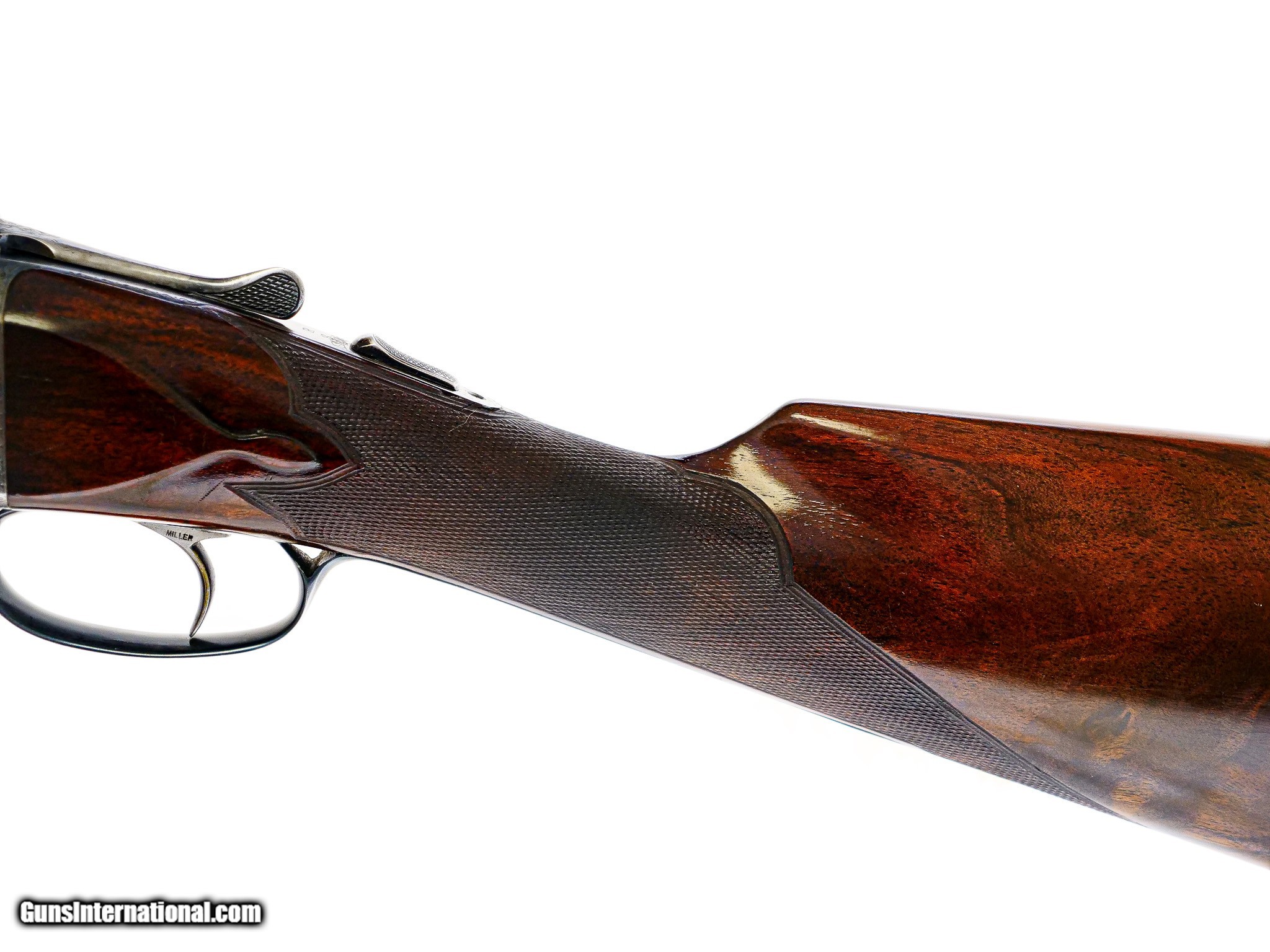 Description: Parker - CHE Grade, SxS, #1 Frame, 16ga. 28" Barrels Choked SK/SK. Factory beavertail forend, straight grip stock, skeleton butt, single selective trigger (Miller), excellent screws, lots of case color blue and wood finish, Acme steel barrels, #1 frame, skeet in skeet out choke, very rare configuration. Inv: 69448 7 lbs. 0 oz. 14 1/4" x 1 3/4" x 2 1/2" $18,995.00 SOLD |