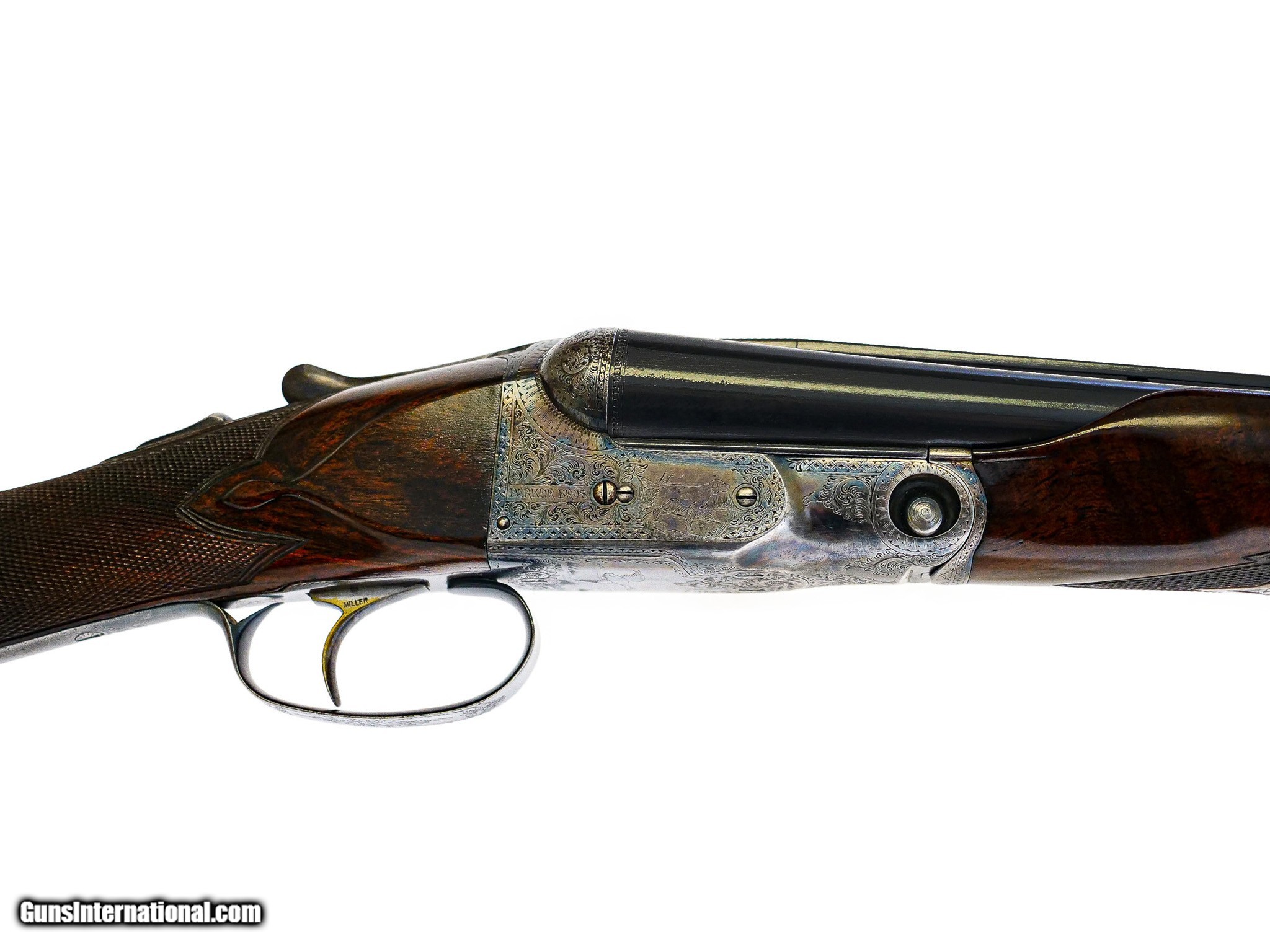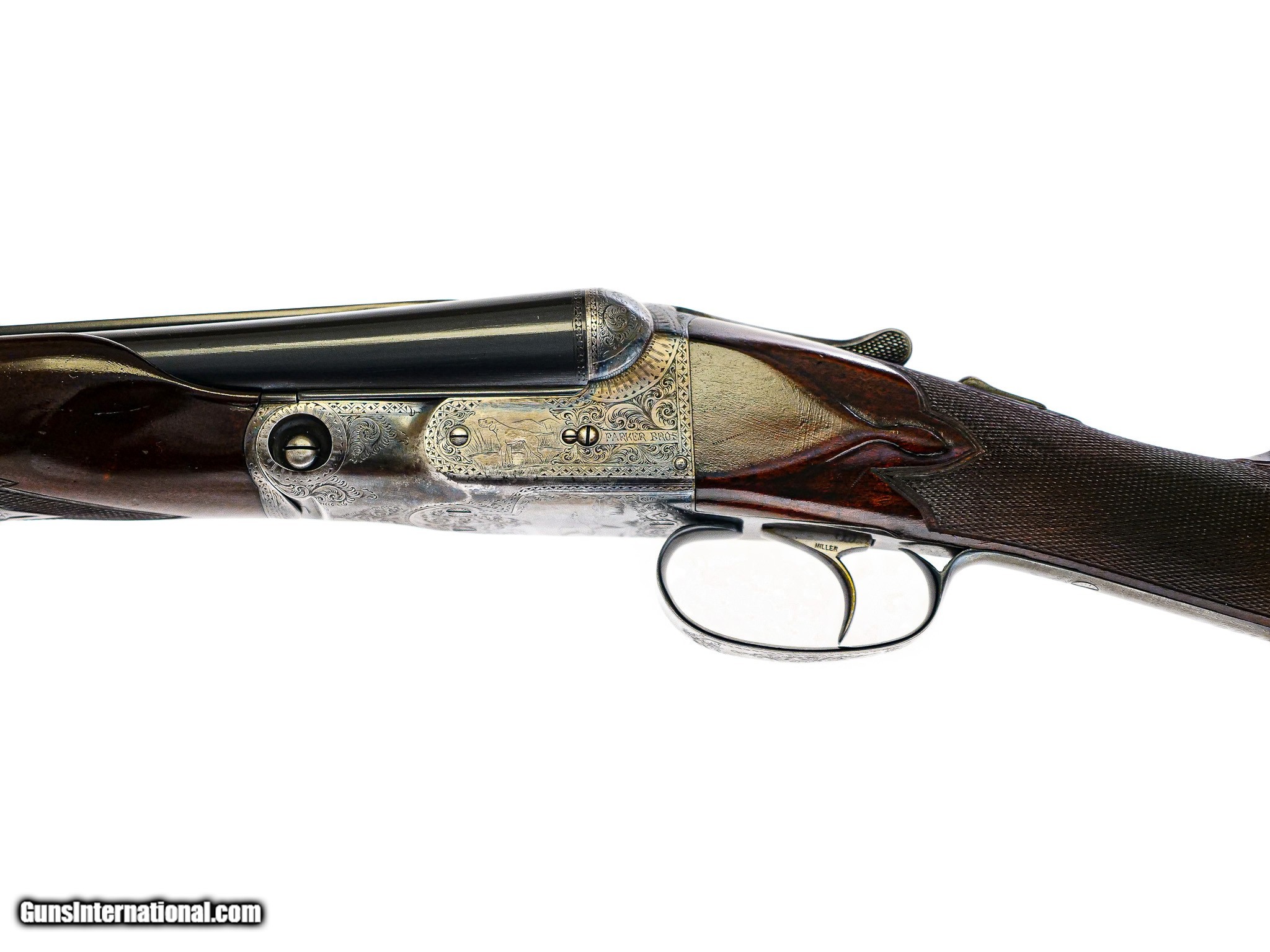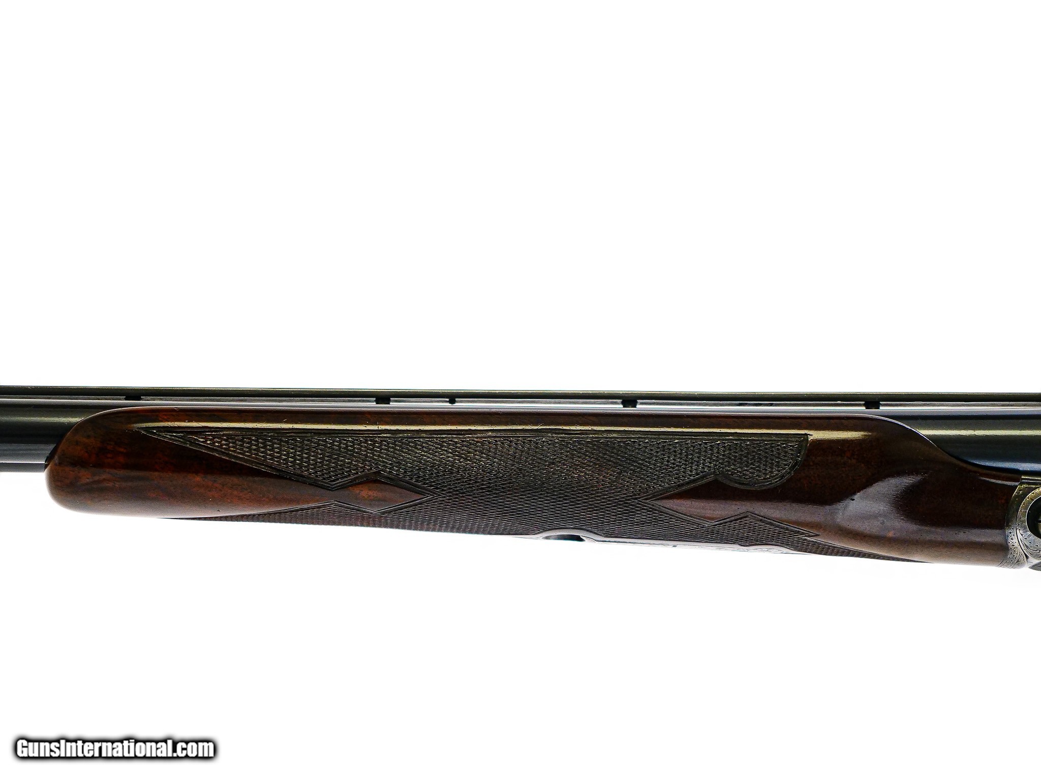Description: Parker - CHE Grade, SxS, #1 Frame, 16ga. 28" Barrels Choked SK/SK. Factory beavertail forend, straight grip stock, skeleton butt, single selective trigger (Miller), excellent screws, lots of case color blue and wood finish, Acme steel barrels, #1 frame, skeet in skeet out choke, very rare configuration. Inv: 69448 7 lbs. 0 oz. 14 1/4" x 1 3/4" x 2 1/2" $18,995.00 SOLD |