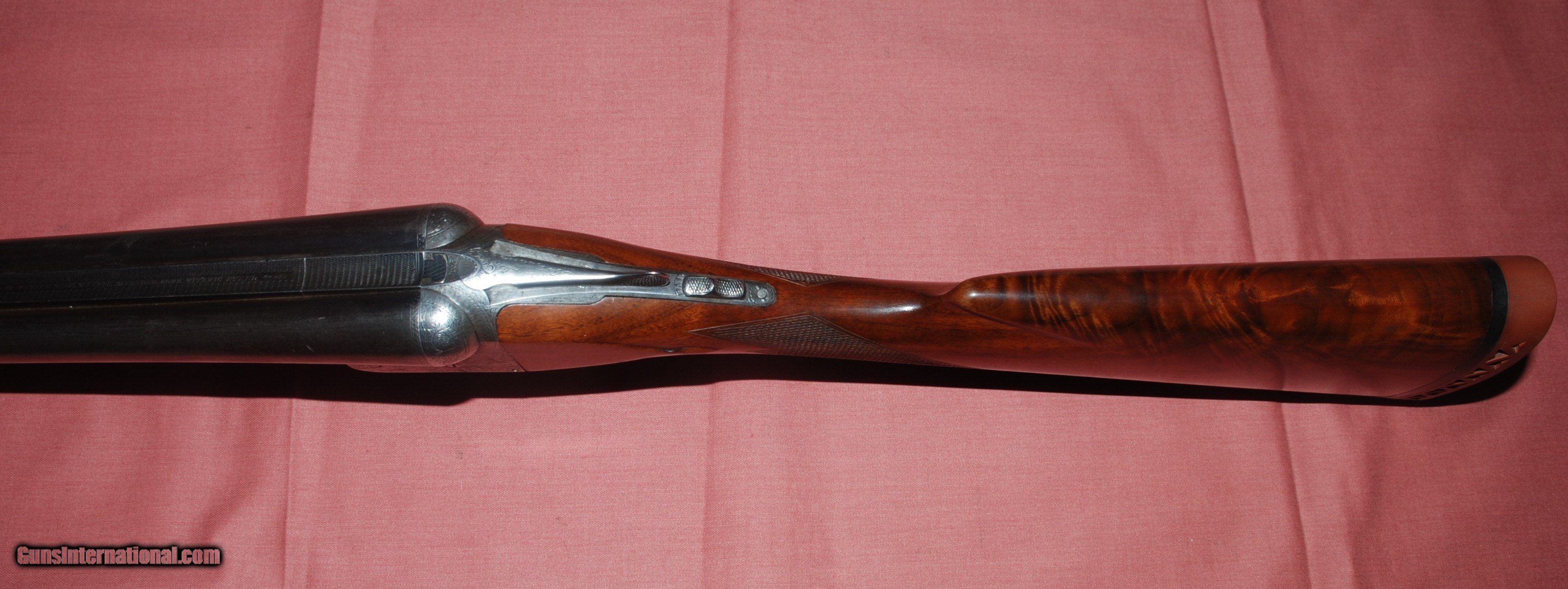 Description: This is a Parker DH straight grip Titanic steel with 30 inch barrel on a number two frame. The LOP is 14 5/8 the DAC is 1 1/2 and DAH is 2 3/8. The 30 inch barrell choke improved mod on both and the chamber is 2 3/4 inch The gun has a Hawkins recoil pad. Serial number is 132390. The gun was a pistol grip that is converted to straight I am not a dealer so please make sure your dealer will accept a copy of my driver's license Shipping to the lower 48 is $100. SOLD Curio/Relic: Yes |