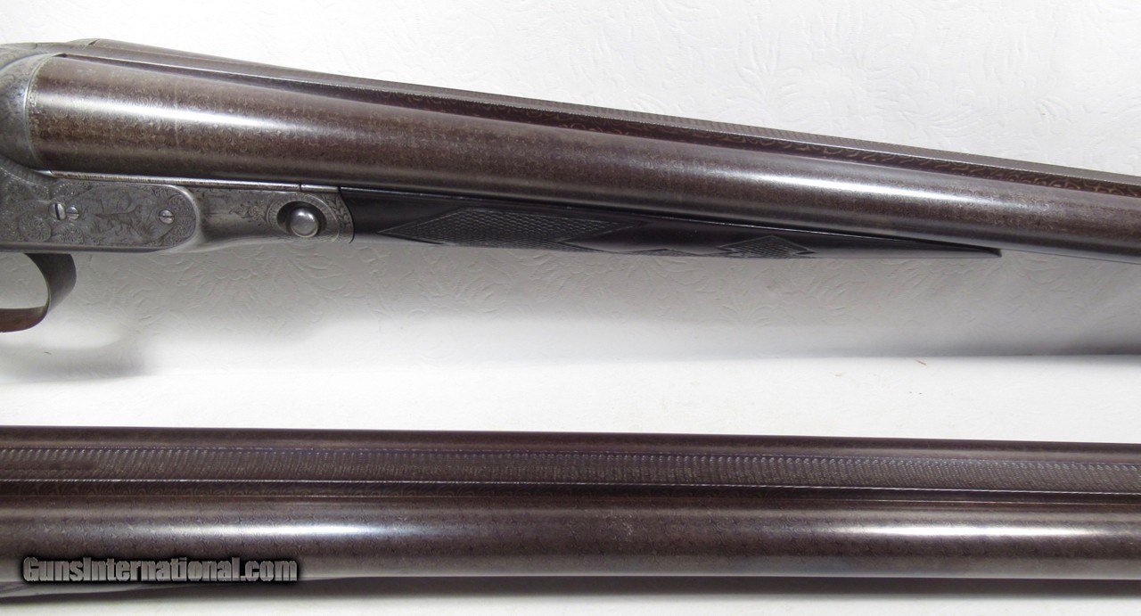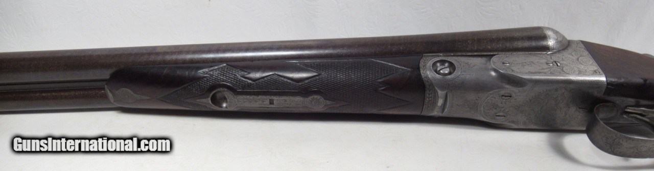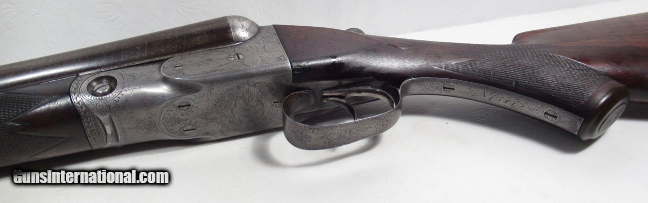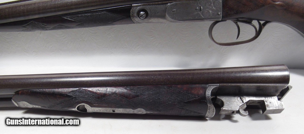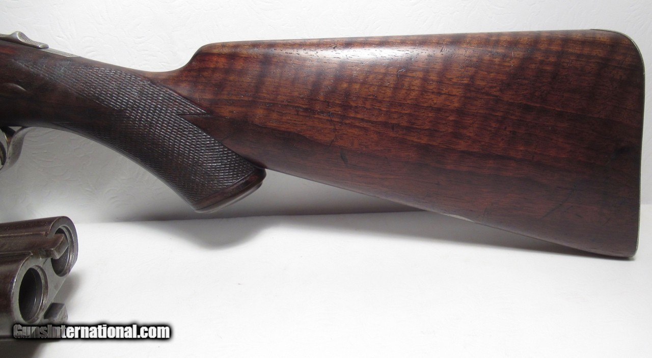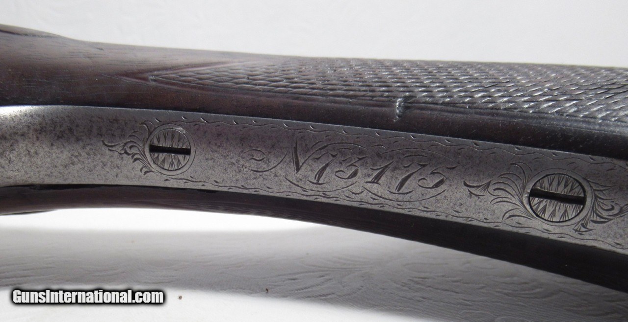 Description: Parker Double Barrel Shotgun; Serial No. 73175; 12 Gauge; Two-Barrel Set w/ 2 Fore Ends; All Numbers Match; Both Sets of Barrels Measure 30”; One Set Choked I.M. & I.M – the Other Set Choked I.C. & Cyl.; Nice Stock with Skeleton Butt Plate; 13 ¾” L.O.P.; 1 ½” D.A.C. and 2 ½” D.A.H.; Solid Problem Free Wood; Sharp Engravings; Nice Damascus Pattern on Barrels; Tight Lock-up; Perfect Function and Bright Shiny Perfect Bores with 2 ½” Chambers; Fish Tail Lever; See All Photos for Condition; No Texts. Call or Email Only; PERSONAL PROPERTY of Harold Wieser; Price: $3,750 + $60 S&H; Price includes insured shipping; return policy: three days inspection from the date the item is received; full refund of shipping both ways ONLY IF THE ITEM IS MISREPRESENTED. SOLD Antique: Yes Manufacturer: Parker Model: Double Serial Number: 73175 |