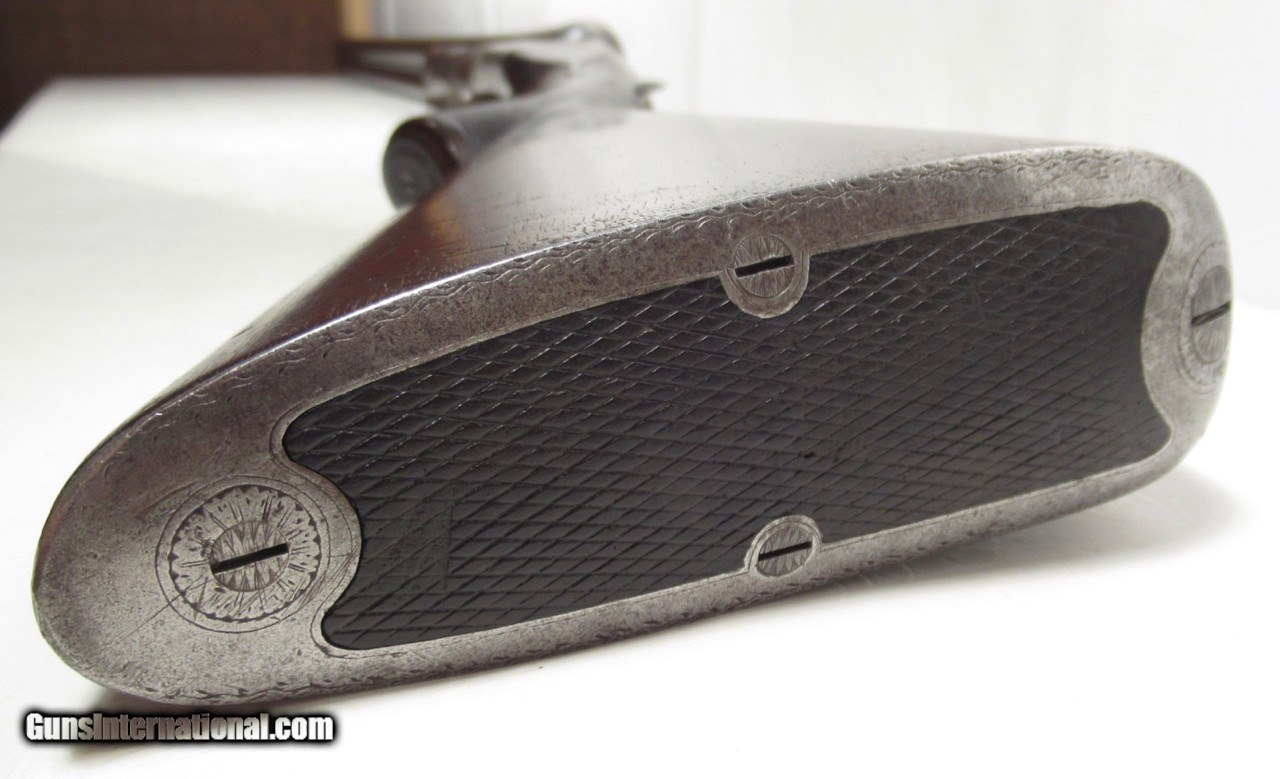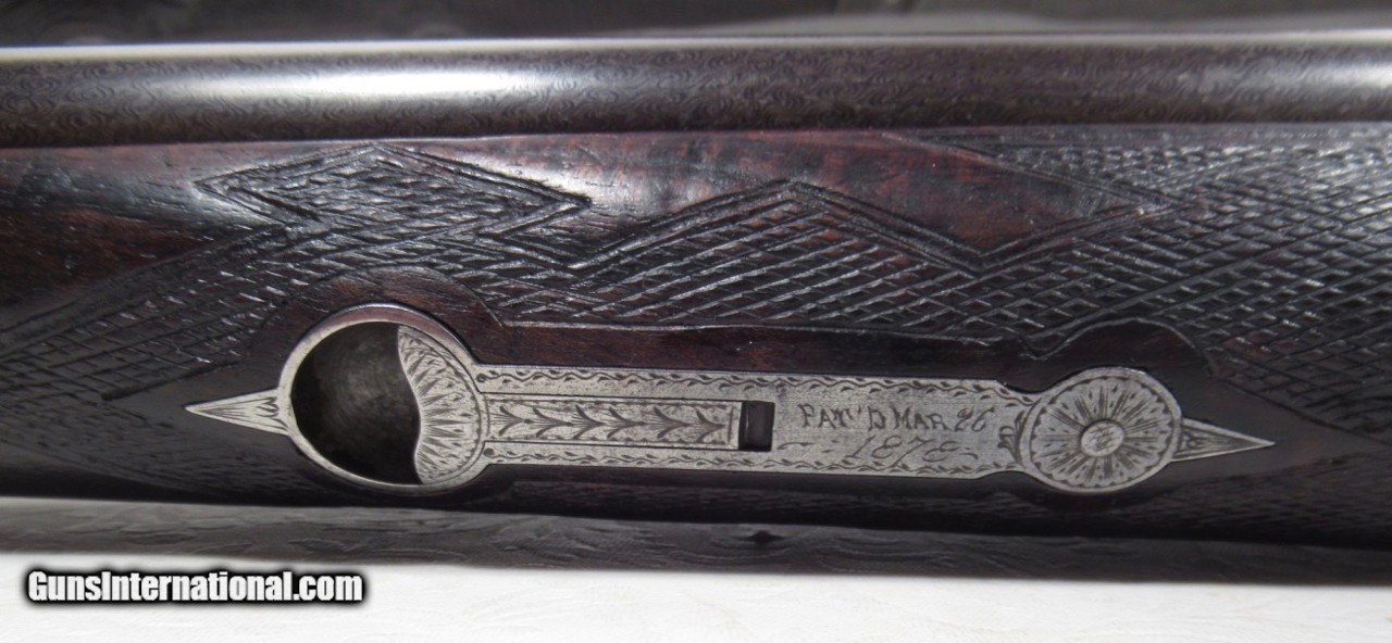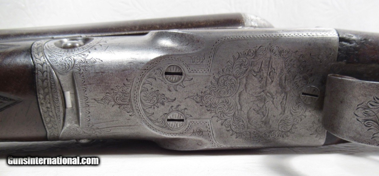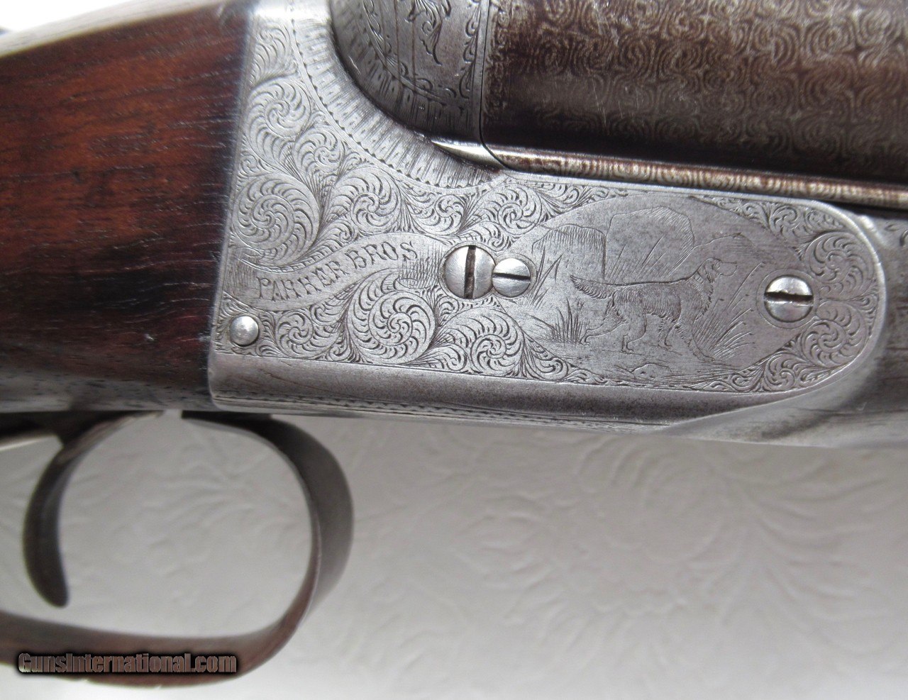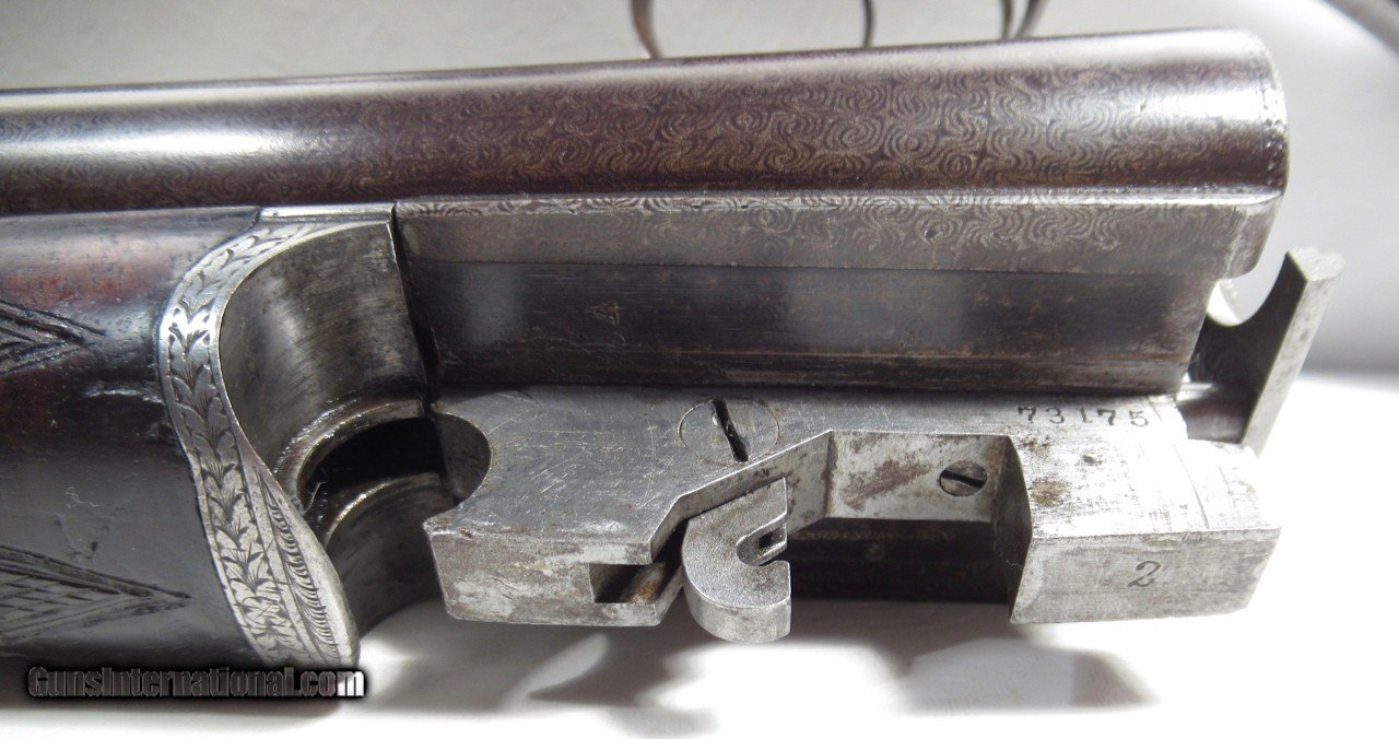 Description: Parker Double Barrel Shotgun; Serial No. 73175; 12 Gauge; Two-Barrel Set w/ 2 Fore Ends; All Numbers Match; Both Sets of Barrels Measure 30”; One Set Choked I.M. & I.M – the Other Set Choked I.C. & Cyl.; Nice Stock with Skeleton Butt Plate; 13 ¾” L.O.P.; 1 ½” D.A.C. and 2 ½” D.A.H.; Solid Problem Free Wood; Sharp Engravings; Nice Damascus Pattern on Barrels; Tight Lock-up; Perfect Function and Bright Shiny Perfect Bores with 2 ½” Chambers; Fish Tail Lever; See All Photos for Condition; No Texts. Call or Email Only; PERSONAL PROPERTY of Harold Wieser; Price: $3,750 + $60 S&H; Price includes insured shipping; return policy: three days inspection from the date the item is received; full refund of shipping both ways ONLY IF THE ITEM IS MISREPRESENTED. SOLD Antique: Yes Manufacturer: Parker Model: Double Serial Number: 73175 |