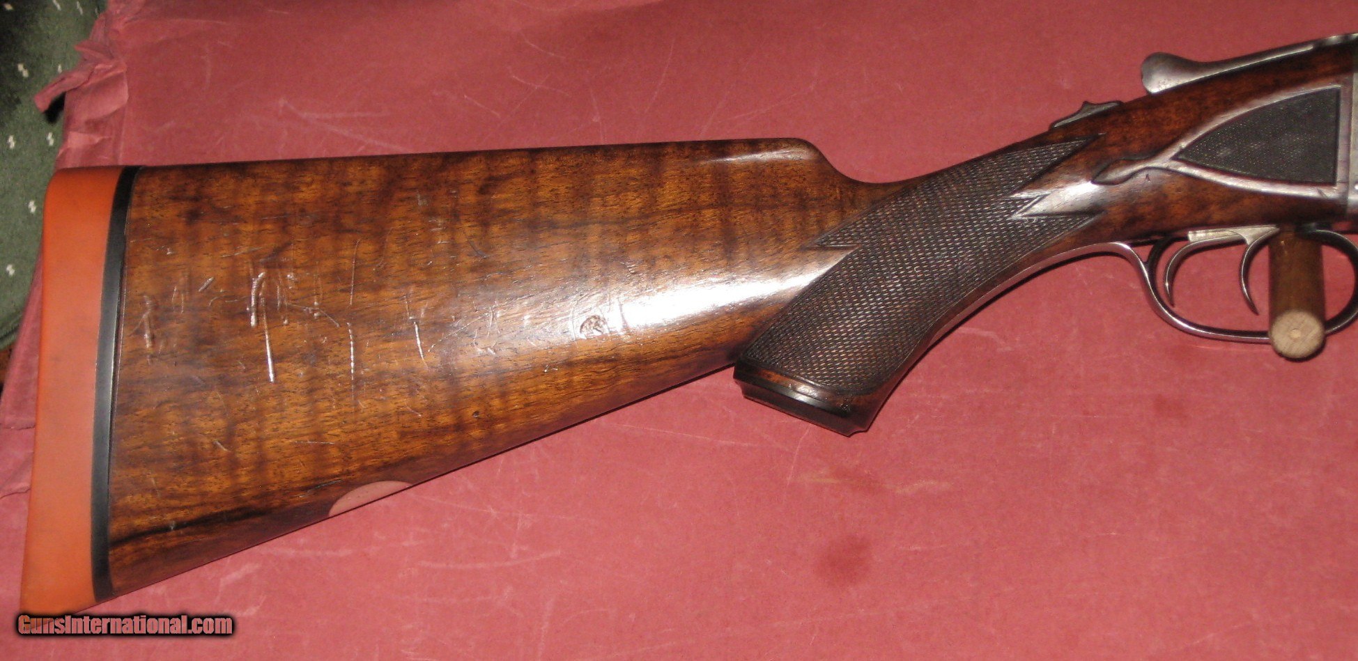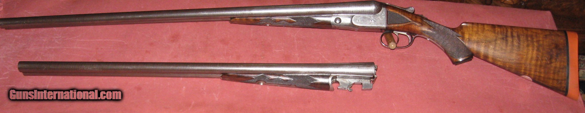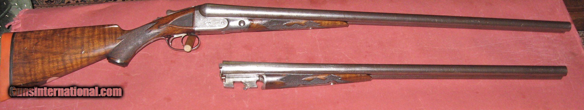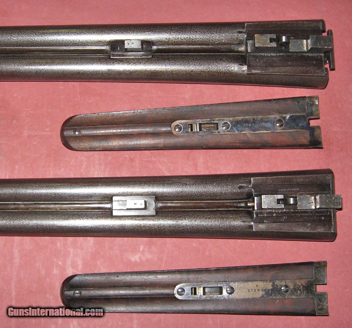 Description: Parker 12 gauge DH grade 2 barrel set.According to the factory letter,this gun was ordered and shipped in 1905,It has one set of damascus 30" barrels choked full and full and a second set of 26" damascus barrels choked cylinder and modified.Both sets have their own forends and are numbered to the gun.In addition,the gun was ordered with checkered side panels and special engraving on the trigger guard.The gun is in excellent all original condition.Both barrels lock up tightly to the receiver with no play.All bores are bright and free of rust,dents,or pits.The minimum wall thickness is .033",so the gun is very safe to shoot with field loads.Built on a #2 frame the gun weighs 7-10 with the 30" barrels and 7-0 with the 26" barrels.Stock dimensions are 141/8"LOP over a silvers pad,15/8" at comb,and 23/4" at heel.A very versitile Parker set for all types of hunting or clays shooting.C&R eligible. SOLD Curio/Relic: Yes Manufacturer: Parker Model: DH Serial Number: 130941 Chambers: 23/4 Ejectors: extractors Metal Condition: excellent Wood Condition: excellent Bore Condition: mint Barrel Type: damascus steel Action: double barrel Triggers: Double Stock Dimensions: 141/8"x15/8"x23/4 Butt Pad: solid pad Weight: 7-10 Manufacture Date: 1905 Chokes: #1 full/full #2 cylinder/mod |