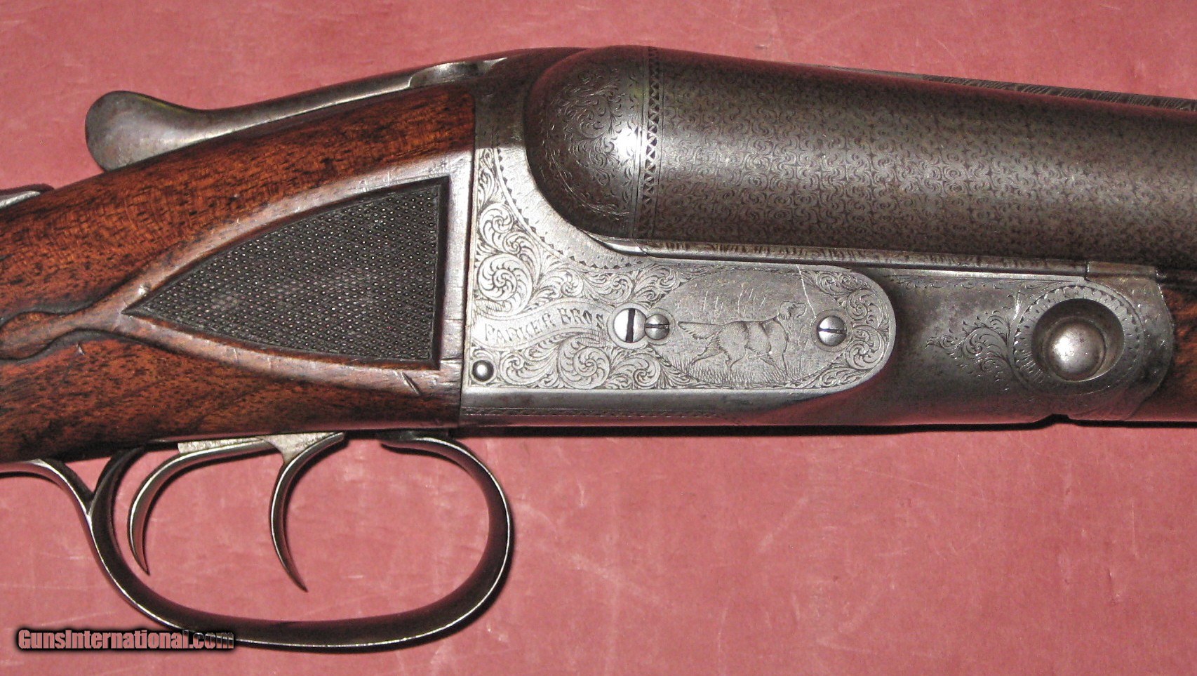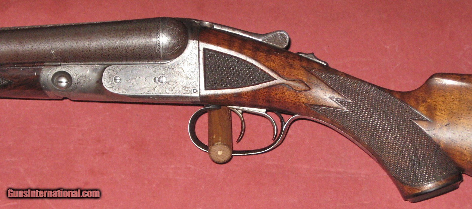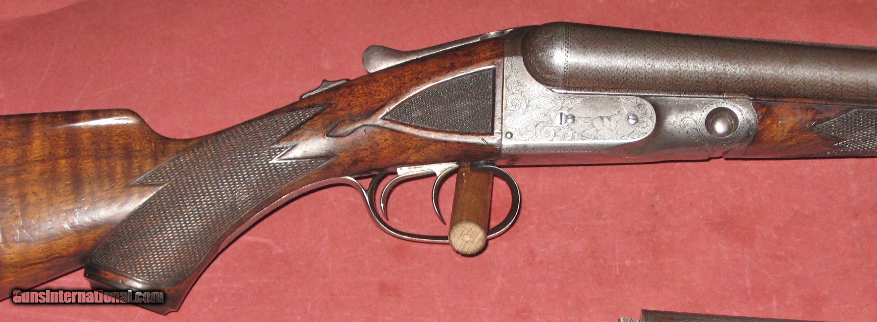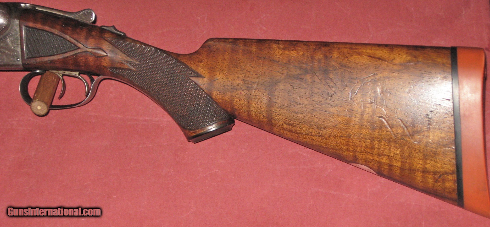 Description: Parker 12 gauge DH grade 2 barrel set.According to the factory letter,this gun was ordered and shipped in 1905,It has one set of damascus 30" barrels choked full and full and a second set of 26" damascus barrels choked cylinder and modified.Both sets have their own forends and are numbered to the gun.In addition,the gun was ordered with checkered side panels and special engraving on the trigger guard.The gun is in excellent all original condition.Both barrels lock up tightly to the receiver with no play.All bores are bright and free of rust,dents,or pits.The minimum wall thickness is .033",so the gun is very safe to shoot with field loads.Built on a #2 frame the gun weighs 7-10 with the 30" barrels and 7-0 with the 26" barrels.Stock dimensions are 141/8"LOP over a silvers pad,15/8" at comb,and 23/4" at heel.A very versitile Parker set for all types of hunting or clays shooting.C&R eligible. SOLD Curio/Relic: Yes Manufacturer: Parker Model: DH Serial Number: 130941 Chambers: 23/4 Ejectors: extractors Metal Condition: excellent Wood Condition: excellent Bore Condition: mint Barrel Type: damascus steel Action: double barrel Triggers: Double Stock Dimensions: 141/8"x15/8"x23/4 Butt Pad: solid pad Weight: 7-10 Manufacture Date: 1905 Chokes: #1 full/full #2 cylinder/mod |