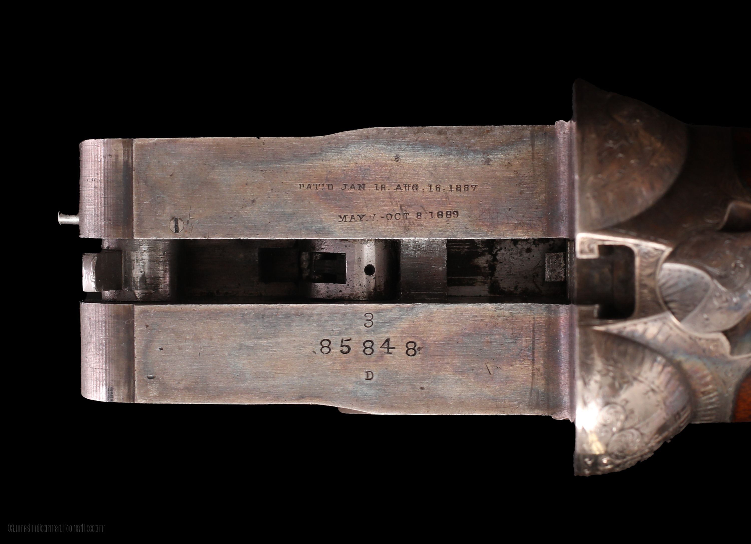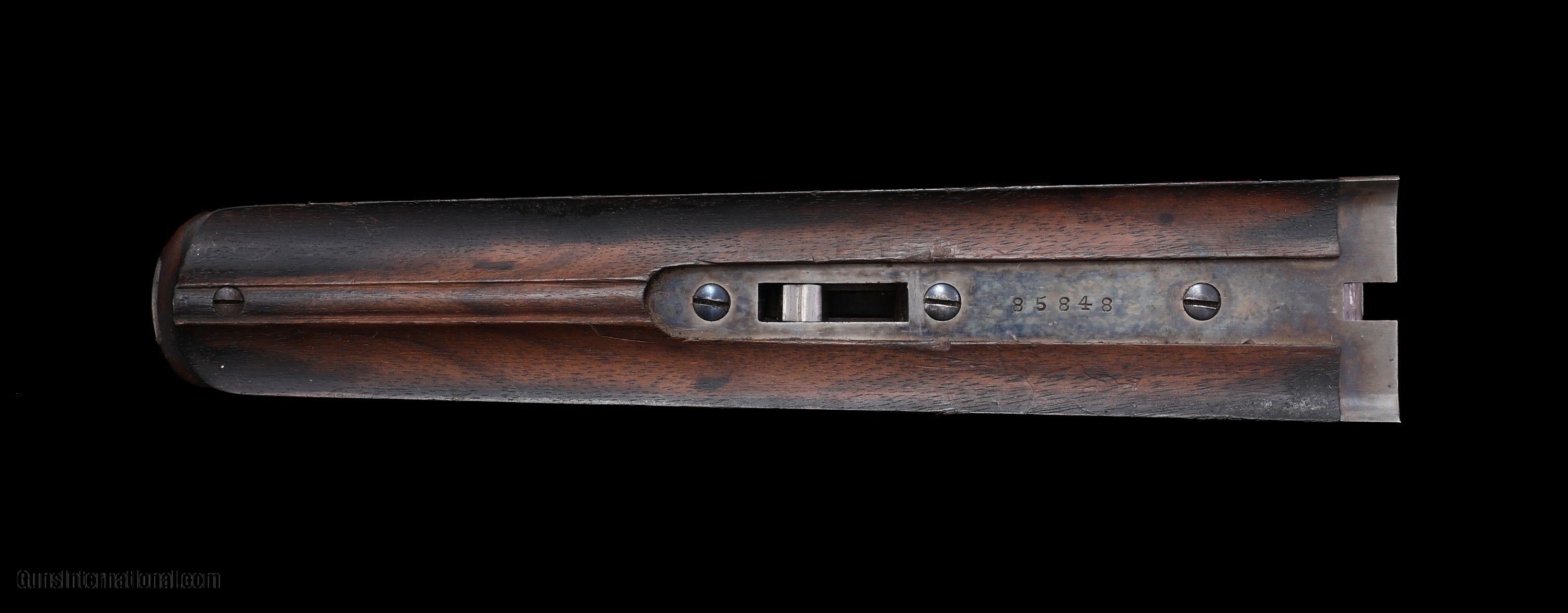 Description: FALL HUNTING SEASON SALE - NEW SPECIAL PRICE!!! Beautiful clean all original antique Parker DH 12ga. This gun is absolutely "as found" and really a nice clean gun. Made on a #2 frame with 30" damascus barrels, splinter forend, double triggers, capped pistol grip buttstock and its original skeleton buttplate. This Parker remains in very pleasing untouched condition and came to me from the original owners family. There is definitely some original case color remaining - easily more than 30%. The buttstock is all original but shows a current tight fracture at the wrist which is tight but does need attention and I am sure can be made invisible. It eminates from the top tang to the right side of the stock checkering. Bores are bright and shiny. Mechanics are excellent. Gun is tight and sound. This nice early Parker is priced at $1995 plus shipping to you direct as an antique. Please dont hesitate to contact me at (704) 280-2382 or via PM on this site with any questions or reasonable offers. SOLD Antique: Yes Shotgun Gauge: 12 Gauge Manufacturer: Parker Model: DH Serial Number: 85848 Barrel Length: 30 Chambers: 2-5/8 Condition: Excellent Metal Condition: Excellent and original Wood Condition: Very good Bore Condition: Bright and shiny Barrel Type: Damascus Triggers: Double Triggers Stock Comb: 1-3/4 Stock Heel: 2-3/4 LOP: 14-1/8 Weight: 7lbs 14oz Chokes: Full/Full Choke Left: .038 Choke Right: .038 Minimum Wall Thickness Left: Over .025 Minimum Wall Thickness Right: Over .025 |