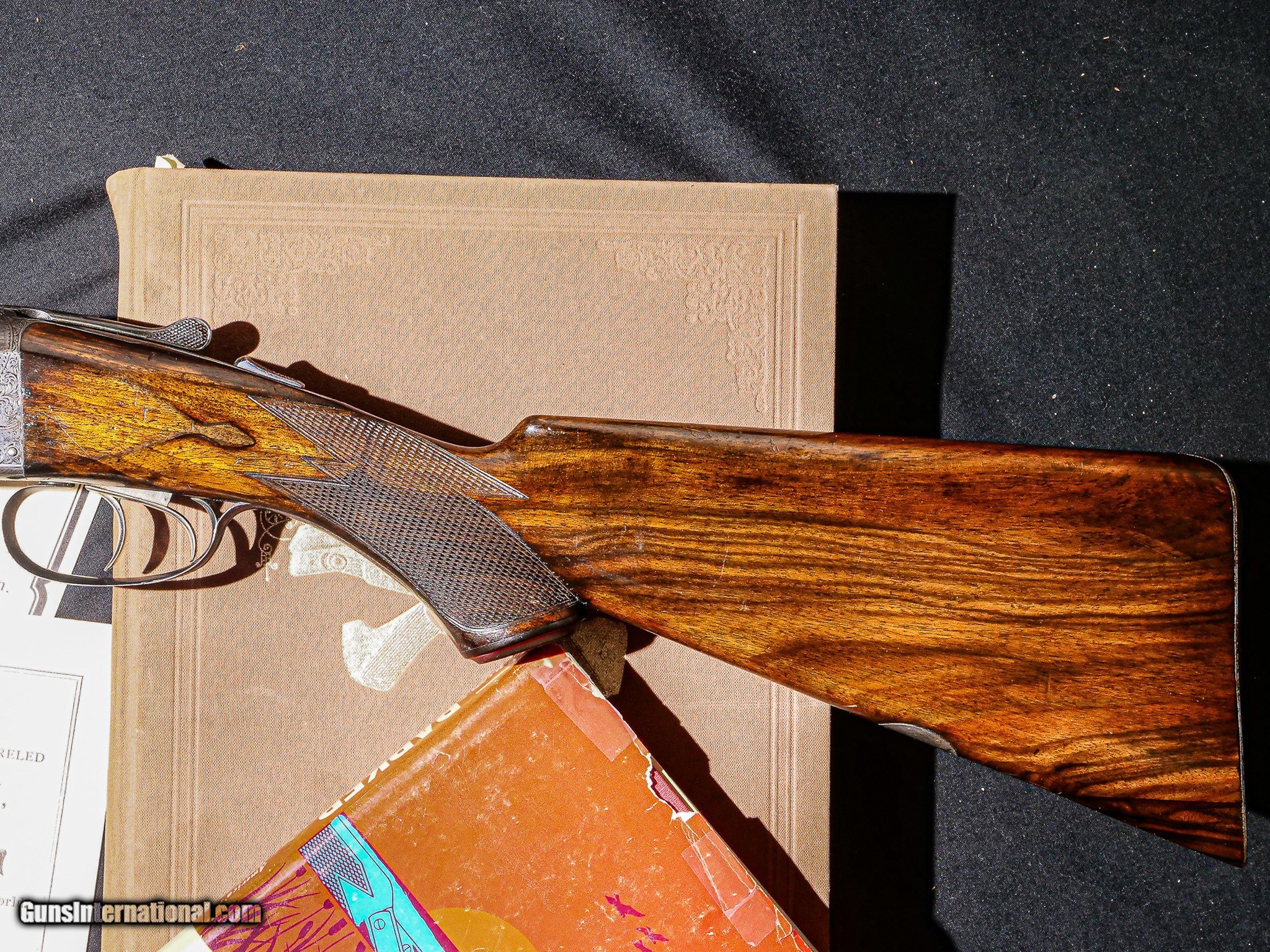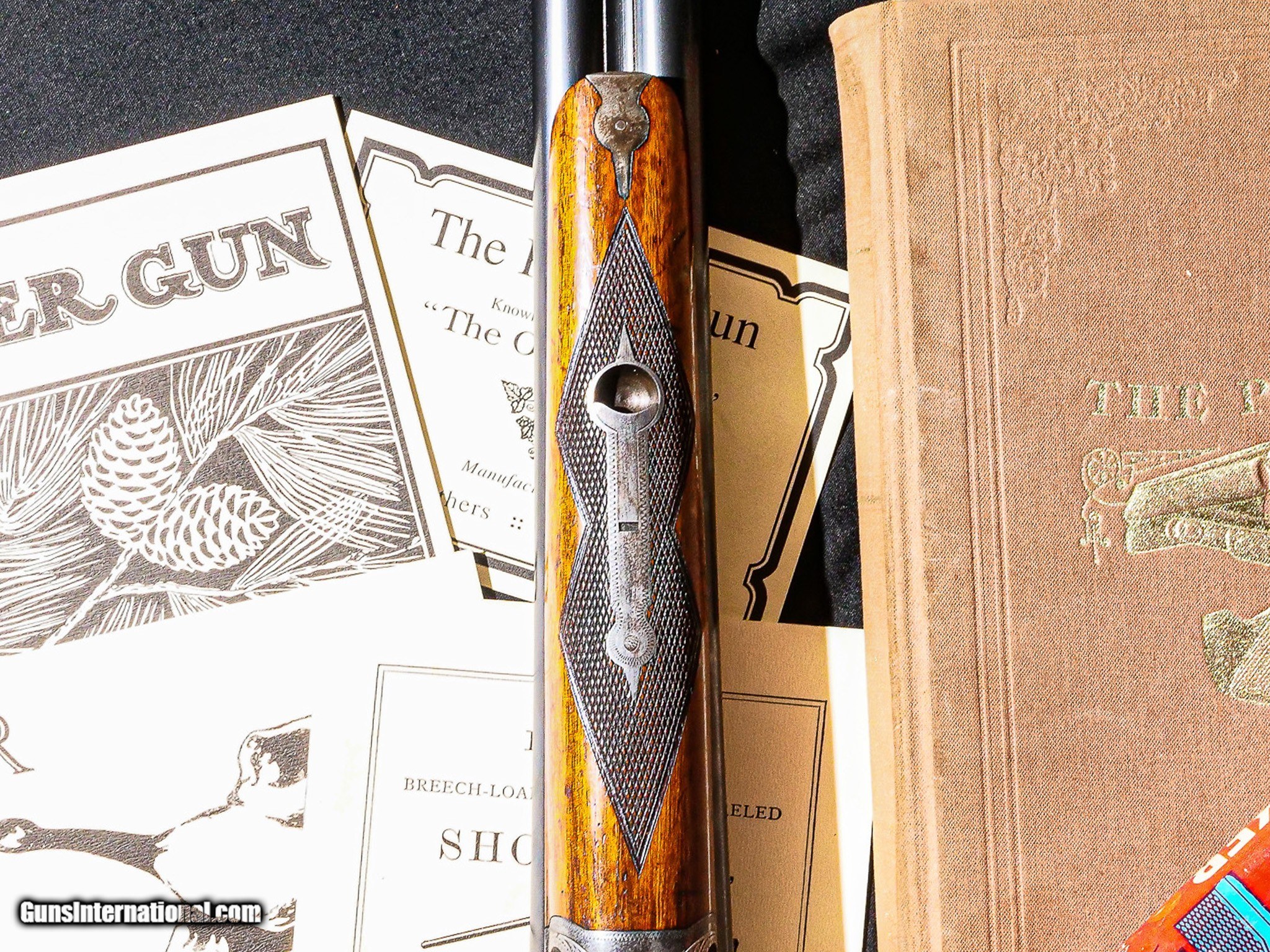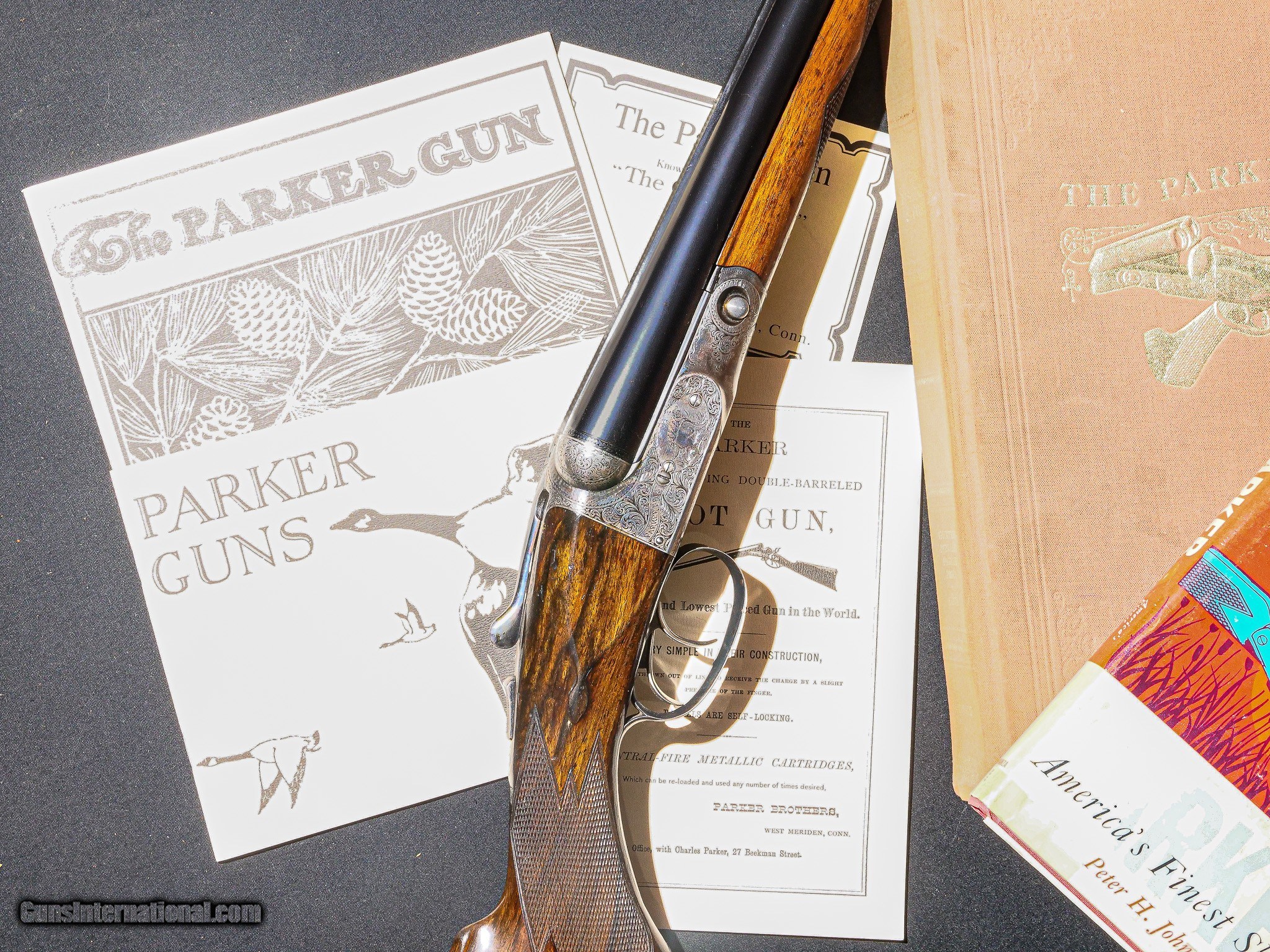Description: Parker - DH Grade, SxS, 16ga. 26" Barrels Choked IC/M. Double trigger, extractor, skeleton butt, pistol grip. 60% case color, half the trigger guard blue. Numerous handling marks. All the serial numbers match on the gun but I believe this is a factory re-barreled gun as there is no barrel marking and it has a VH style splinter forend and is the original serial number not remarked. The gun is in really top condition and these barrels were all from an ejector gun but it is a wonderful gun that has had very little use and is tight. Perfect engraving, with an excellent stock. An exceptional buy. Inv: 88863 6 lbs. 6 oz. 14" x 1 ¾" x 2 ¾" $5,250.00 Connecticut Shotgun / Galazan buying, selling and manufacturing Parker Shotguns. With 47 years of experience, we have handled the largest collections of Parkers shotguns. Every grade, style, and era including the ultra-rare 3 invincible grades that are currently in the NRA Museum. And many of the milestone guns including SN 100,000 Annie Oakley gun and many more too numerous to list, We have bought and sold more A1 specials then any other firm when Remington wanted to reintroduce the gun they came to CT Shotgun/ Galazan We believe we have had and maintained the finest collection of Parker Shotguns that are available for purchase or trade, all of the guns that we sell are inspected and thoroughly cleaned as we maintain the only inventory of replacement parts for these guns, We can assure the guns that we sell for shooting or collecting are simply the best. So, when you are looking for your best collectible Parker Shotgun or your next favorite hunting gun look no further than CT Shotgun/ Galazan. We also maintain many styles, hunting and presentation case with accessories. The largest, most diverse, high-grade shotgun and firearms inventory in history. There is no one even close and a service department to back up everything we sell with our unparalleled warranty to support our customers exclusively. If someone tells you they have a larger inventory, just look for yourself. Price: $5,250.00 Contact Seller |