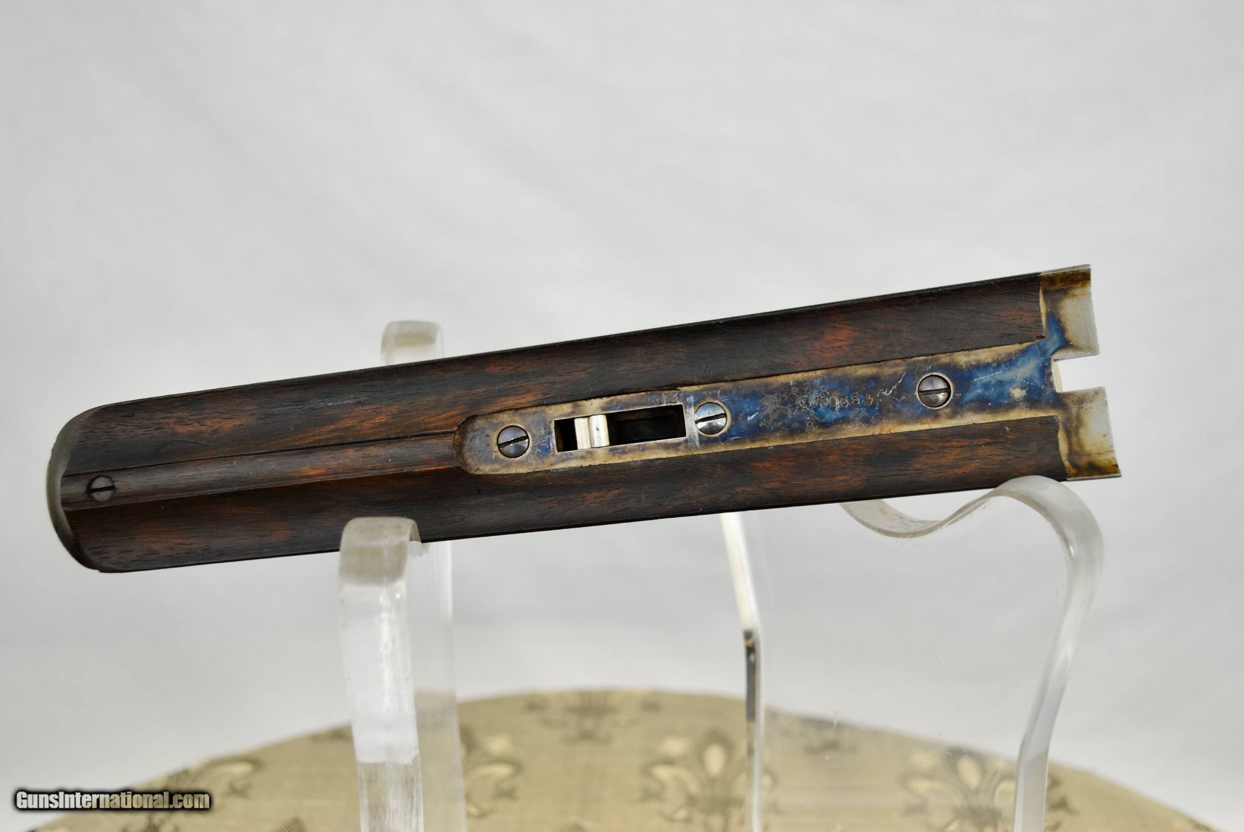 Description: Parker DH 12 gauge made in 1901. Frame size is 1 1/2. Excellent remaining case colors. Sharp engraving. Trigger guard retains potions of original blue. Extractor. Capped pistol grip stock with skeleton butt plate and vacant stock oval. Checkering is original and sharp. No cracks to the wood. Screw slots are pristine. Right barrel has some light exterior pin size corrosion, not deep. Tight on face. No loose ribs. All serial numbers match. Auto safety. Weight of the gun is 6 LBS 11 1/2 OZ. Mirror bores measure .730 with full and full chokes measuring 38/1000 in each barrel. Chambers are 2 3/4". Includes Parker letter. LOP is 14 1/8". Drop at comb is 1 7/8". Drop at heel is 3 1/16". C&R eligible. Shipping and insurance is $95. Credit cards are OK with no additional fee. SOLD Curio/Relic: Yes Shotgun Gauge: 12 Gauge |