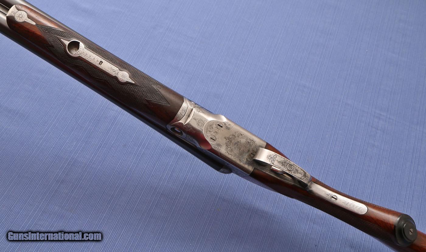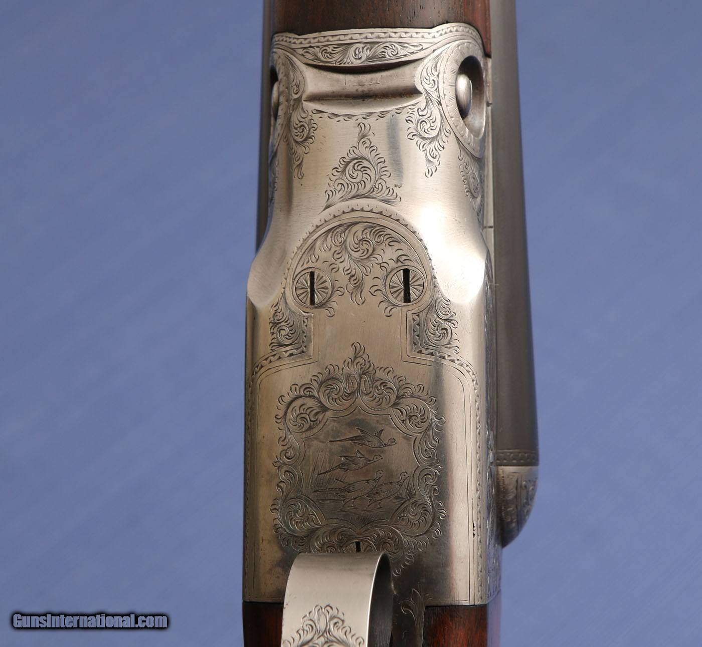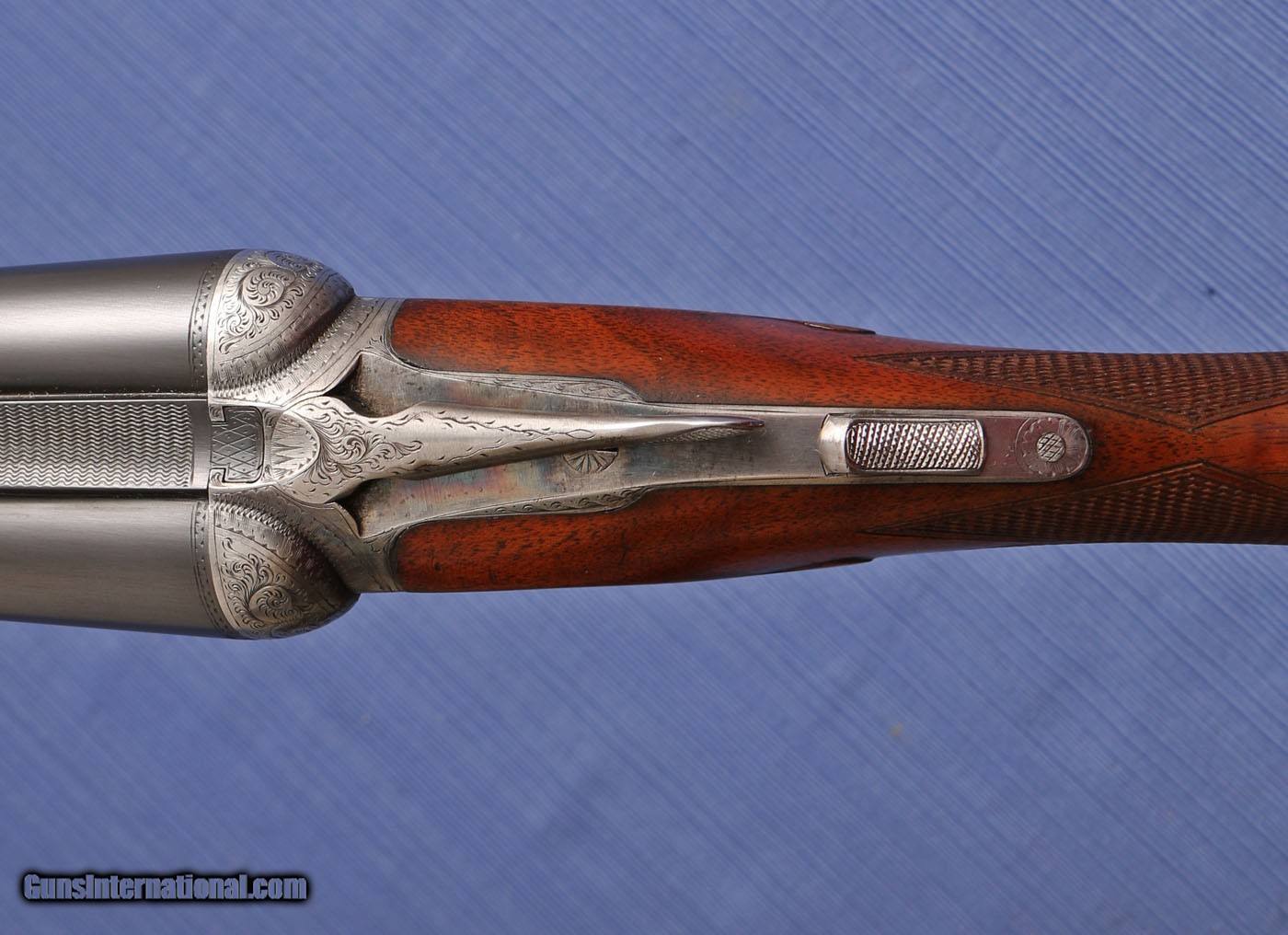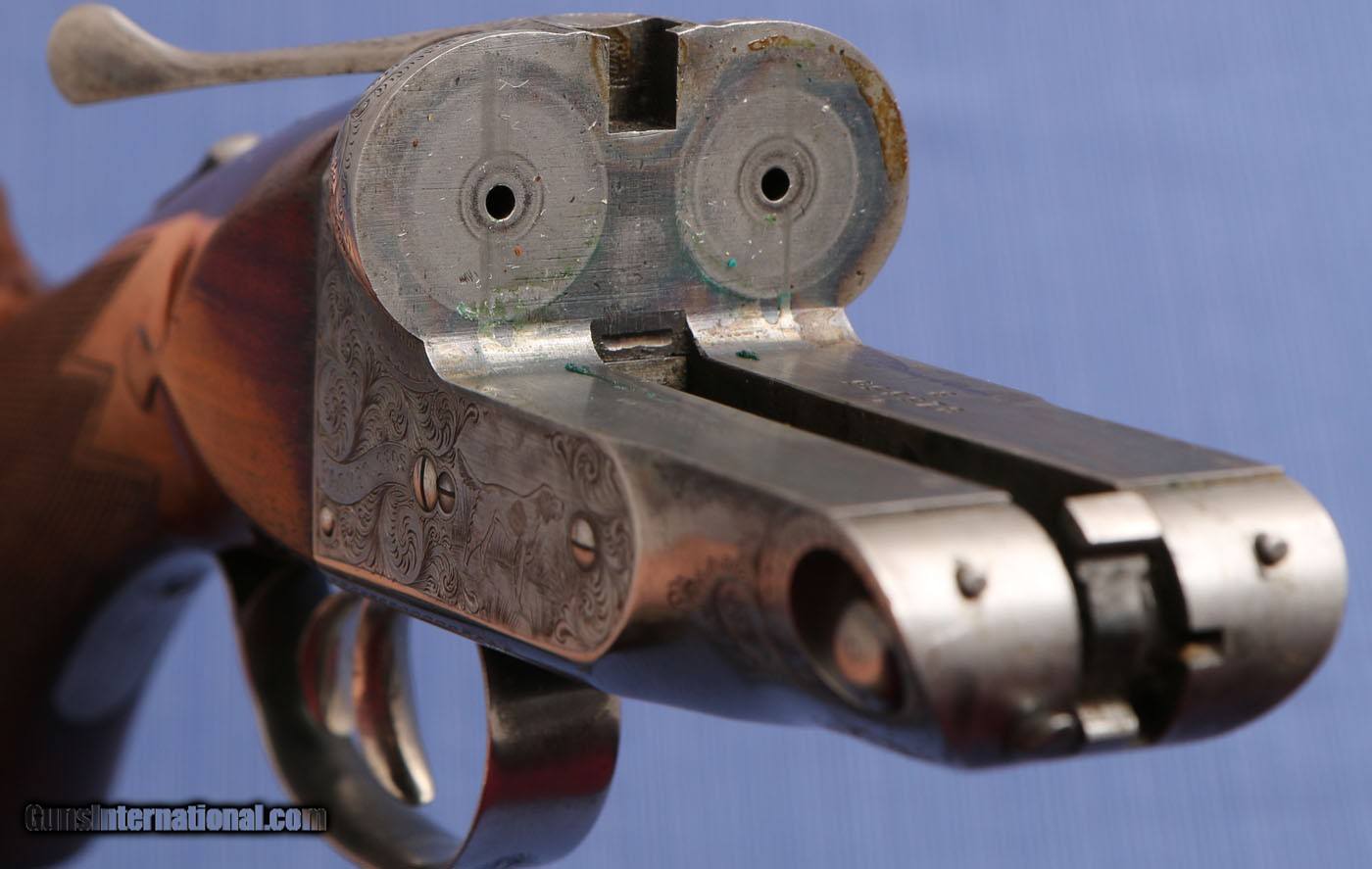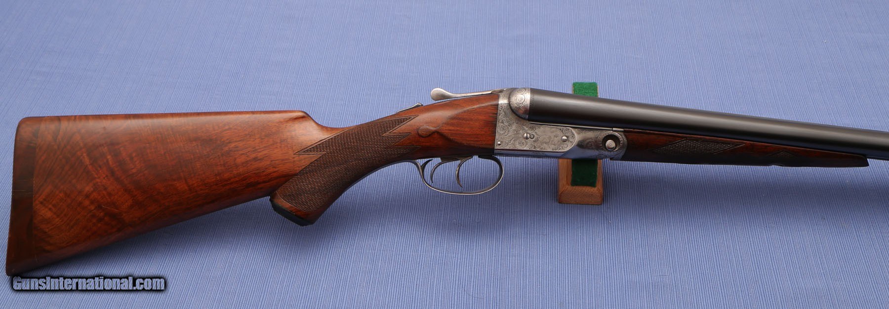 Description: Parker - DHE - 12ga, 2-3/4", 28" SK / F (.735-.005 / .742-.040), DTs, Ejectors, LOP 14-1/4", Drop 1-1/2" to 2-3/4", Very Slight Cast On for Left Hand Shooter, Weight 7 lbs. 1 oz. Overall, a very nice example of a shooter DHE. The barrels have been reblacked. Clearly the barrels have seen some work inside - some polished out areas and oversized bores. They look good inside now. Minimum wall thickness is .029 inch - so no issues there. A wooden butt extension has been added. LOP to edge of original stock is 13-3/8 inches. So, you could replace the butt with a pad.