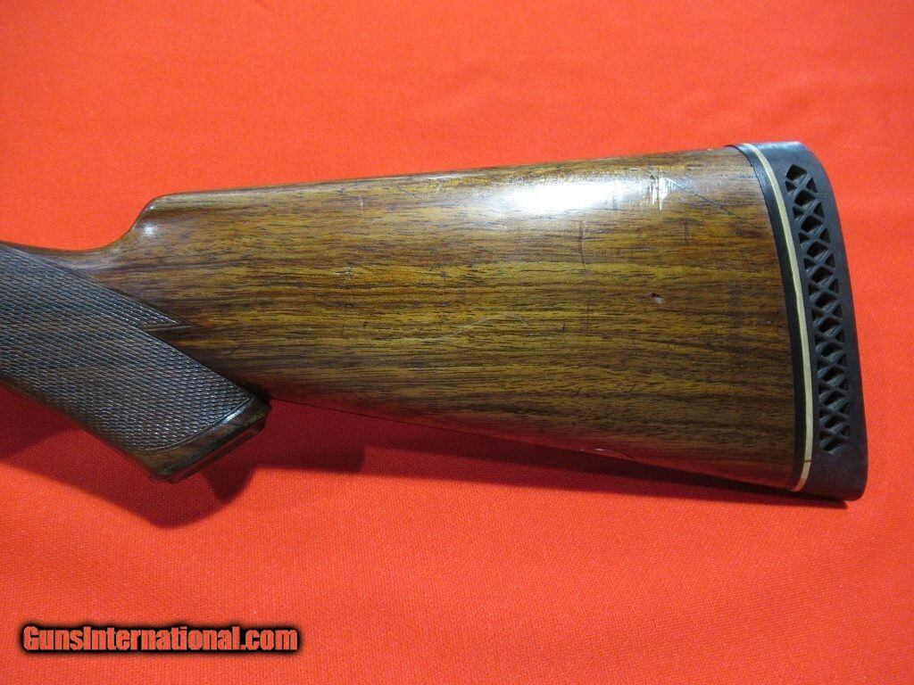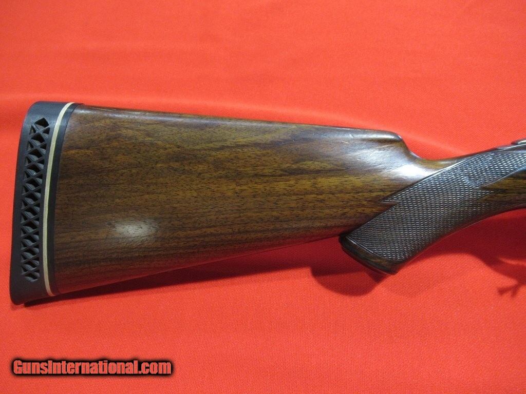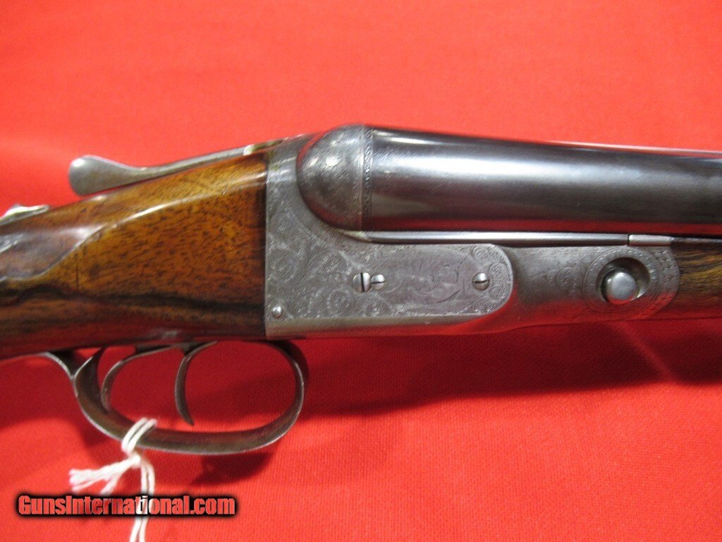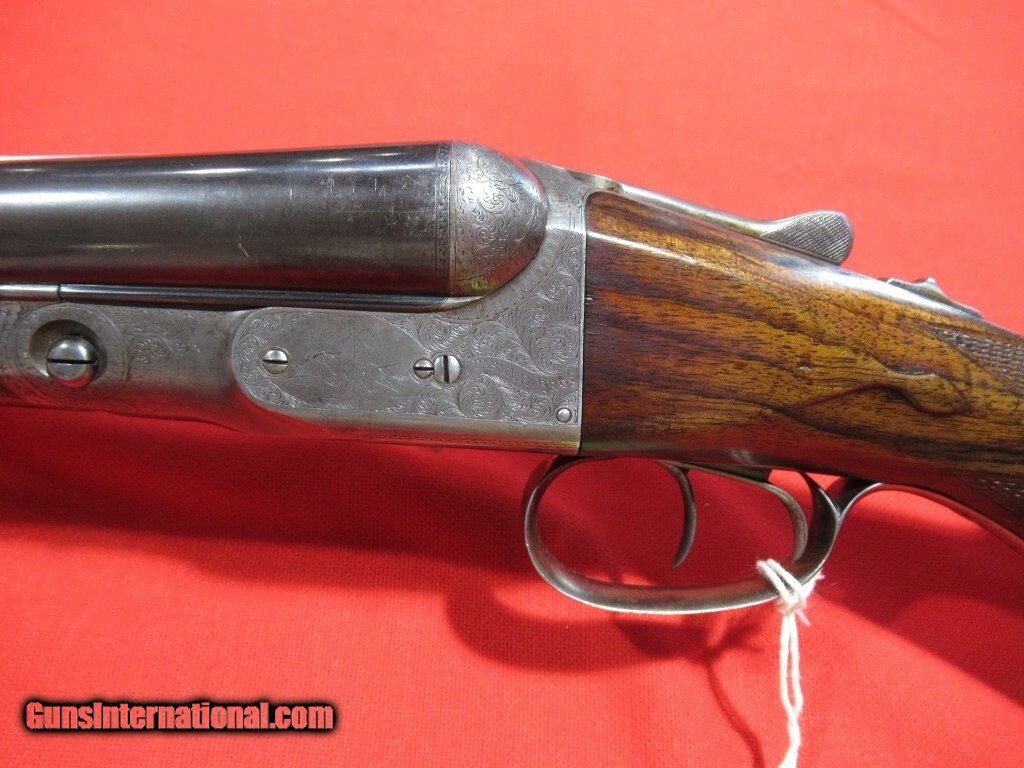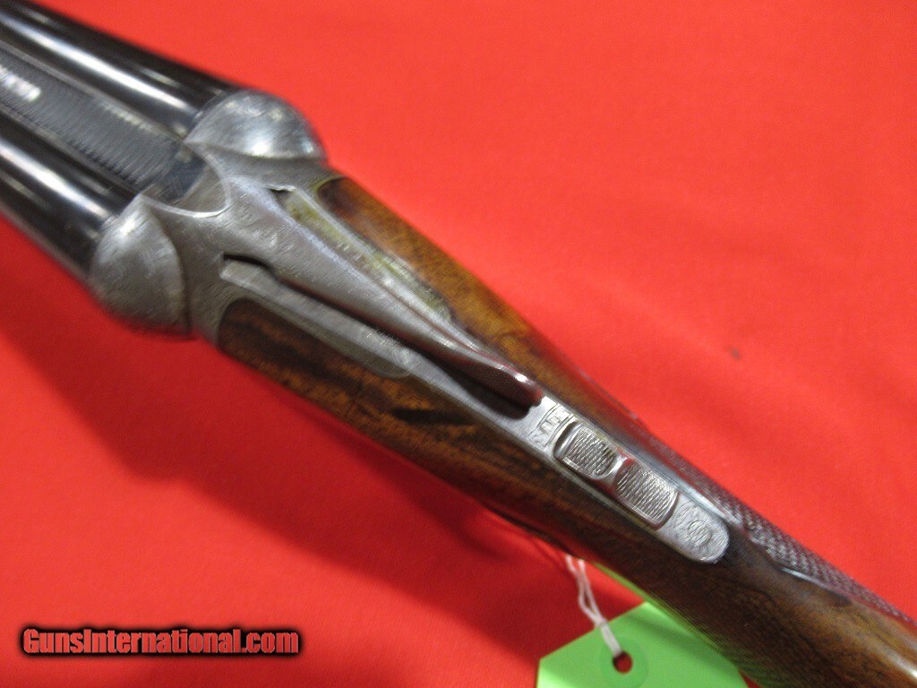Description: 93xxx serial number range DH manufactured in 1899: Titanic steel barrels, capped pistol grip, double trigger, splinter forearm, twin ivory beads, automatic safety. The barrels have been reblued and the stock refinished. The right side features a setter flushing an upland bird, a pointer on the left side, and a fox stalking two pheasants on the bottom. The stock measures 1 1/2" x 2" x 13 5/8" with 12 5/8" of wood and weighs 7 pounds 8 ounces. The barrels measure .732" on the bores with .022" of choke in the right barrel and .037" of choke in the left. Price: $3,500.00 Contact Seller |