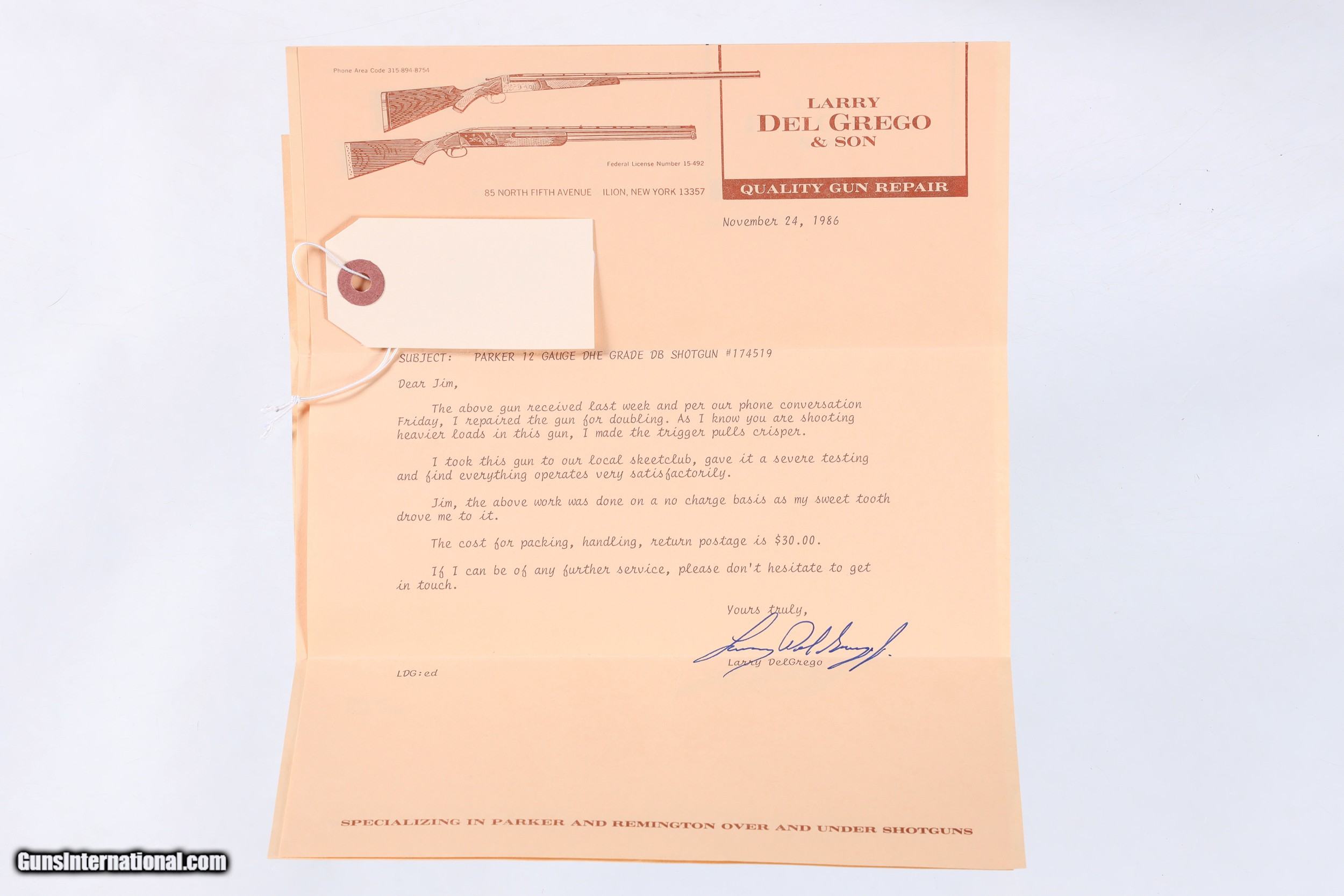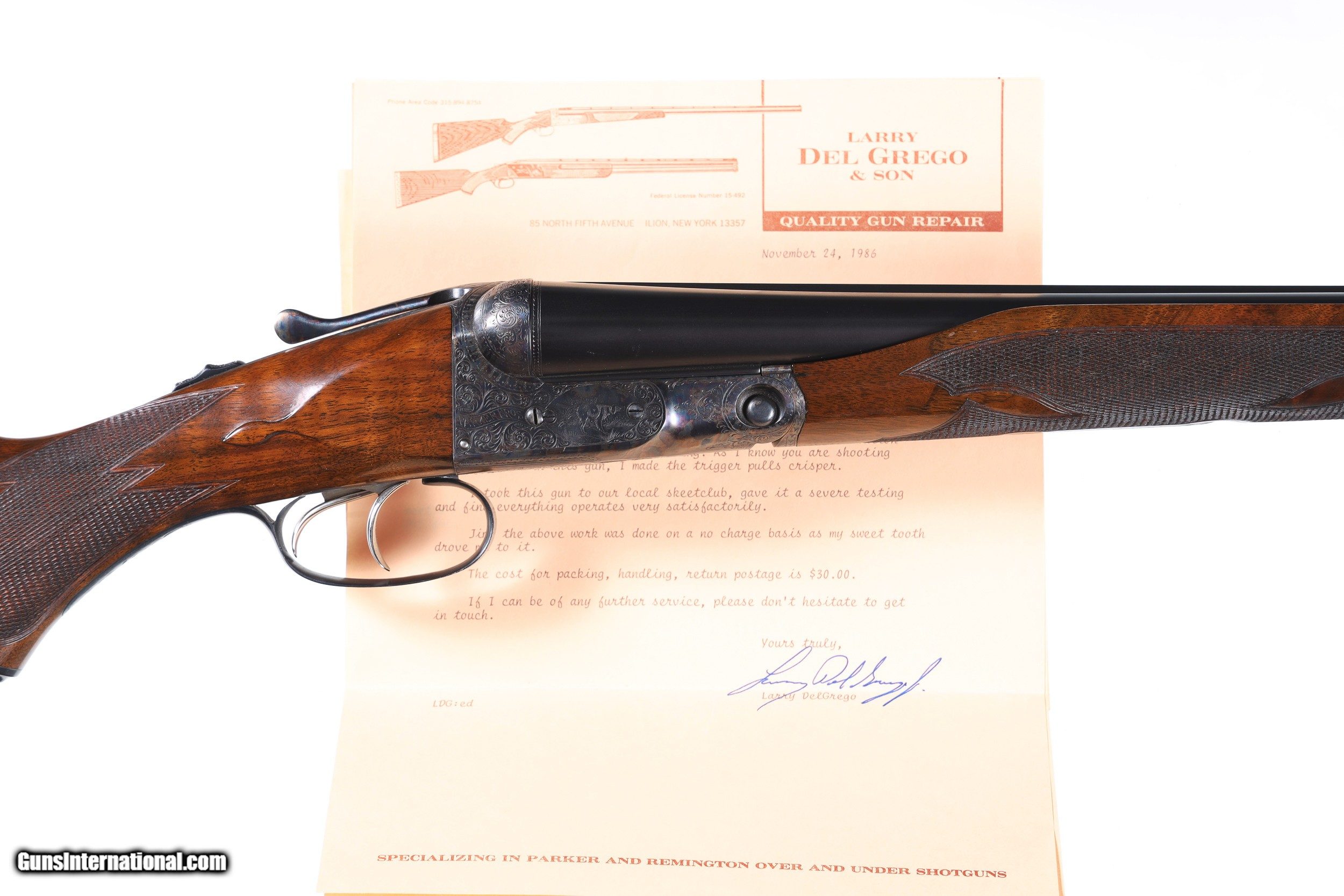 Description: Excellent plus overall condition, minimal handling marks to wood as professionally restored by Larry Del Greco. Includes 1985-86 correspondance with Del Greco & Sons outlining work performed with a May 14, 1985 invoice for $965.60. Mfd in 1916. Drop 1-7/16":2-3/4" #2 Frame. • Free Shipping, No Credit Card Fees. • Lay-a-way available for this firearm. • 1/3 Down, a 1/3 in 30 Days 1/3 in 60 Days. SOLD Curio/Relic: Yes Manufacturer: Parker Model: DHE Serial Number: 174519 Barrel Length: 30 |