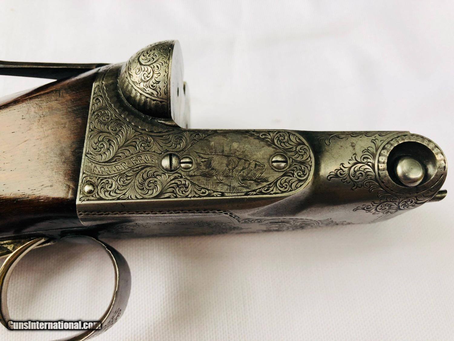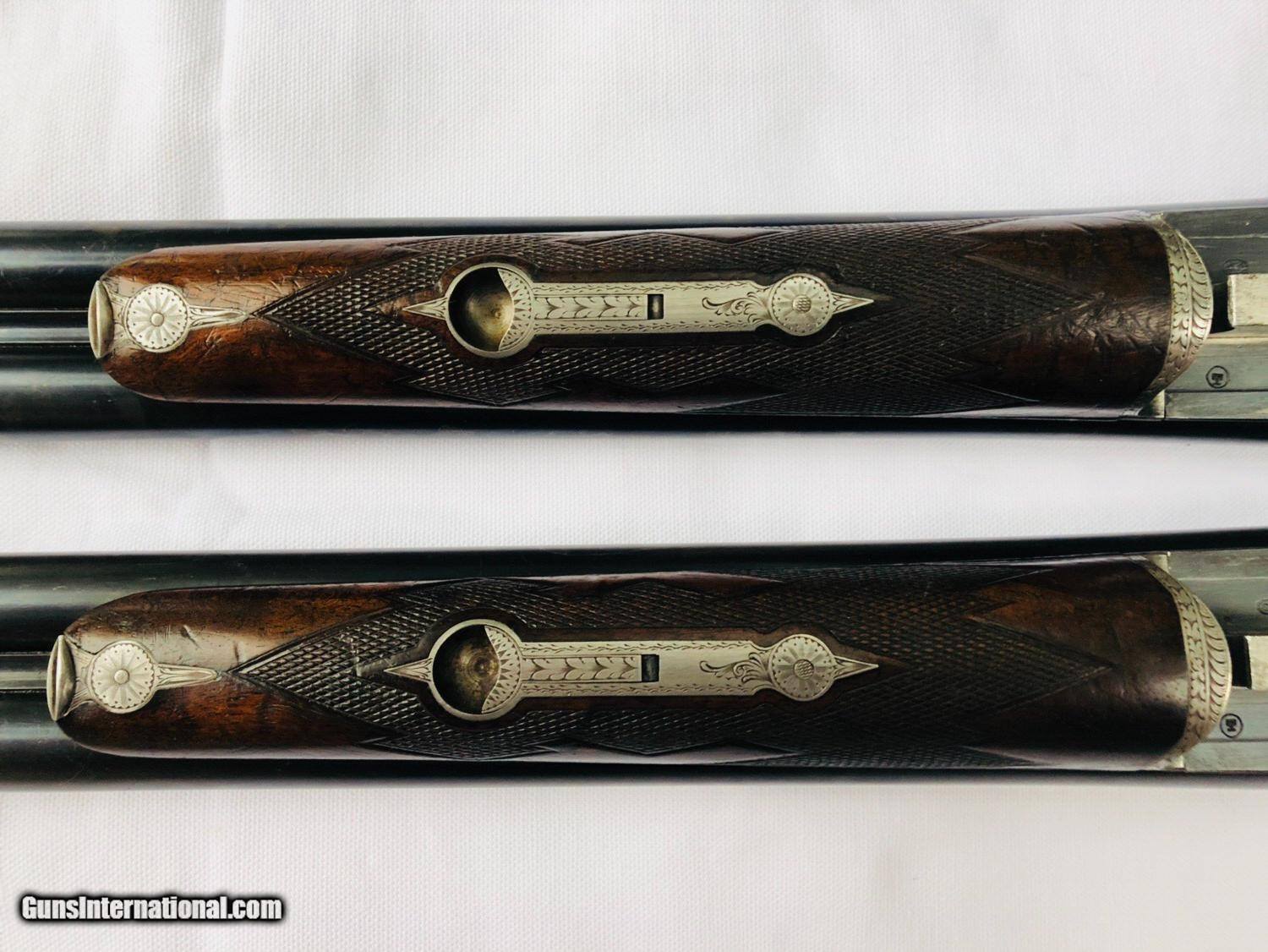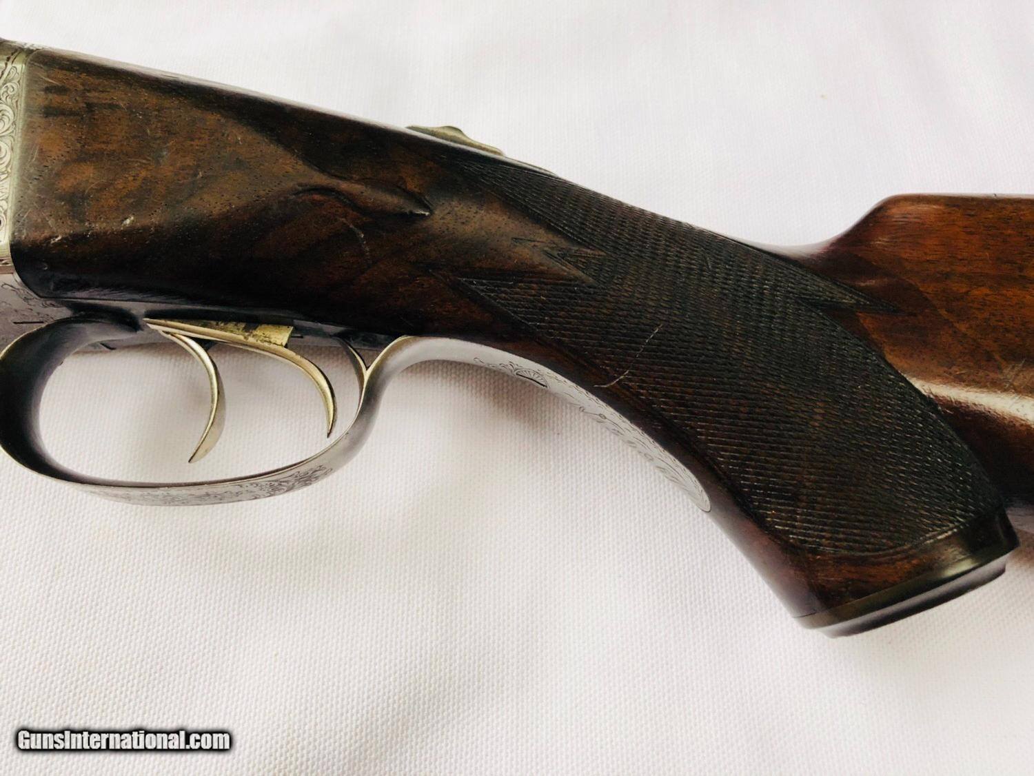 Description: Parker DHE 12ga Factory Two Barrel Set 26” and 30” DHE 12ga #2 Frame LOP: 13 ¾” Skeleton steel Butt plate Barrel Set No. 1 30” choked RH: Modified and LH: Full Minimum Wall Thickness Left: .032 Right: .038 Weight of gun is 7.7 pounds with these barrels Barrel Set No. 2 26” choked RH: Cylinder and LH: Modified Minimum Wall thickness Left: .032 Right: .037 Weight of shotgun is 7.3 pounds with these barrels Both sets of barrels are factory chambered 2 5/8”. Both sets of barrels lock up tight and on face. There is no corrosion either inside or outside either set of barrels. Both sets of barrels show fading of the bluing, scratches and normal wear. There are no dents or dings on either set of barrels. Ejectors for both sets of barrels work properly and are in time. Both sets of barrels show about equal use. I wouldn’t say one set is significantly better condition than the other. The wood shows normal wear from use. There are no cracks or splinters missing from the stock or either forearm. There are no repairs to any piece of wood. The action has turned silver. There is case color in the usual protected areas. The skeleton steel butt plate shows normal use and wear with no corrosion. All screws are in good condition and in time. The Oval in stock is present and not engraved. The forearm metal has turned silver with case color in the protected areas. Just a nice, honest, original condition DHE you can hunt with on Saturday and take to the range on Sunday. No excuses and no speculation. The shotgun has hard to find 26” barrels making it great for hunting. The shotgun matches the letter. It has been well used in its 106 years and has been taken care of when not in use. We are a licensed FFL. If you are a resident of Missouri we are required to charge sales tax. We offer a seven day inspection period. With a no hassle return. Feel free to fire with appropriate loads. This is an old firearm and if there is evidence it has not been handled appropriately, has been packed and shipped incorrectly, or has been otherwise abused, refund will be declined. Buyer pays return shipping and insurance. SOLD Manufacturer: Parker Model: DHE Chambers: 2 5/8 Ejectors: Yes Condition: Good Overall Metal Condition: Good Wood Condition: Good Bore Condition: Excellent Original Barrels: Good Barrel Type: Steel Triggers: Double Gauge Info: 12 Stock Comb: 2 Stock Heel: 3 LOP: 13 3/4 |