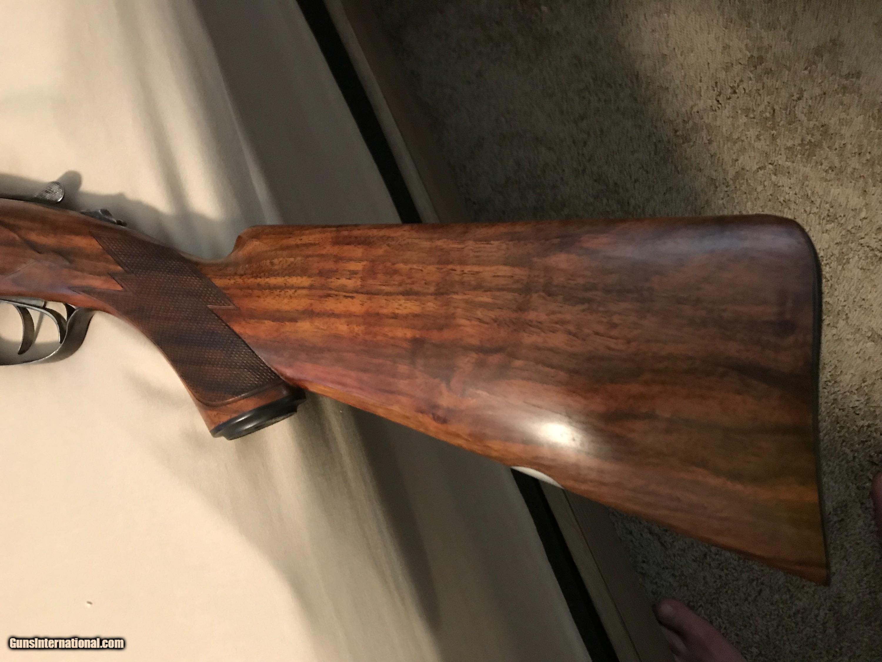 Description: #163XXX O Frame, 1913 30 Inch Barrels, both Mod/Full LOP 13 1/2 ", DAC 1 1/2", DAH 2 1/2" Stock repaired at Parker, 1916 Splinter Forend, Skeleton Butt Plate, Pistol Grip Some case Colors, Mirror Bores "Sweet Little Bird Gun" Have Letter SOLD |