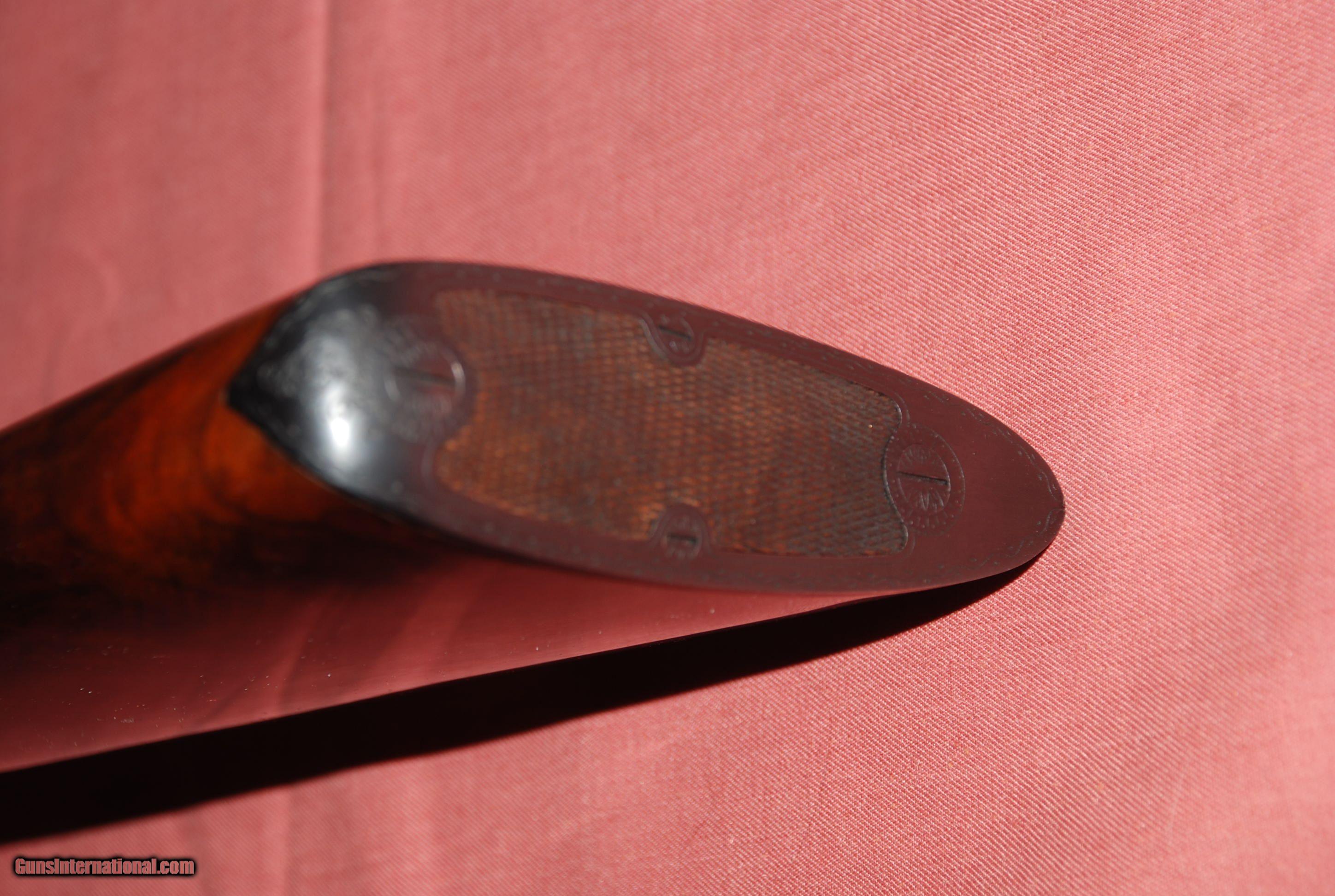 Description: This gun has been restored to new condition. It is a DHE made in 1912 with 28" Titanic barrels 0 frame 2 3/4" choke cyl and im with great bores, auto safe. The LOP is 14 1/4", the DAH is 2 3/8" and DAC is 1 3/8", 6lbs 4oz The bluing and case color was done by Turnbull. The serial number is listed in the Parker sreial number book and gun is correct. The forearm is original pretty fancy wood and the super fancy buttstock is a replacement, correctly renumbered and is excellent with skeleton buttplate. Shipping over night to the lower 48 is $75.00 Sold Pending Funds SOLD Curio/Relic: Yes |