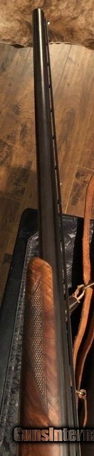 Description: Sold. For sale is my Parker DHE, 12 gauge. This beautiful clays, trap and waterfowl gun is built on a #2 frame. It features 32 inch barrels and 3 inch chambers. It has a Simmons vent rib, added by them in the 1960’s. It was likely part of an overall restoration which included the rib, chamber, triggers and new wood. I recently had Buck Hamlin restore the metal. This included tightening the action, lever is to the right. He also removed small dents, reblued the barrels and trigger guard, and installed a new set of white Bradley, mid and end beads. Barrels retain 100% reblue and are beautiful. The gun features a straight-grip stock with long tang. Wood is a restock with nice figure, likely by Fajen. Wood finish is original to the stock, with the usual bumps and handling marks. I added a thin coat of Timberlux. Beaver tail forend seems to be an old modification. The original splinter forend was actually placed into the beaver tail. Go figure. I’ve shot a several rounds of trap and clays with this Parker. It functions flawlessly and handles beautifully. Chokes M/IM. Manual safety and double triggers. Engraving is nice and sharp. LOP 14.25, with very useful modern dimensions, DAH 2 1/2, weight on my bathroom scale is 8 lbs, 13 oz. If you want a long-barreled, straight-gripped DHE to crush clays or take birds, this is a fantastic gun to do it with. C&R. SOLD Curio/Relic: Yes Shotgun Gauge: 12 Gauge Manufacturer: Parker Model: DHE Serial Number: 201087 Barrel Length: 32 inches |