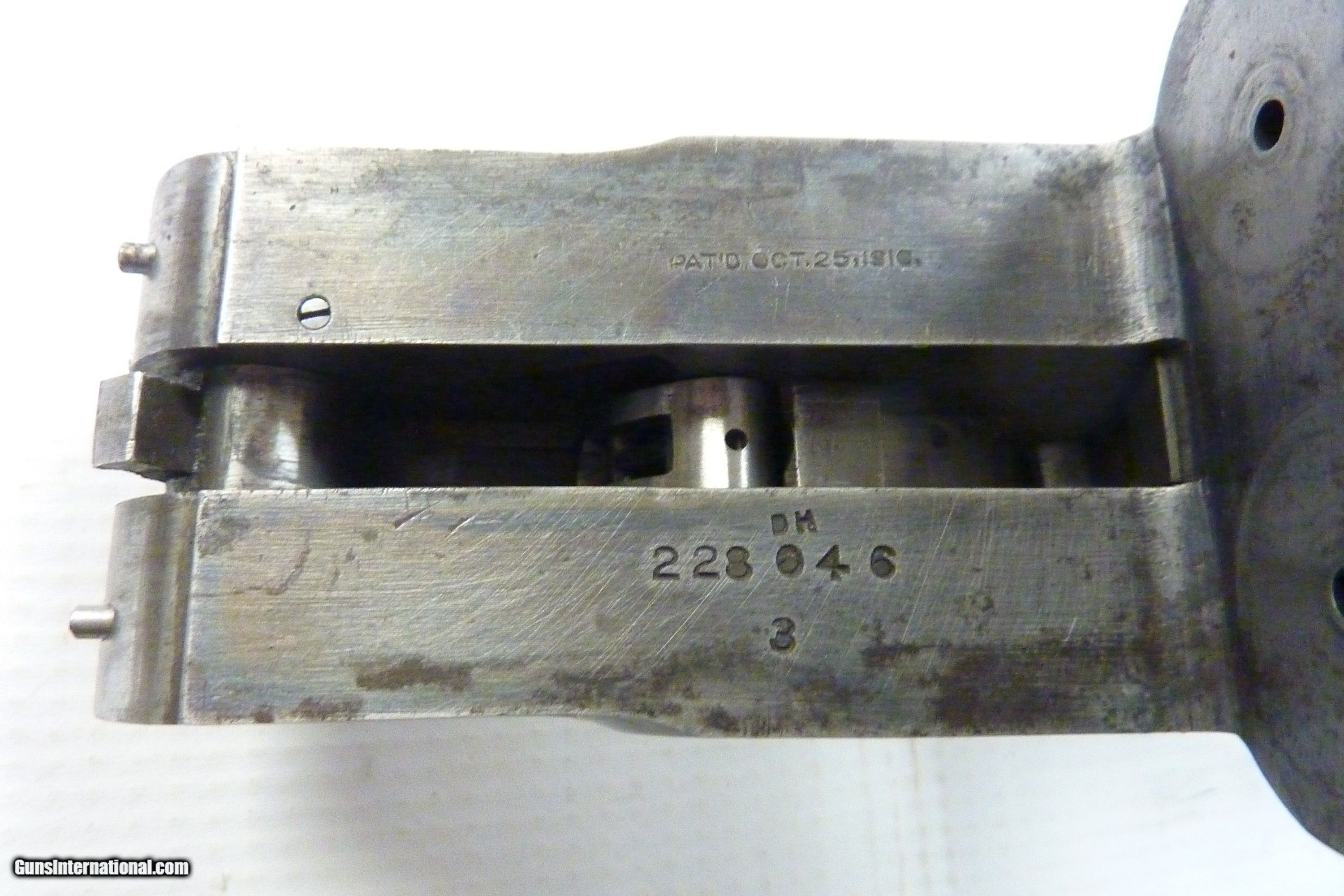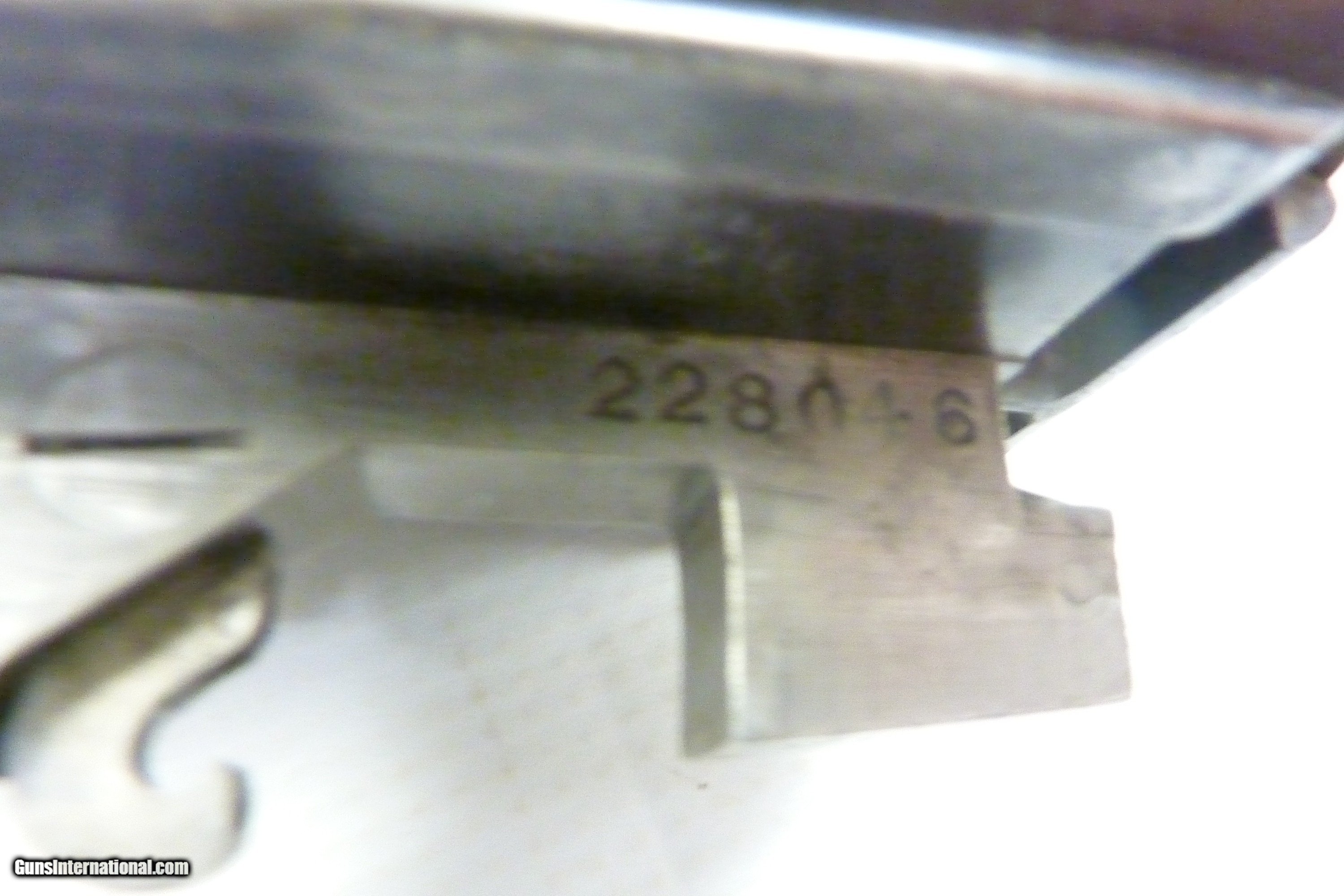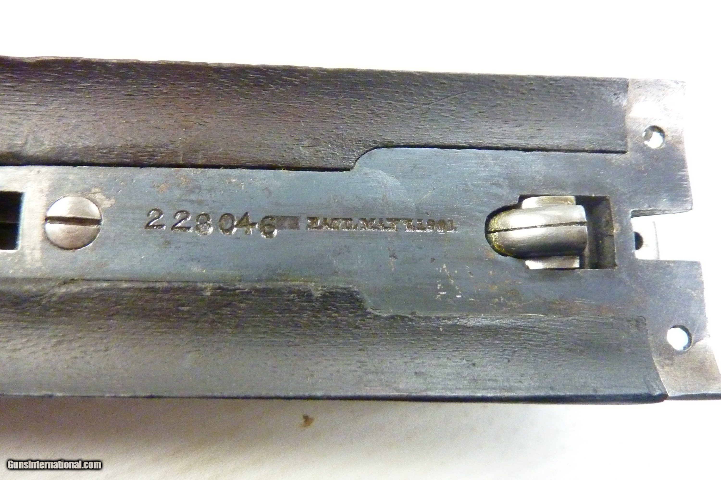 Description: Mfg approx 1928.Parker DHE 12 ga sxs shotgun. Single steel bead sight on a concave solid matte rib barrel marked PARKER BROS MAKERS MERIDEN CT USA TITANIC STEEL. 2.58 chambers, choked modified/full with auto ejectors. The barrel, water table, and lower tang have matching serial numbers 228046.. The water table has the 1910 patent date with a DH over the serial number over 3. The casehardened action features a scroll engraving with a dog and Parker Bros in a banner on each side, and 4 game birds on the underside Double trigger, and a tang-mounted automatic safety. The forearm is numbered to the frame and barrels, checkered splinter forearm, and checkered straight grip stock. skeleton steel buttplate The barrels have 50% of the original blued finish with areas of spotting and pitting as well as light handling marks. The receiver has aged to mostly a silver tone with muted case colors only visible on the water table. All engravings and markings are strong. The wood is fair, with pressure indentations, abrasions, small chips and scratches throughout. Mechanically very good. . Shipping is $95.00 with additional shipping costs to AK,HI,CA,PR. SOLD Curio/Relic: Yes Shotgun Gauge: 12 Gauge Manufacturer: PARKER BROS Model: DHE Serial Number: 228046 Barrel Length: 28 Bore: GOOD Chambers: 2.58 Ejectors: AUTO Condition: GOOD Metal Condition: GOOD Wood Condition: GOOD Bore Condition: GOOD Barrels: OK Barrel Type: PLAIN Action: SXS LOP: 14.25 Manufacture Date: 1928 Chokes: MOD/FULL |