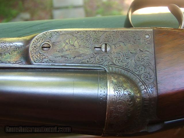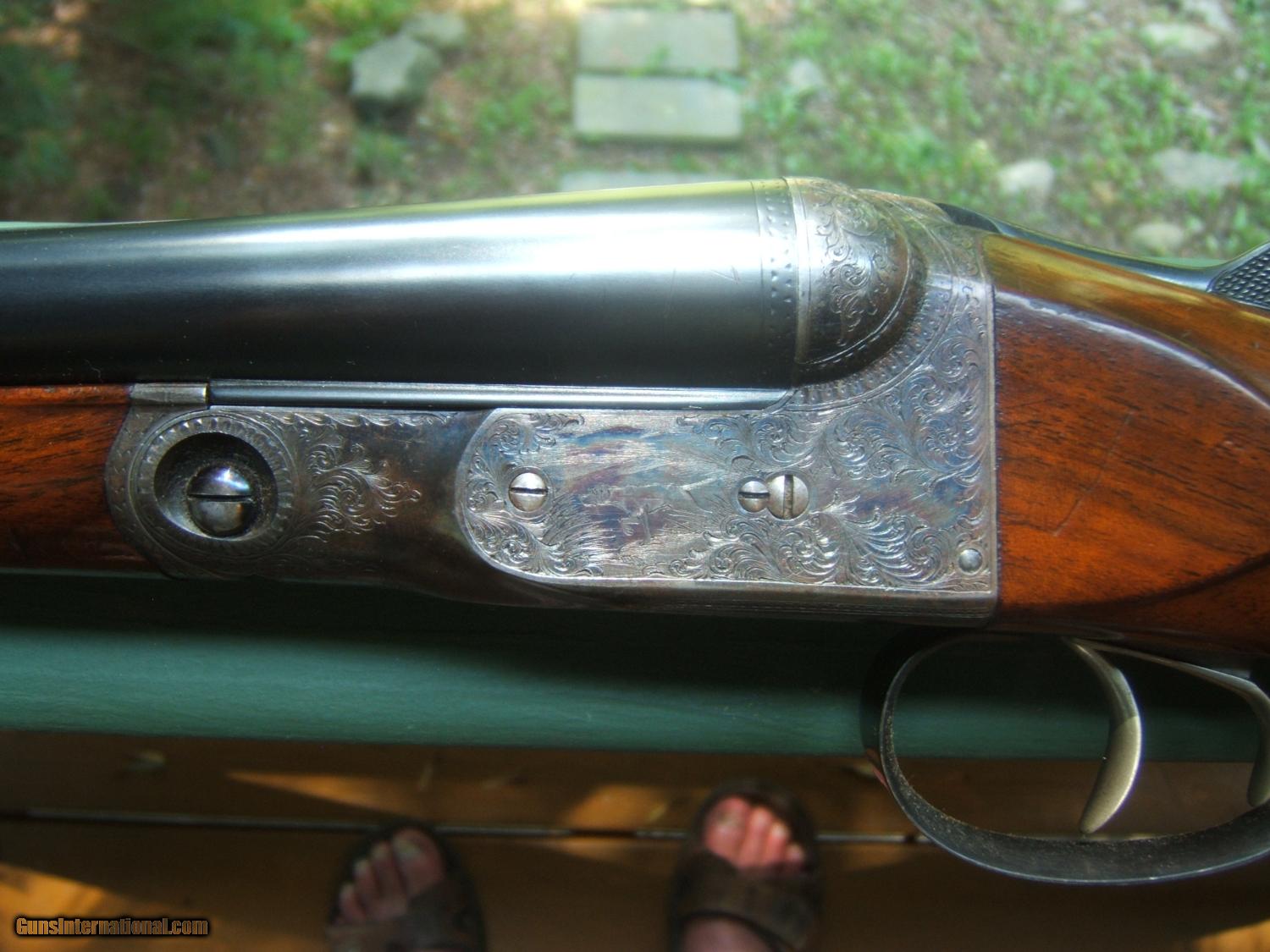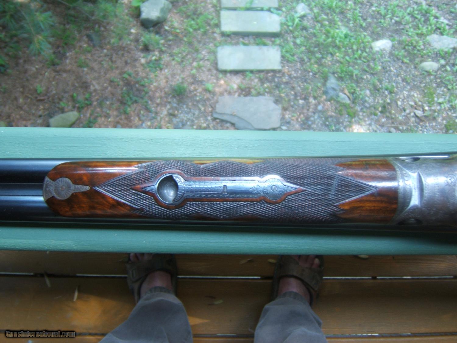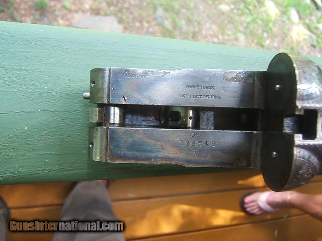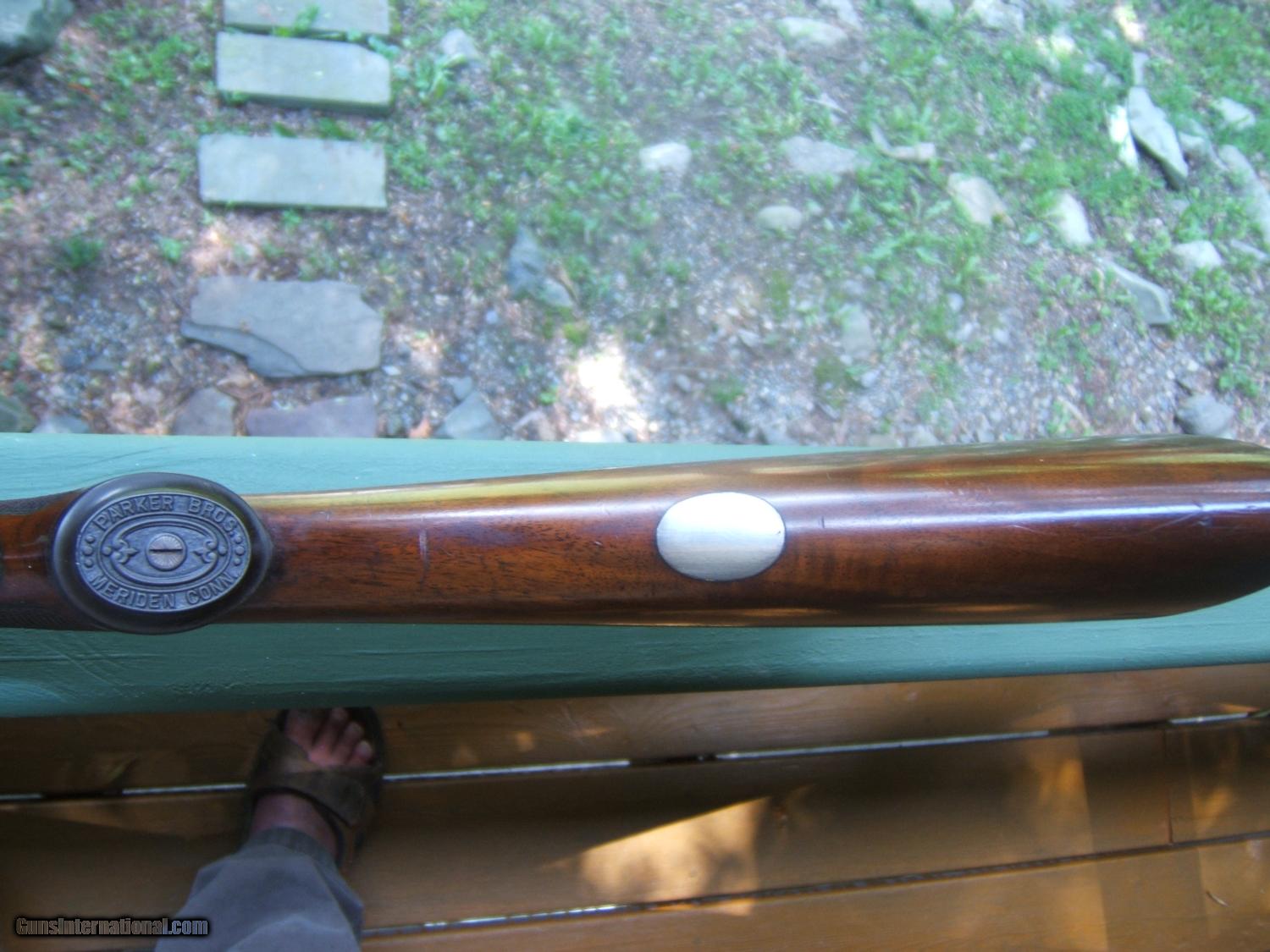 Description: This a Parker DHE grade 16 Ga.. The shotgun is in excellent overall condition. Barrel blueing and case color are excellent. There are a few extremly light handling marks on the stock that I can not get photos of. This shotgun was built in Oct. of 1936 and comes with a Parker Collectors Association letter derived from factory records. The shotgun has 28" barrels choked mod & full. Barrel stamp is { Parker Bros. Meridian Ct. Titanic steel) DOC is 1 3/4 and DOH is 2 3/4. LOP is 14" to front trigger. Serial number is238549. Any questions please call 267-992-7521. Thank you. This shotgun is on a #1 frame I have received questions as to whether this Parker has been refinished. Thegun is all factory original in every respect. SOLD |