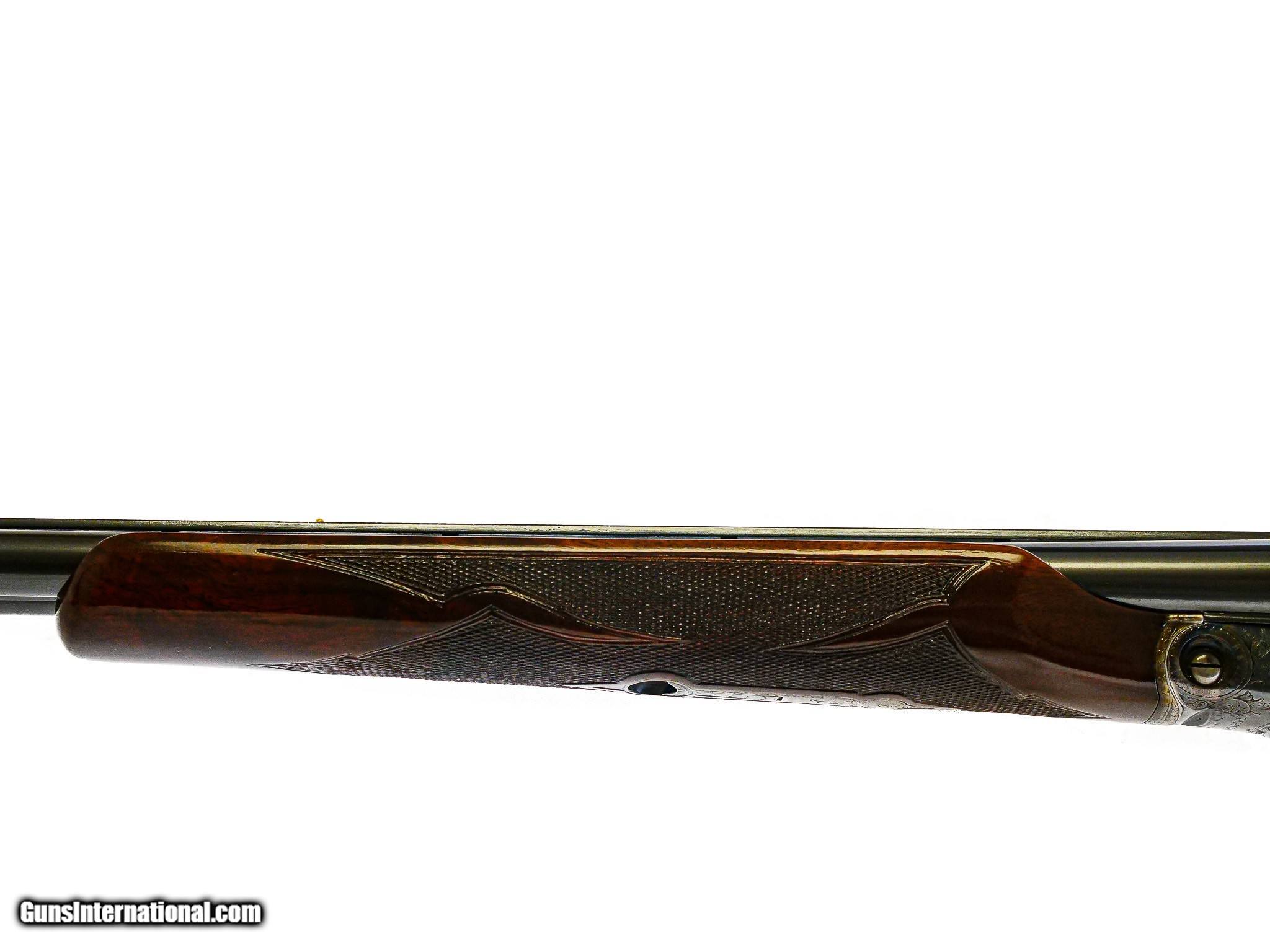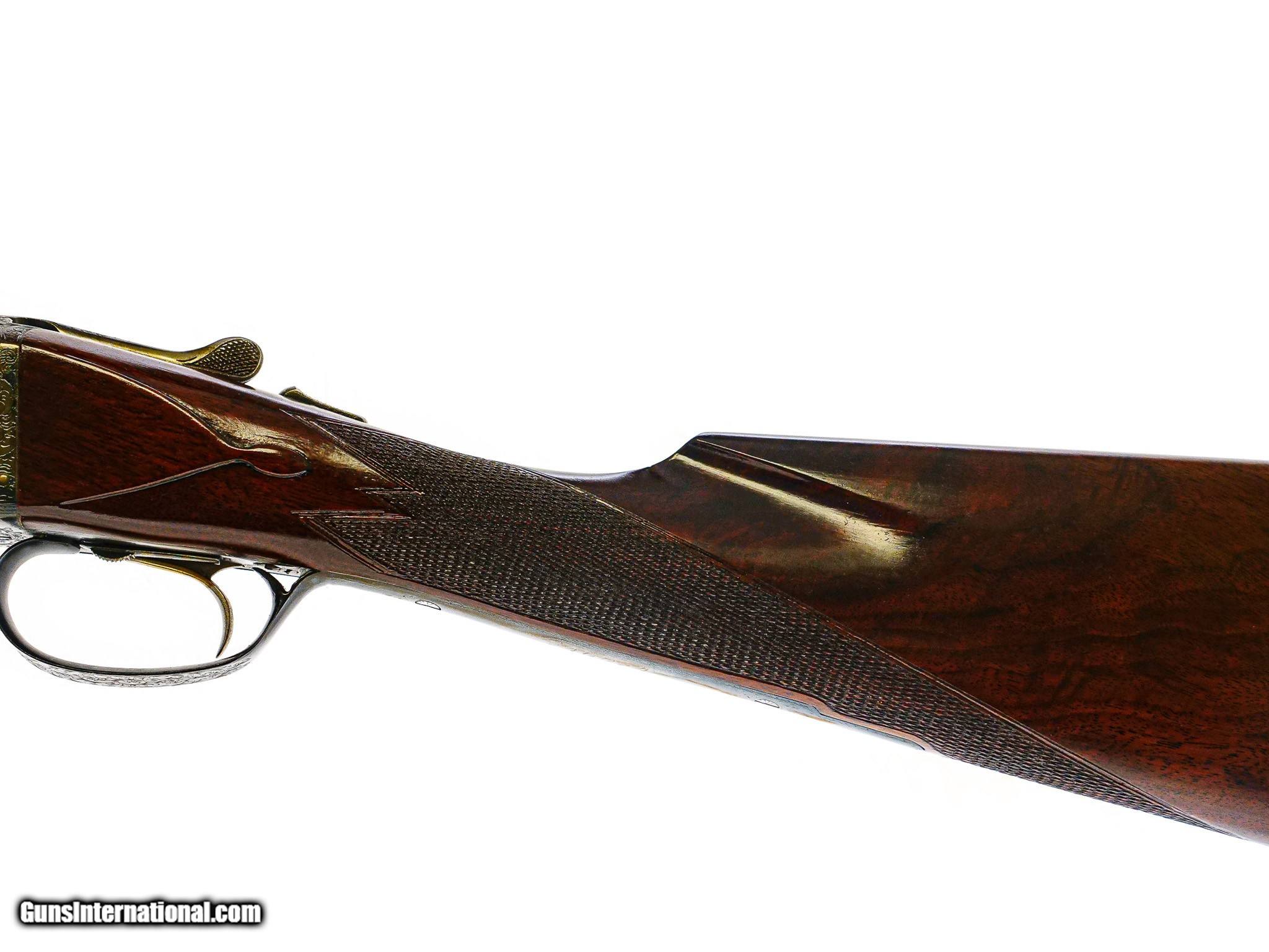 Description: Parker - DHE Grade, SxS, 0 Frame, 20ga. 28" RARE Vent Rib Barrels Choked M/F. 2 ¾” chambers, RARE vent rib barrels choked at M/F, straight grip, skeleton butt, Original Parker Single Selective Trigger, beavertail forend, two ivory sights, perfect screws, a majority of case colors, barrel blue, and wood finish. Perfect engraving, clean and tight. This gun has had minimal use, and is ultra rare! Inv: 70166 6 lbs. 13 oz. 14 ½" x 1 ½" x 2 3/8" $24,995.00 Connecticut Shotgun / Galazan buying, selling and manufacturing Parker Shotguns. With 47 years of experience, we have handled the largest collections of Parkers shotguns. Every grade, style, and era including the ultra-rare 3 invincible grades that are currently in the NRA Museum. And many of the milestone guns including SN 100,000 Annie Oakley gun and many more too numerous to list, We have bought and sold more A1 specials then any other firm when Remington wanted to reintroduce the gun they came to CT Shotgun/ Galazan We believe we have had and maintained the finest collection of Parker Shotguns that are available for purchase or trade, all of the guns that we sell are inspected and thoroughly cleaned as we maintain the only inventory of replacement parts for these guns, We can assure the guns that we sell for shooting or collecting are simply the best. So, when you are looking for your best collectible Parker Shotgun or your next favorite hunting gun look no further than CT Shotgun/ Galazan. We also maintain many styles, hunting and presentation case with accessories. SOLD |