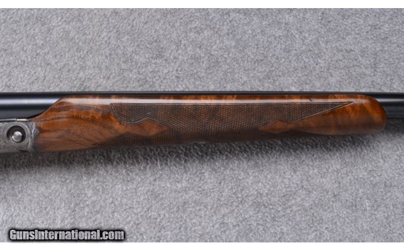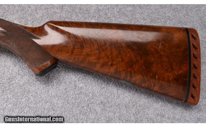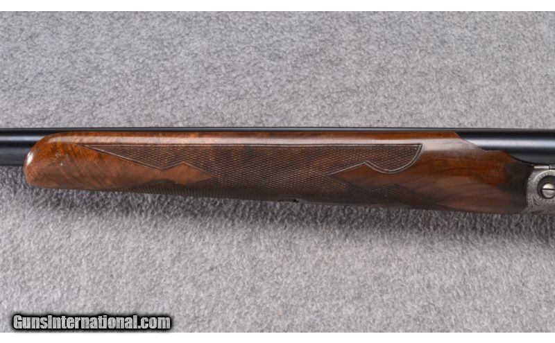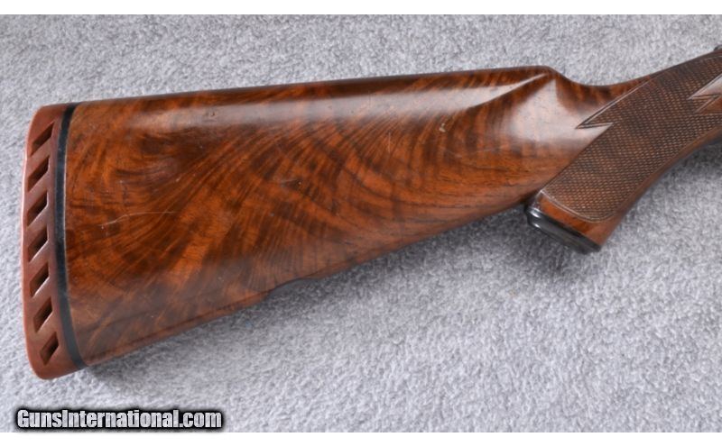 Description: Wood shows light use marks with thinning finish at both ends of the receiver. Forend has a chip missing from the left side. Receiver shows strong remaining case color with carry wear to the underside. Shows approximately 90% remaining blue with a bit of rack wear to the left barrel. Muzzles show a bit of blue wear also. Bore remain excellent. Center rib has 2 holes drilled & tapped and filled with plug screws. 20 Gauge SOLD Curio/Relic: Yes Caliber Info: 20 GA Chambers: 2 3/4" with Ejectors Metal Condition: Very Good Wood Condition: Good Barrels: 28 Triggers: Single - Selective Stock Dimensions: 13 3/4" LOP Fore End: Checkered Walnut Beavertail Butt Pad: Vented Red Rubber - Jostam Sights: Single Front Bead Chokes: Modified/Full Item Location: Wheeling |