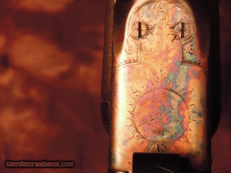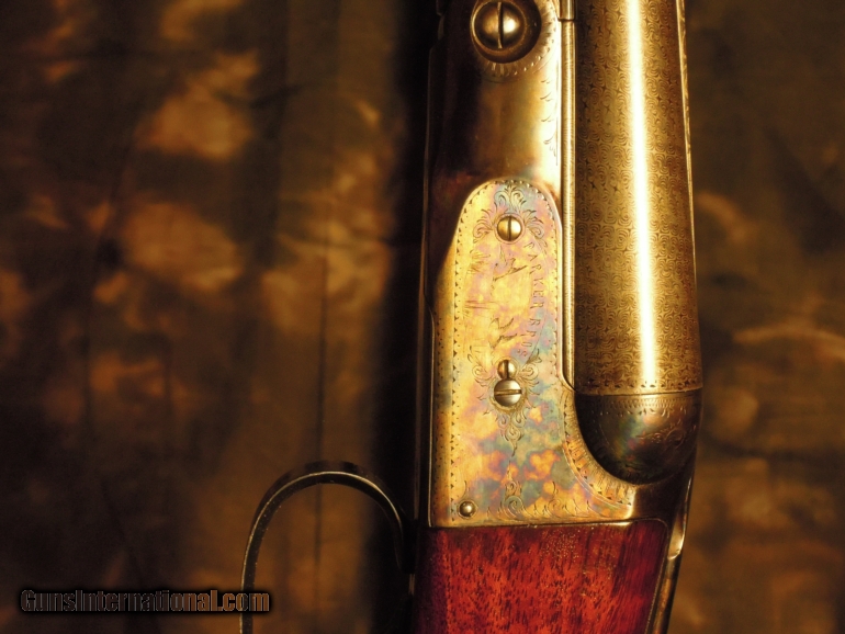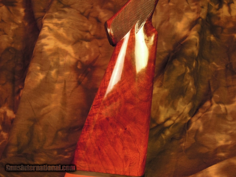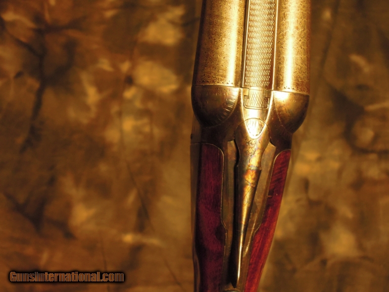 Description: Parker G grade O frame 20 gage with 28 inch beautiful Damascus barrels. Barrels are bright with no significant pitting and are choked IC and Modified. Gun manufactured 1900. Retaining near 100 percent metal finishes of older restoration. Screws are unmolested and show no signs of turning,Gun locks up solid and is on face and tight. Very nice piece of highly figured American Walnut with dimensions of 1 5/8 x 2 9/16 x 15 inches to vintage pad. 13 7/8 to uncut wood with top spur left intact. Checkering is nice and intact Gun has Original butt plate that could be put back on. The wrist has a pin professionally installed to stabilize a small crack in wrist Finish on wood is good with light handling marks Gun weight 6 pounds 5 ounces. Very nice condition small frame 20 parker that is a dream to shoot and carry all day afield. enjoy the photos and feel free to call with any questions. SOLD Curio/Relic: Yes |