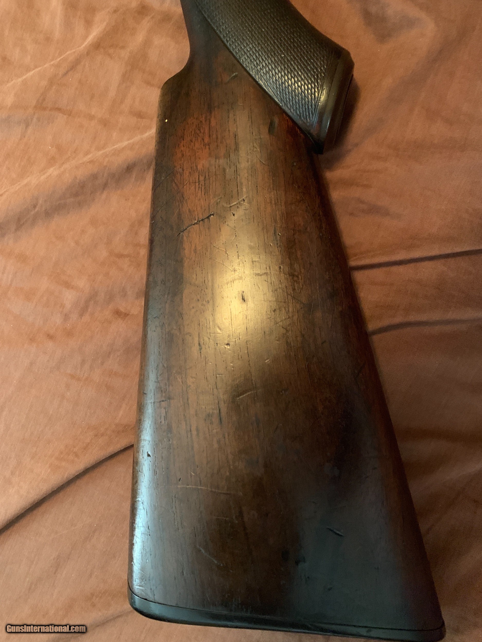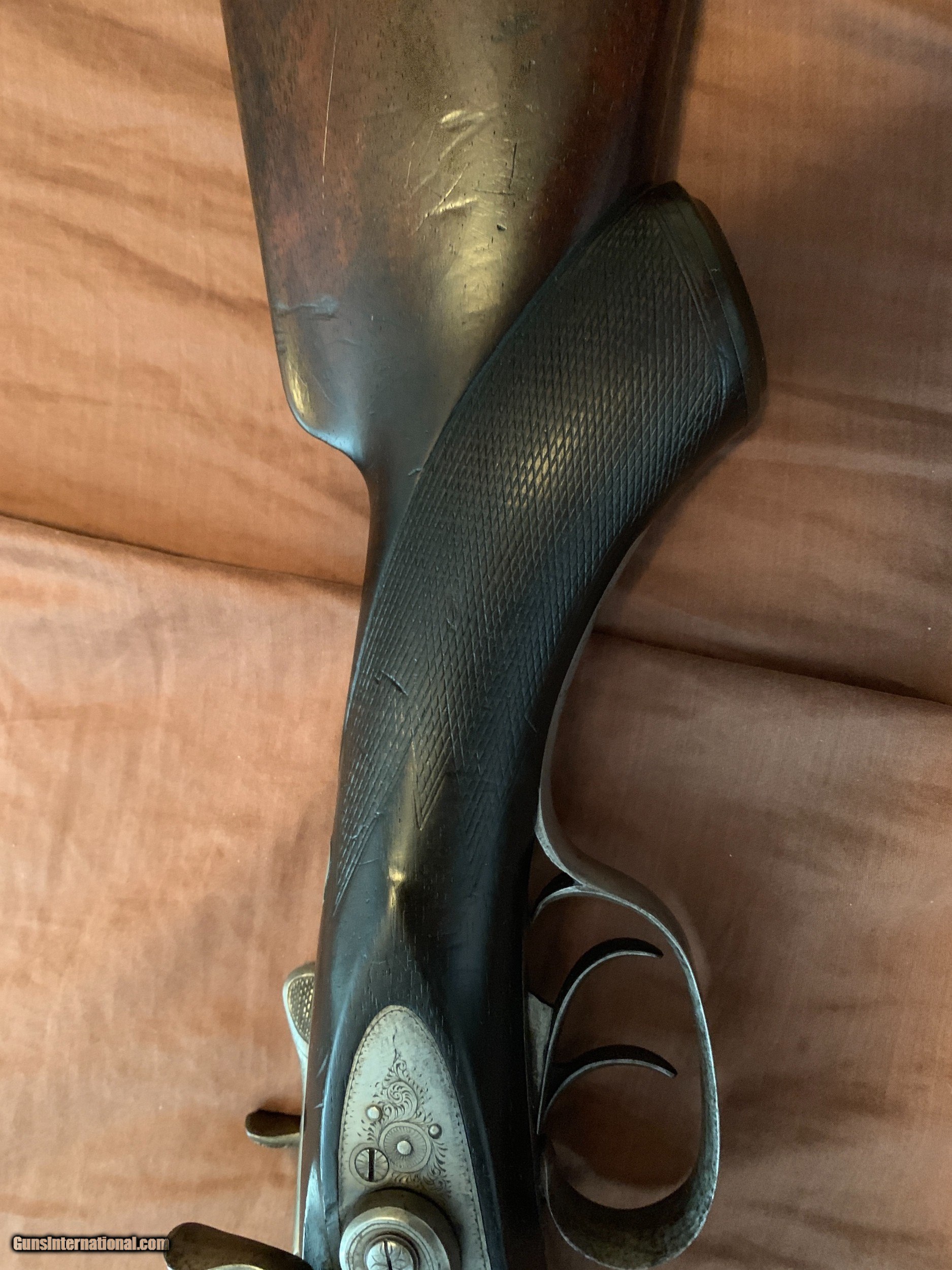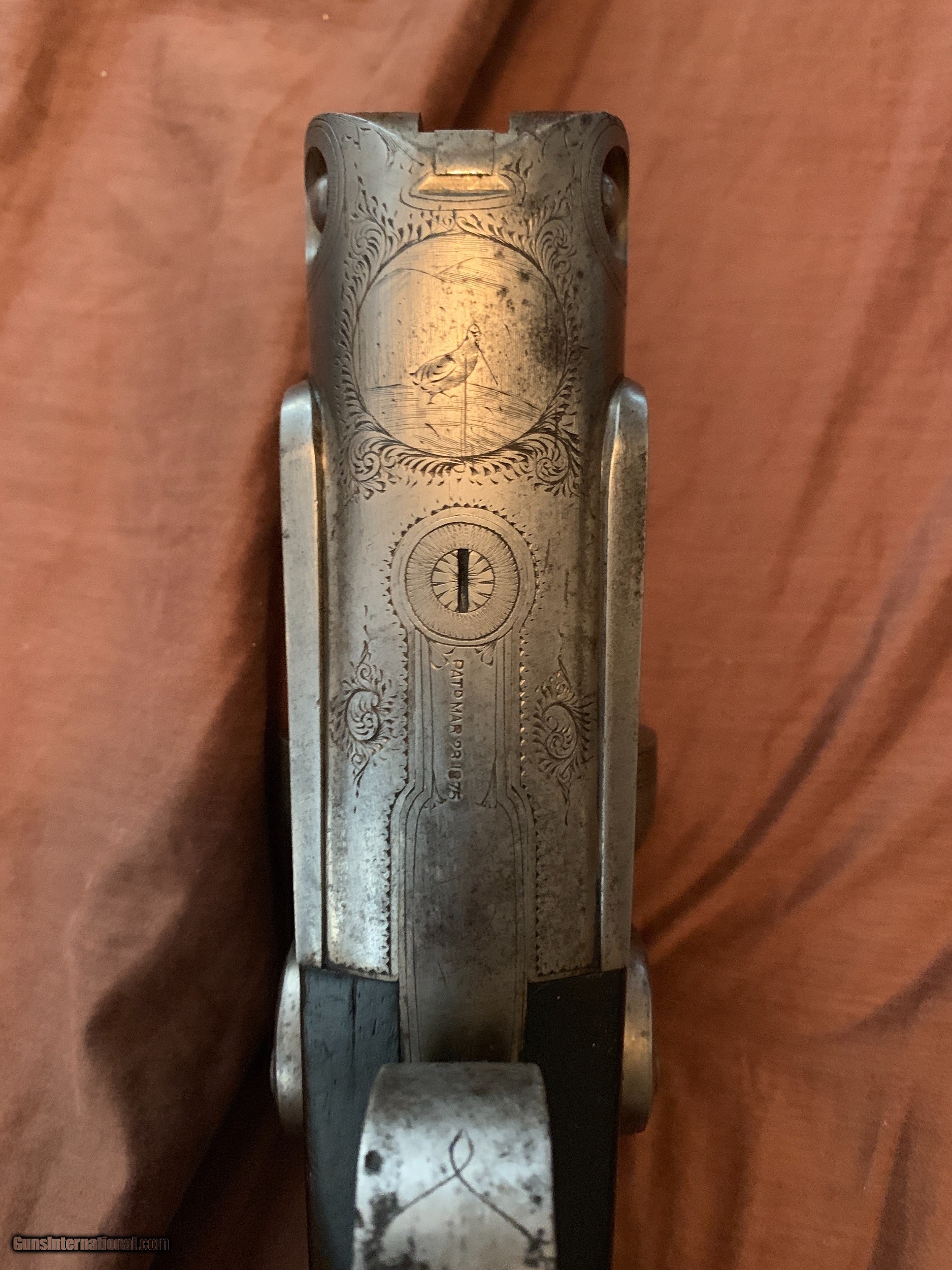 Description: Parker Bros G grade hammer gun manufactured in 1883. Good condition considering it’s age. Serial number 28348. Mechanically tight. 28” Damascus barrels. Dual triggers. Pistol grip stock. Splinter forend. All serial numbers match. Contact me for additional information and additional pictures. Buyer pays all shipping and transfer fees. SOLD Manufacturer: Parker Broa Model: G Serial Number: 28348 Gauge Info: 12 Manufacture Date: 1883 |