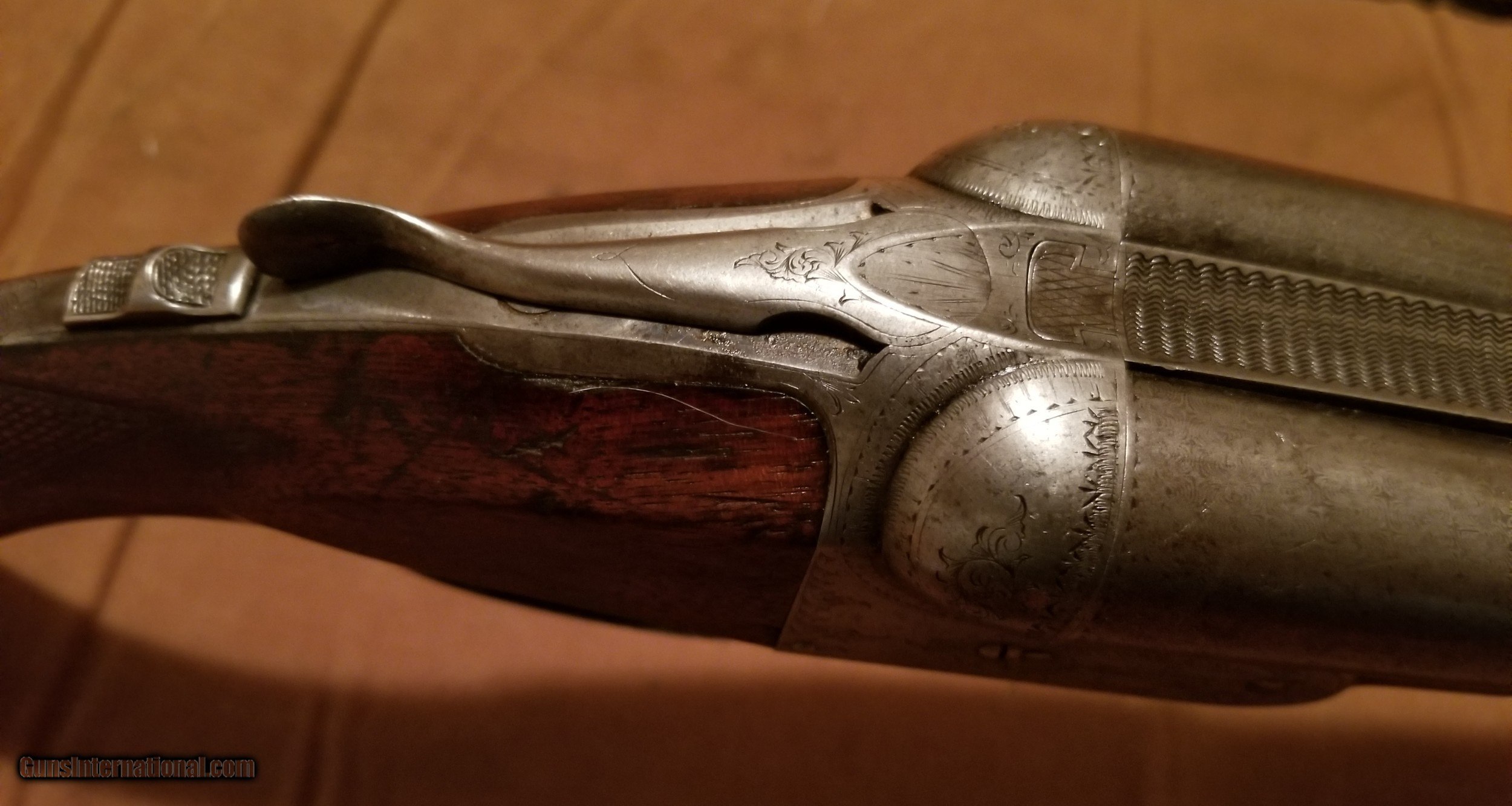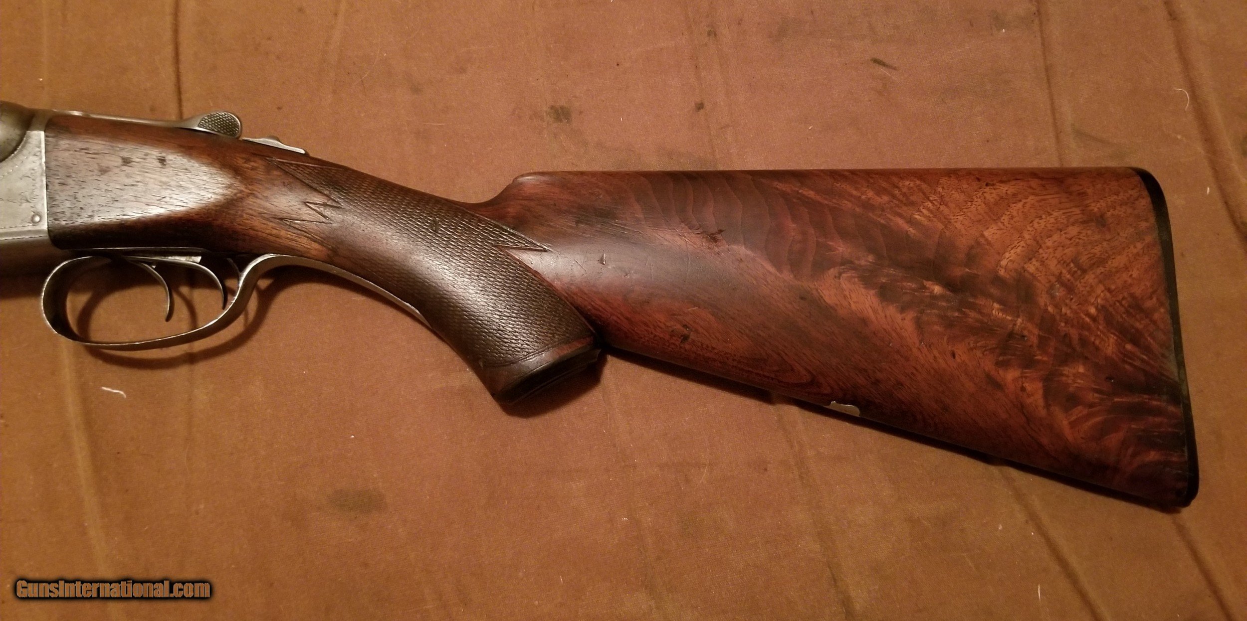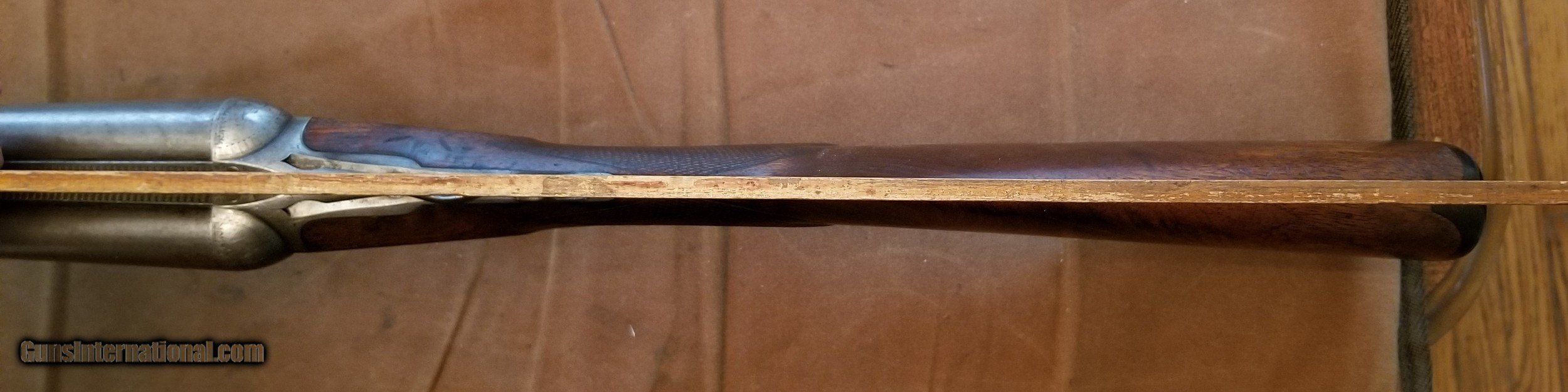 Description: For sale. Parker GH 12 gauge with a 1 frame, Damascus barrels, and fishtail top lever. 2 1/2 inch chambers. Chokes are improved cylinder, improved mod. Functions as it should. All screws are near perfect and in time. Original hard rubber butt plate. The stock is well worn as you can see, but clean with a beautiful pattern. One old repair near the trigger guard screw as pictured. The stock has a slight wave to it and the toe of the stock is slightly twisted out for a right hand shooter. It is an antique, so shipping right to your door is possible. Local inspection and pick up is also fine. You may call, or email any questions you may have. Any additional pictures can be requested. There is a 3 day, non shooting inspection allowed. Cash or certified check for fast shipping. Personal checks will need to clear first. Shipping is based on your location and I will gladly get you an estimate before we make a deal. It will be packed in a plastic, padded gun case and cardboard box, and well insured. You will need to sign for it. SOLD Antique: Yes Shotgun Gauge: 12 Gauge Manufacturer: Parker Model: GH Serial Number: 67446 Barrel Length: 30 Condition: Good Metal Condition: Clean Wood Condition: Worn Bore Condition: Good Chokes: IM/ IC Item Location: North Haven CT |