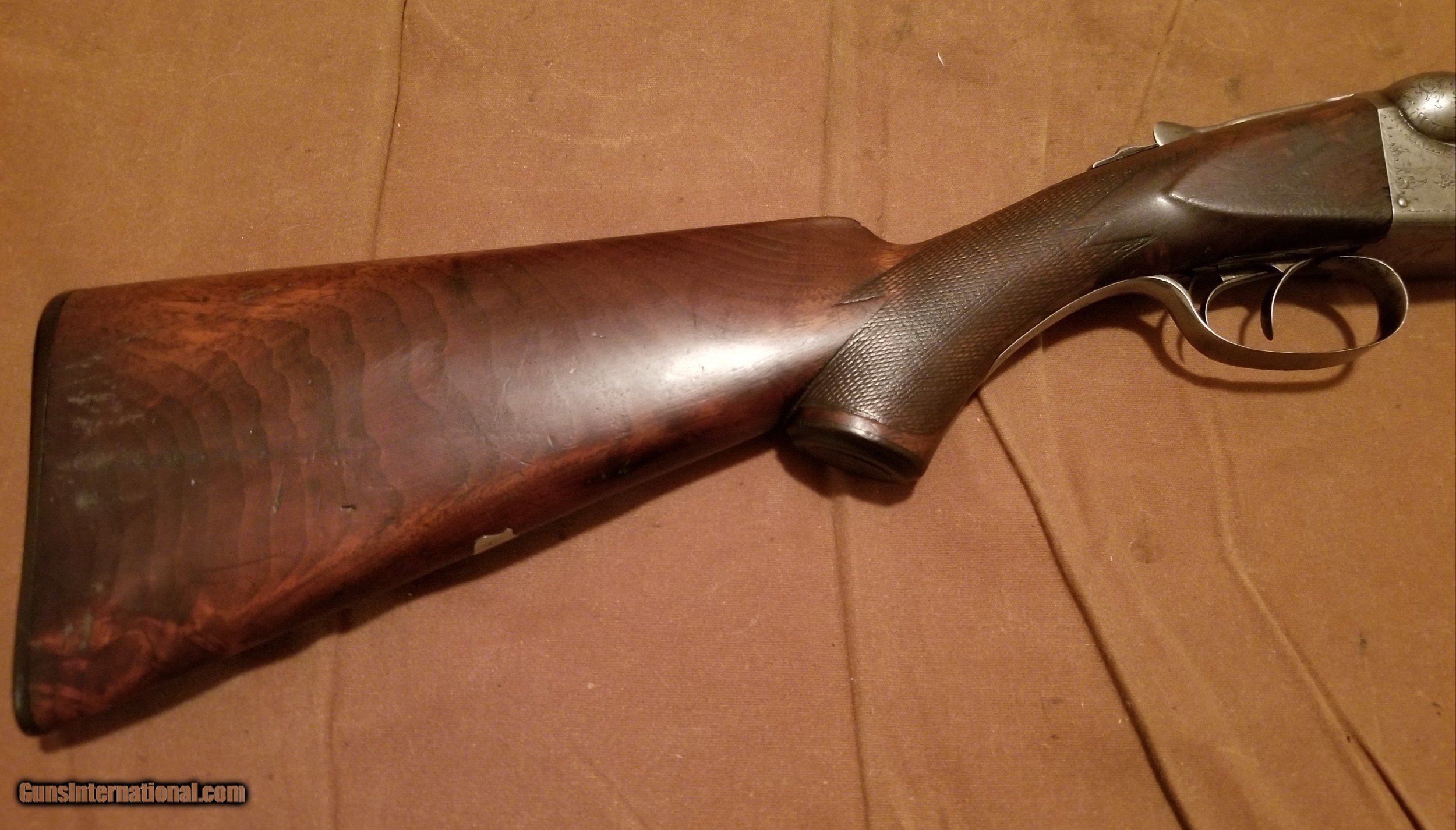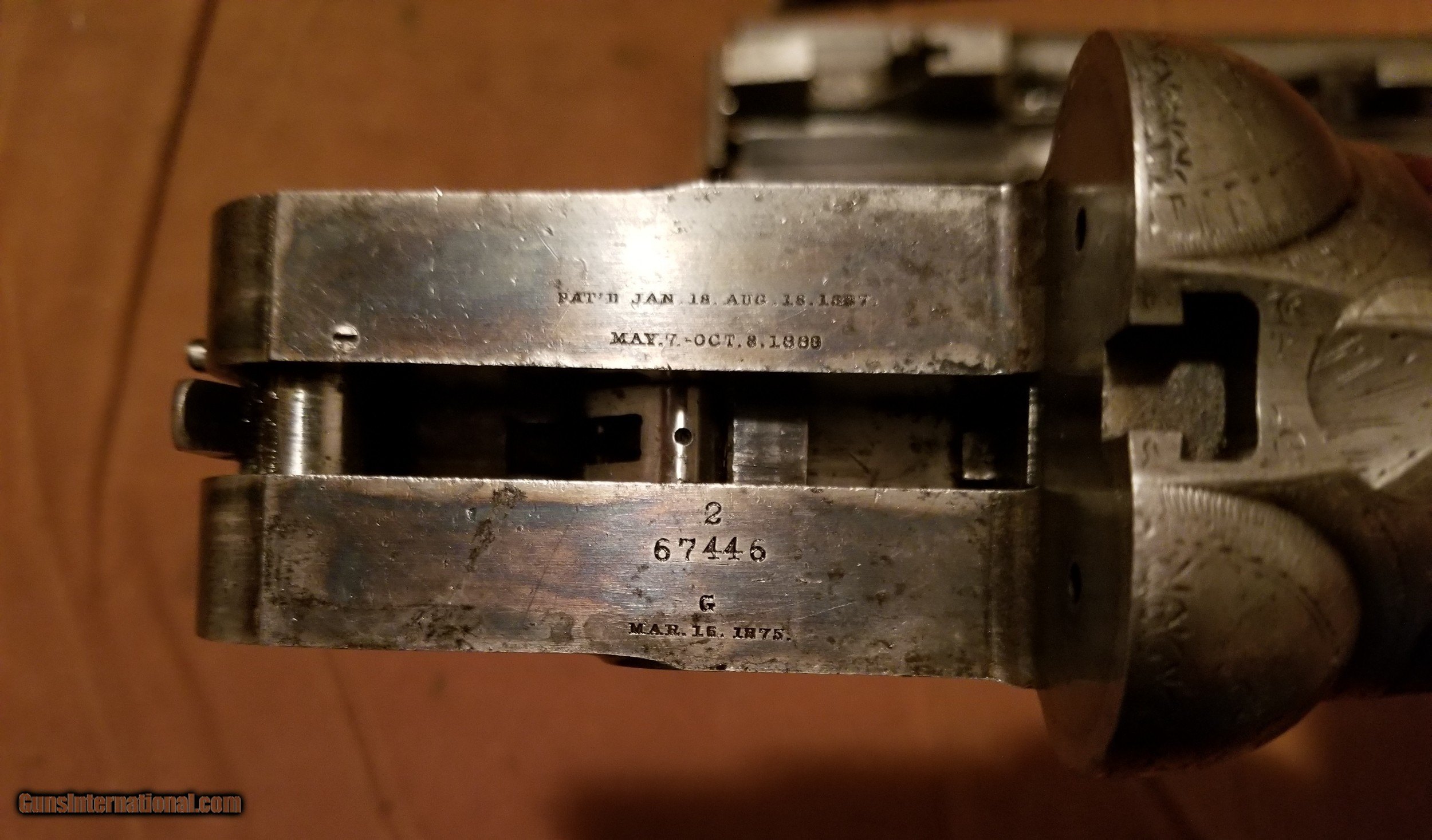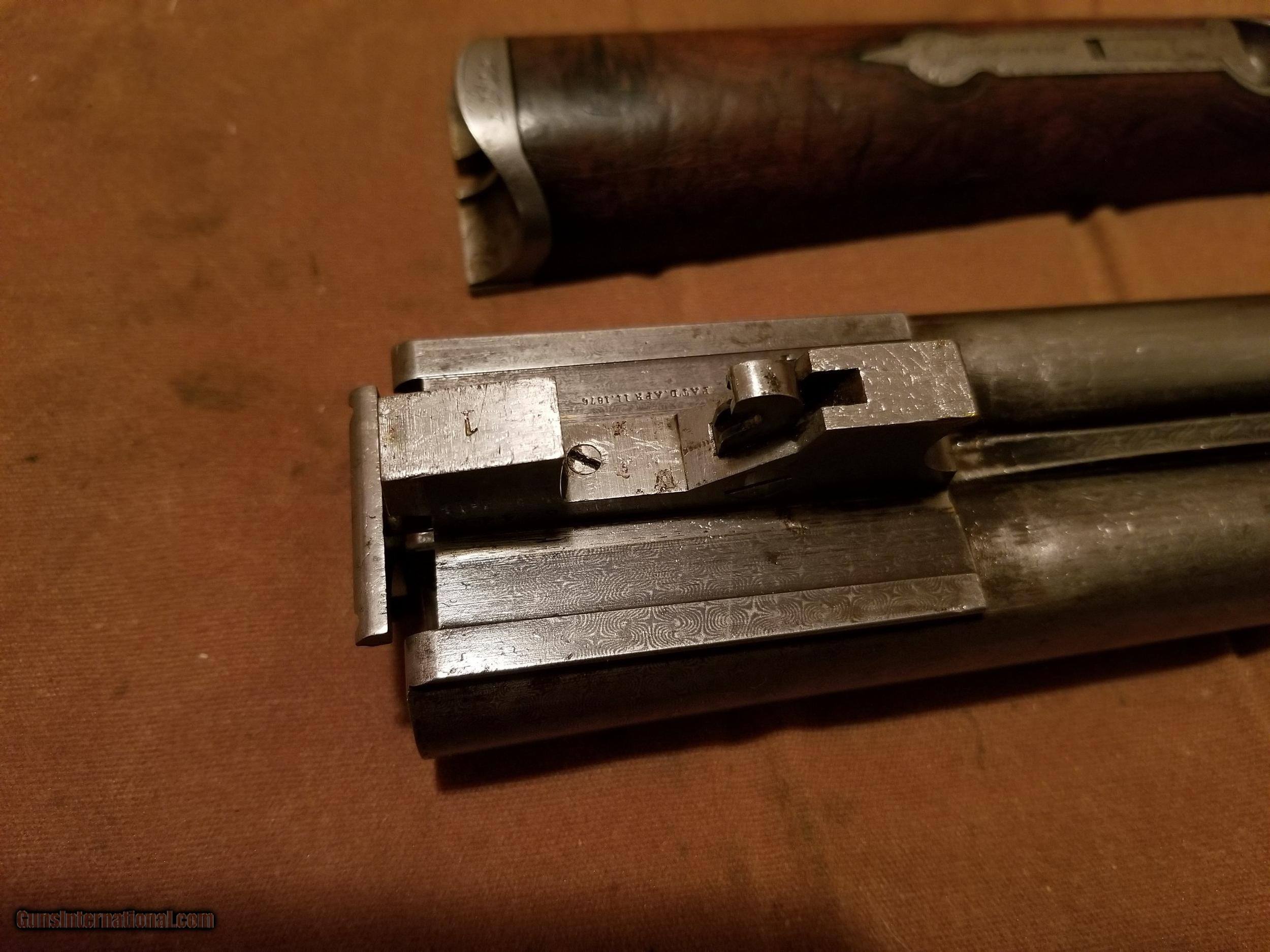 Description: For sale. Parker GH 12 gauge with a 1 frame, Damascus barrels, and fishtail top lever. 2 1/2 inch chambers. Chokes are improved cylinder, improved mod. Functions as it should. All screws are near perfect and in time. Original hard rubber butt plate. The stock is well worn as you can see, but clean with a beautiful pattern. One old repair near the trigger guard screw as pictured. The stock has a slight wave to it and the toe of the stock is slightly twisted out for a right hand shooter. It is an antique, so shipping right to your door is possible. Local inspection and pick up is also fine. You may call, or email any questions you may have. Any additional pictures can be requested. There is a 3 day, non shooting inspection allowed. Cash or certified check for fast shipping. Personal checks will need to clear first. Shipping is based on your location and I will gladly get you an estimate before we make a deal. It will be packed in a plastic, padded gun case and cardboard box, and well insured. You will need to sign for it. SOLD Antique: Yes Shotgun Gauge: 12 Gauge Manufacturer: Parker Model: GH Serial Number: 67446 Barrel Length: 30 Condition: Good Metal Condition: Clean Wood Condition: Worn Bore Condition: Good Chokes: IM/ IC Item Location: North Haven CT |