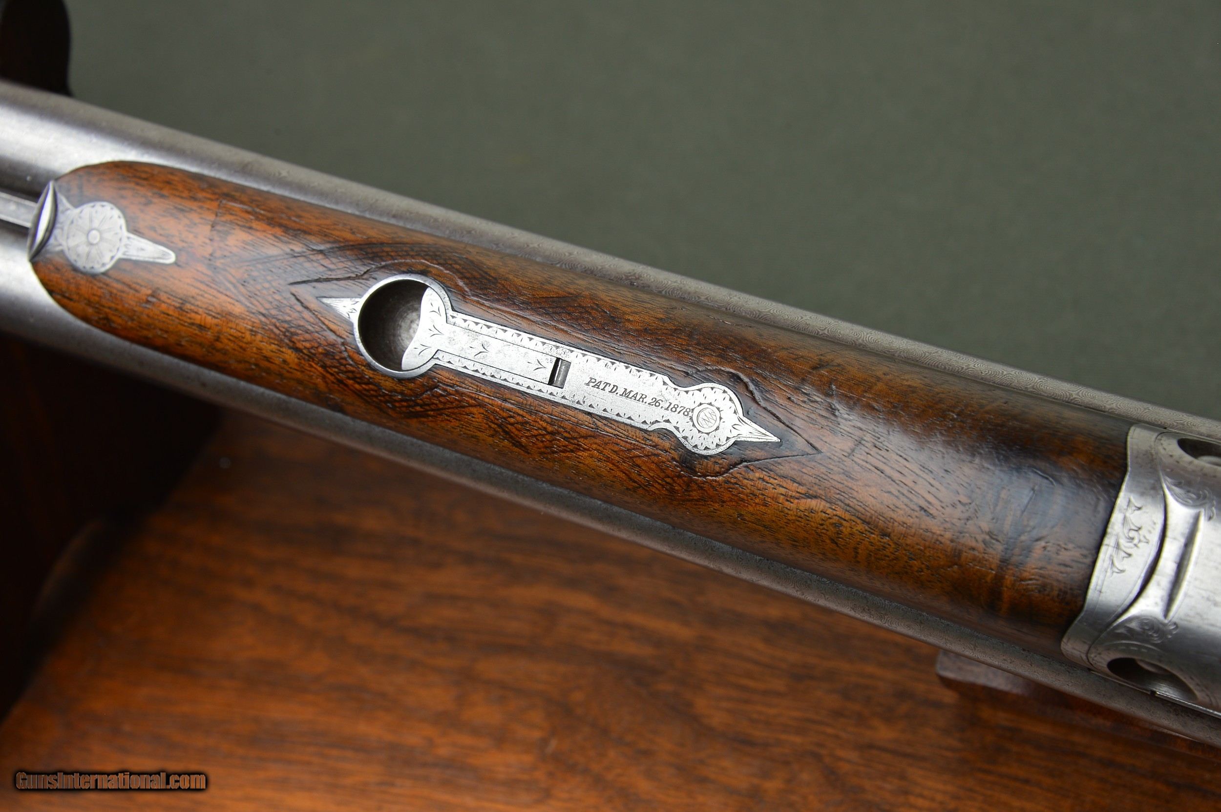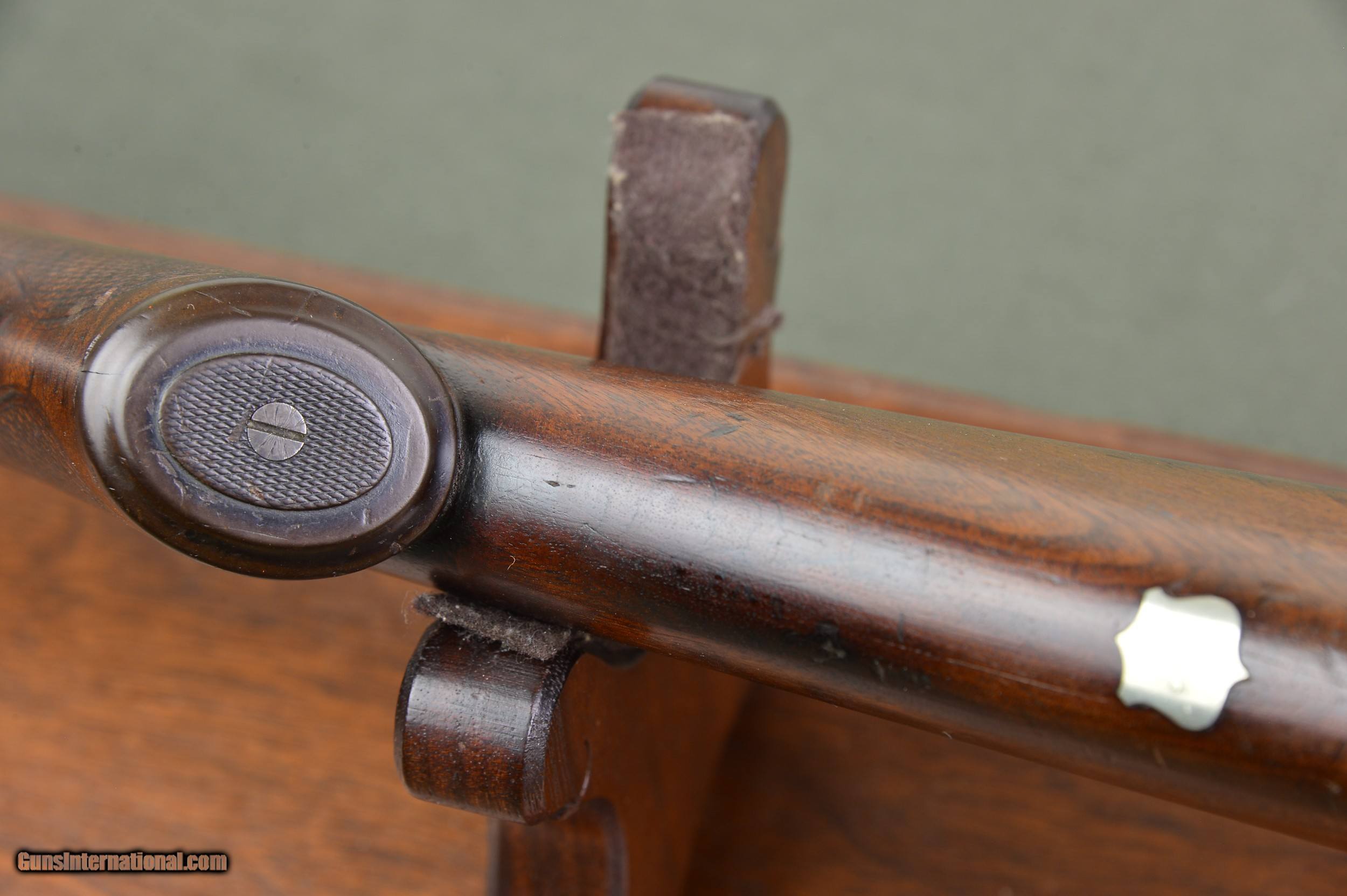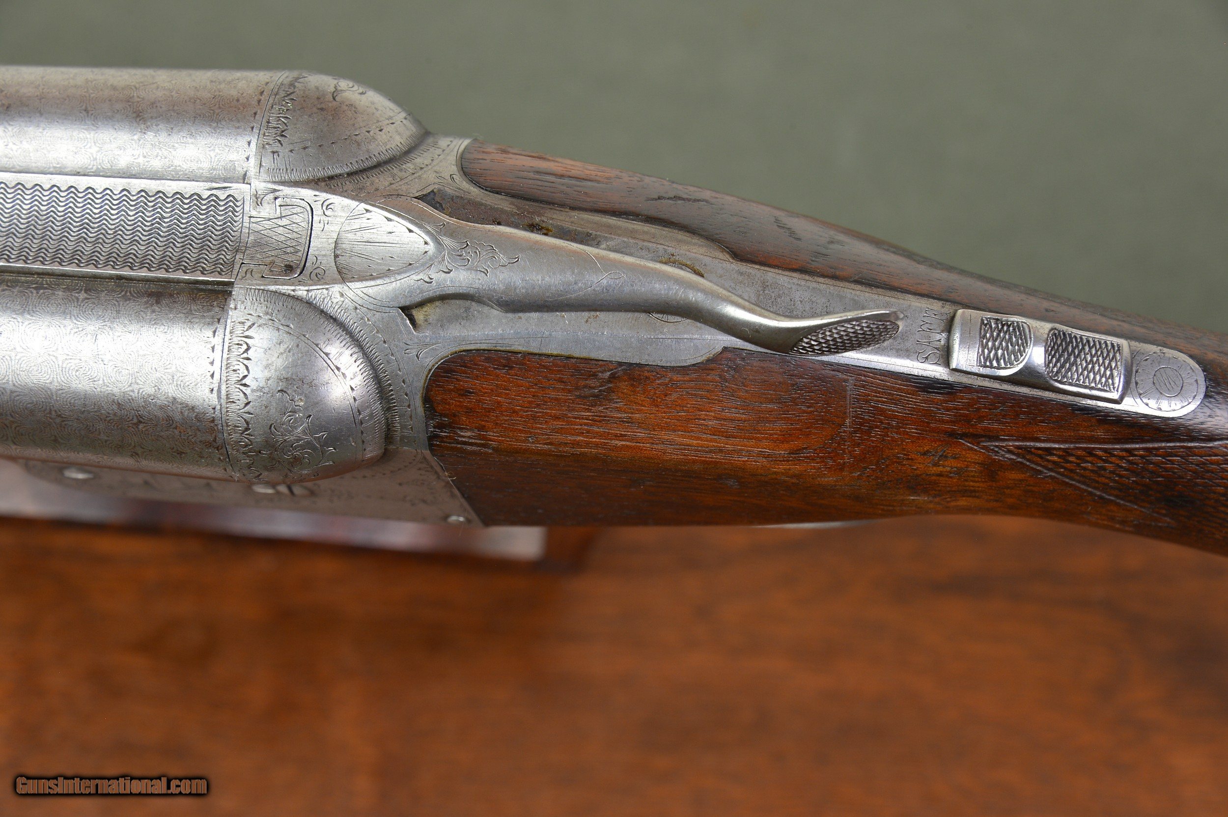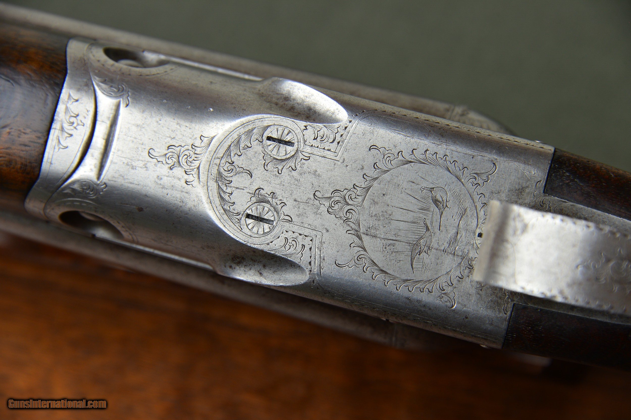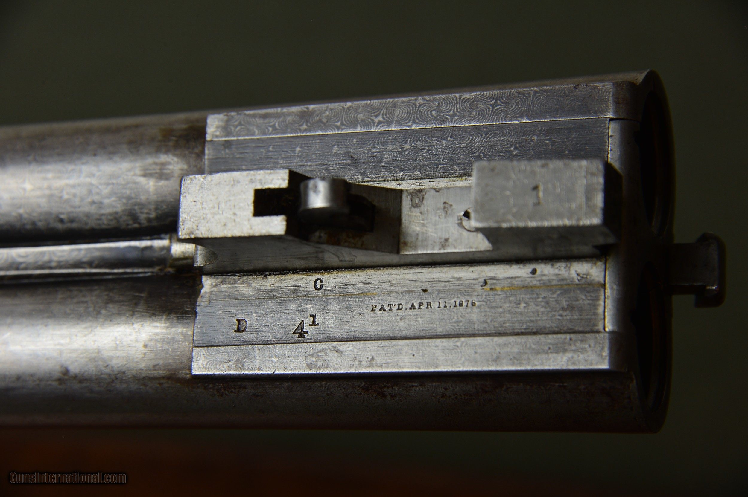 Description: *** SOLD *** A handsome Parker GH in good shootable condition. Appears to be unaltered with the possible exception of the chokes. Parker number 67446 was made in 1891 and has its original 2-5/8” chambers. It is a Number 2 grade built on the Number 1 frame. It has extractors, double triggers, auto safety and the neat fishtail toplever. There is residual case coloring on the inside of the forearm iron and the action water table and breech face. Overall weight is 7lb 9oz so it handles very nicely. *** The 30” barrels are made of Damascus steel. The bores are in fairly good shape with only a few mild pits and some staining. The barrels are topped by a raised solid concave Damascus rib. The right barrel is bored 0.754 with a constriction of 0.014 for an Improved Cylinder choke. The left barrel is bored 0.755 with a constriction of 0.044 for Full choke. *** The pistol grip stock sports the factory grip and the factory buttplate. The wood is nicely figured but shows normal wear for its age as does the checkering. A little TLC would go a long way with this stock as it is a very nicely figured piece of American walnut. Length of Pull is 14” including the thin factor buttplate. *** Nice Parker ready to be put back to work. *** The photographs are part of the description. Not for sale where prohibited by state or local laws. Buyer is responsible for all shipping, insurance, and any other related charges. I give a 3-day non-firing inspection period and will only accept returns at buyer’s expense SOLD Antique: Yes |