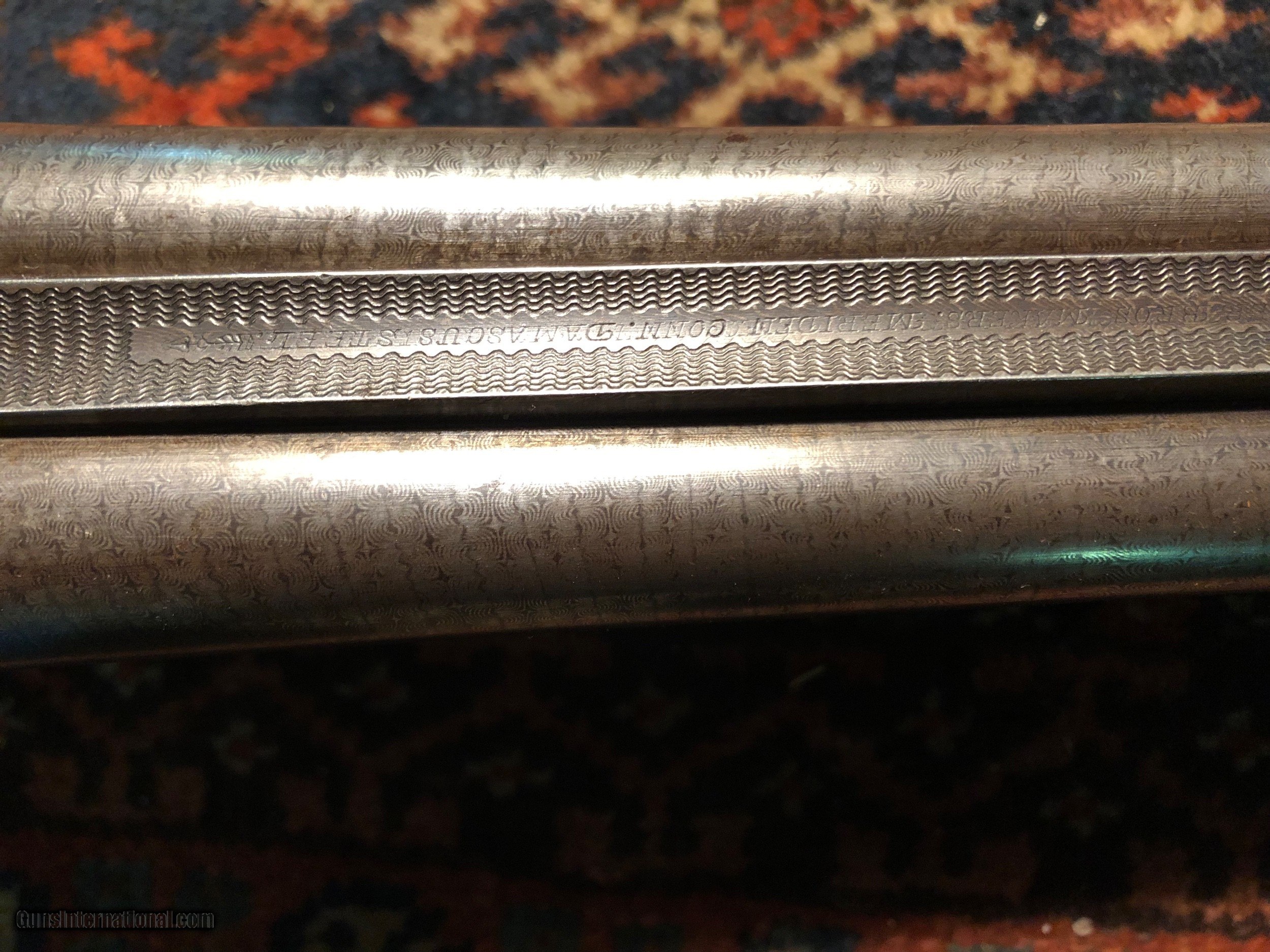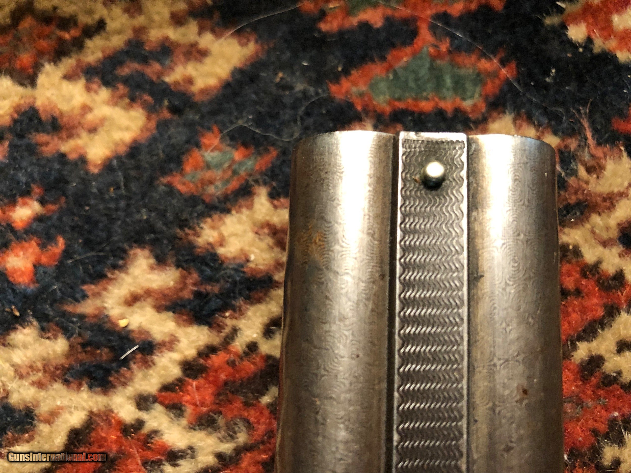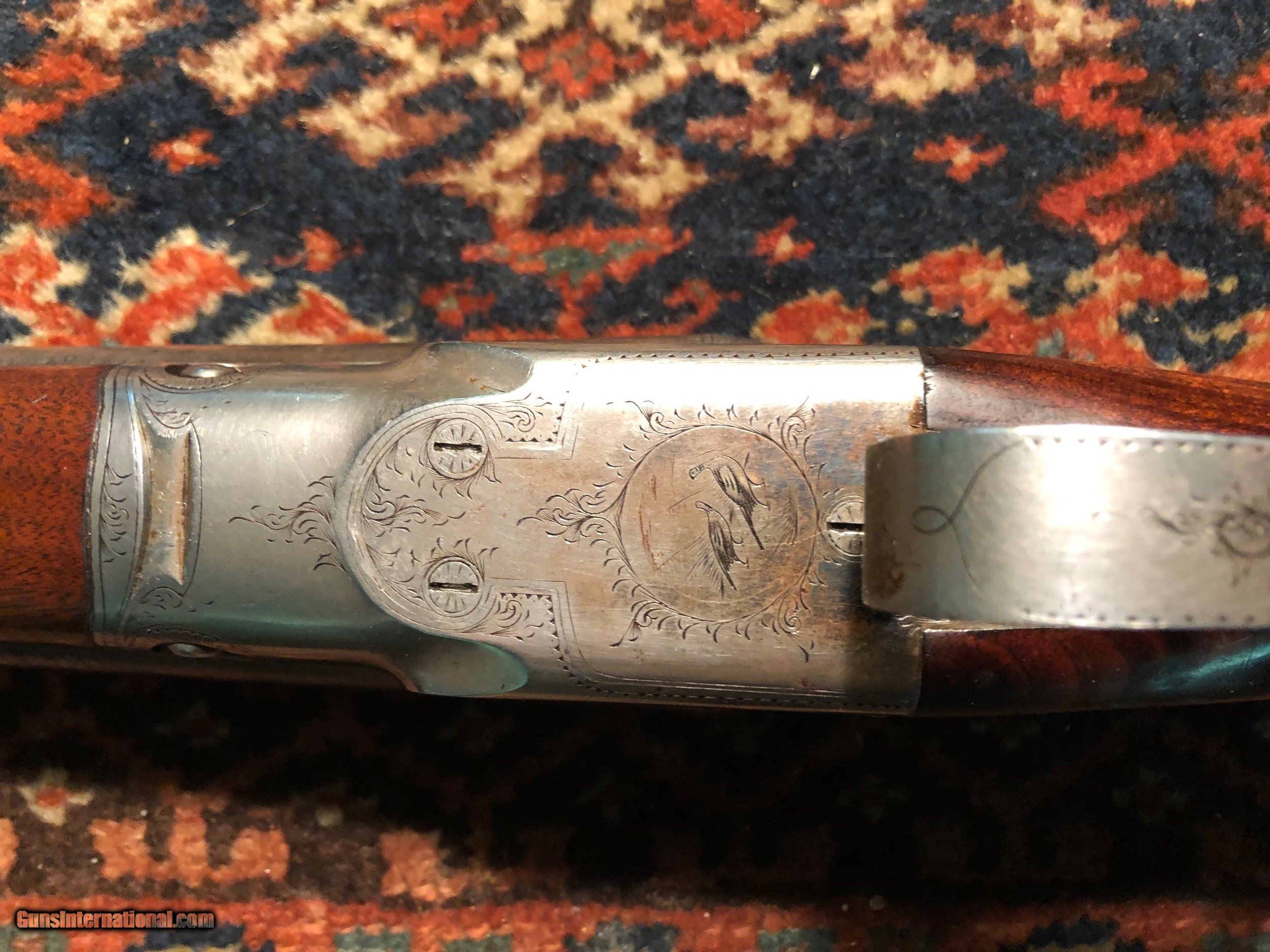 Description: excellent condition, perfect bores, thick barrels, 30 inch M&F, retains almost all original finish, some traces of case colors, tight, great wood, no cracks, no issues, 7.6 pounds, 2 3/4 chambers, #13500, crisp engraving, silvers pad, lop 14, 1.75, 2 7/8 DAH SOLD |