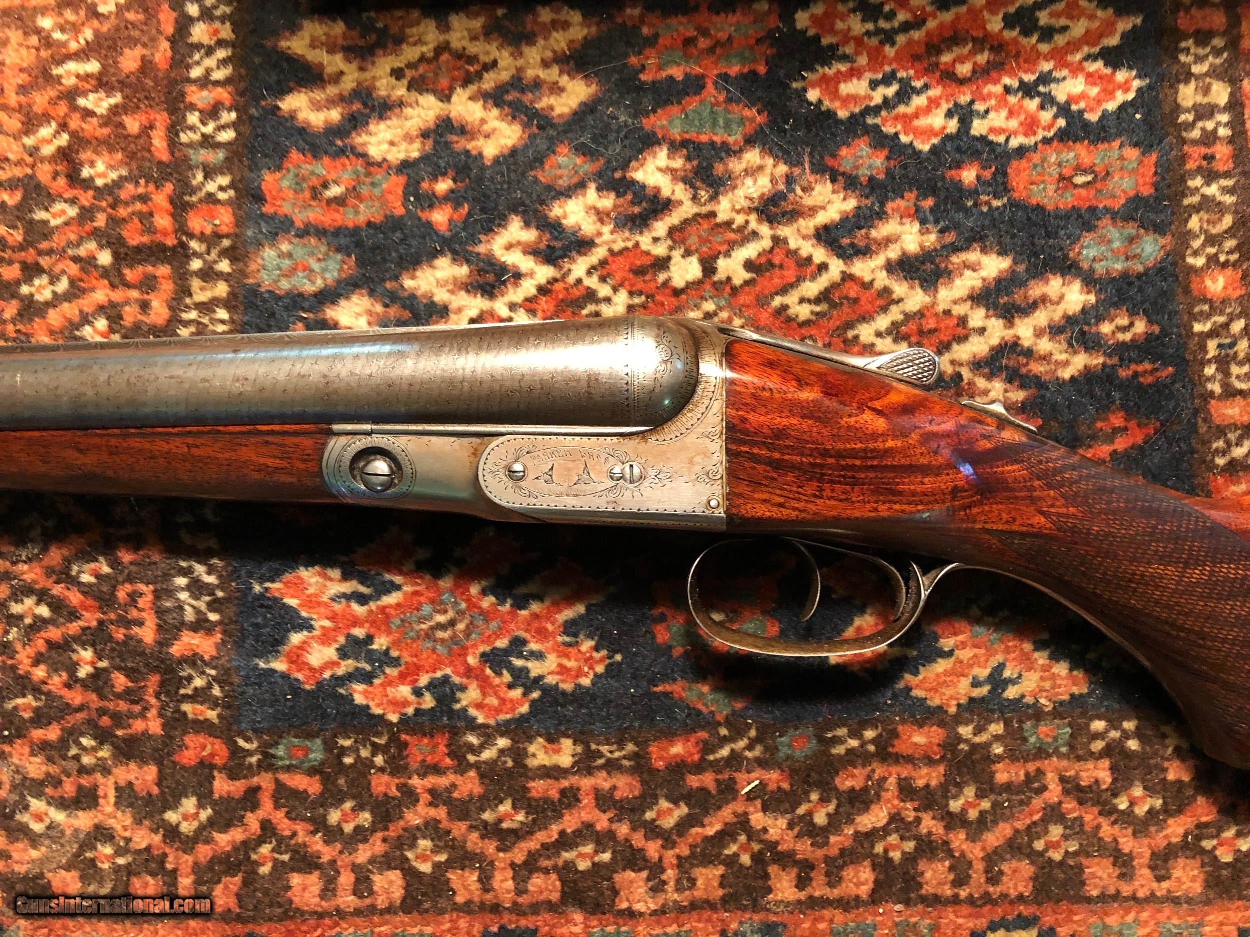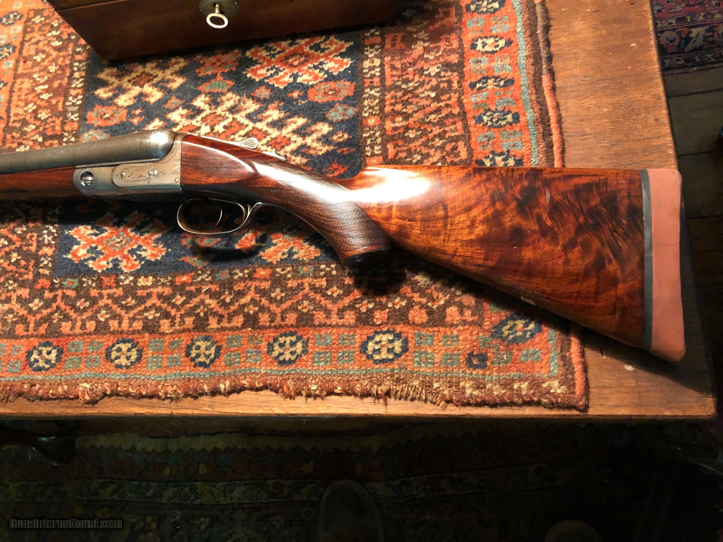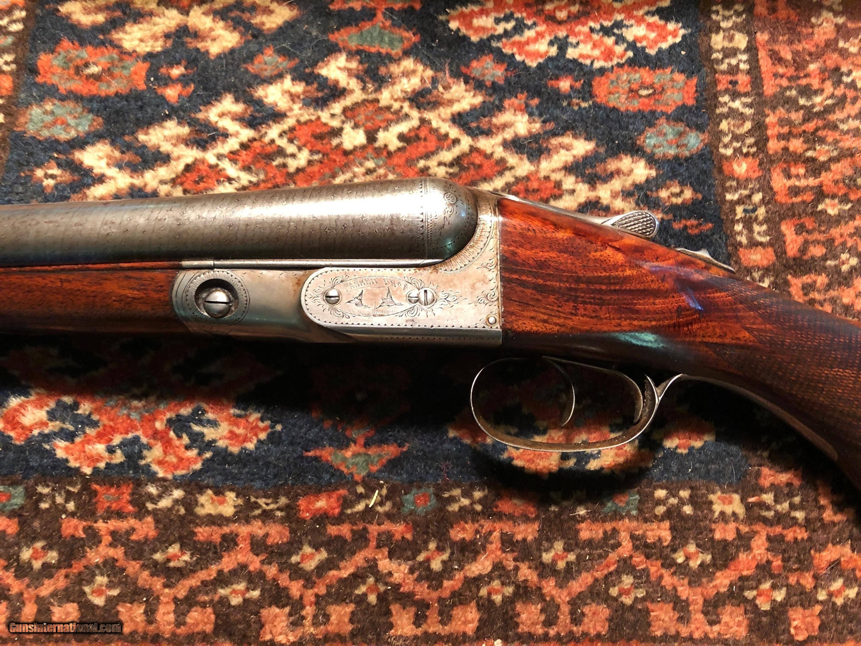 Description: excellent condition, perfect bores, thick barrels, 30 inch M&F, retains almost all original finish, some traces of case colors, tight, great wood, no cracks, no issues, 7.6 pounds, 2 3/4 chambers, #13500, crisp engraving, silvers pad, lop 14, 1.75, 2 7/8 DAH SOLD |
