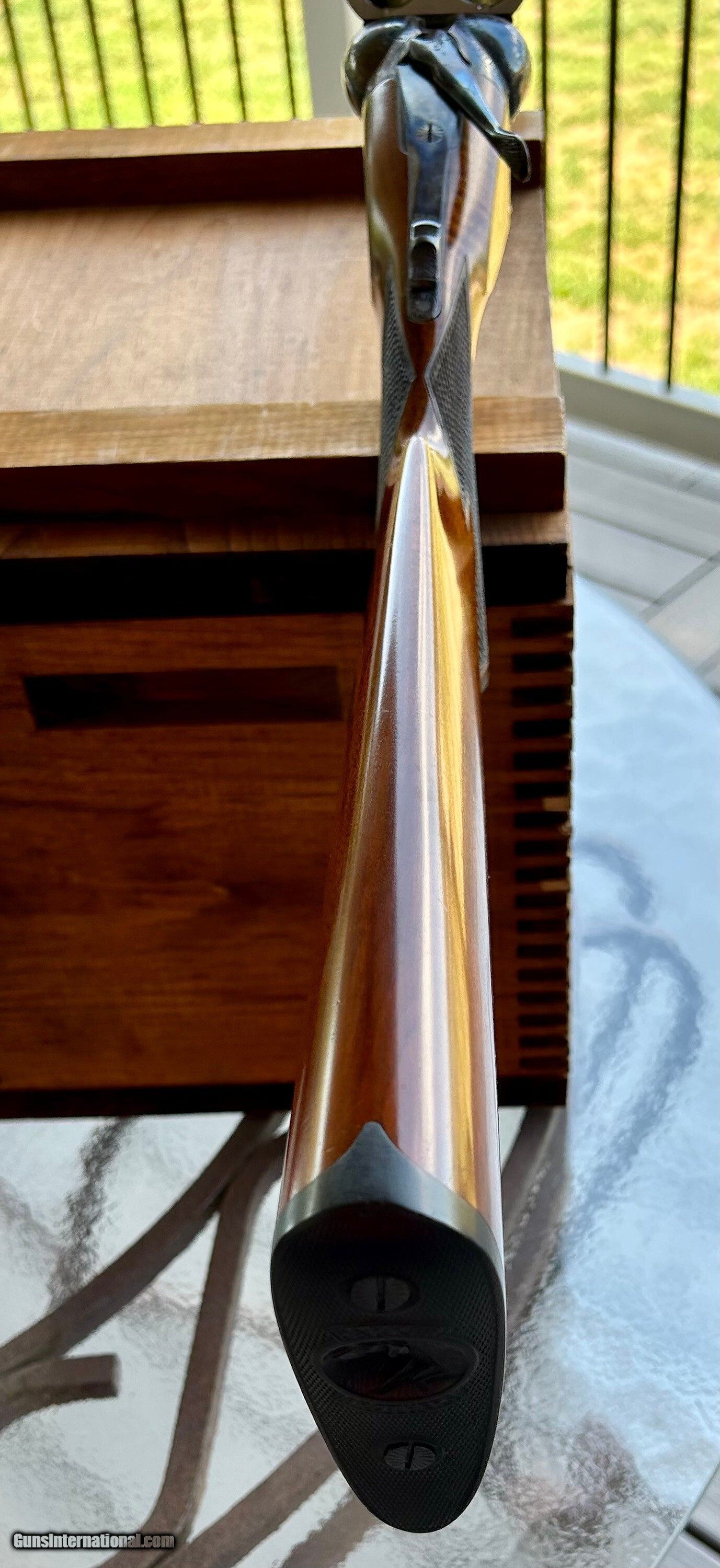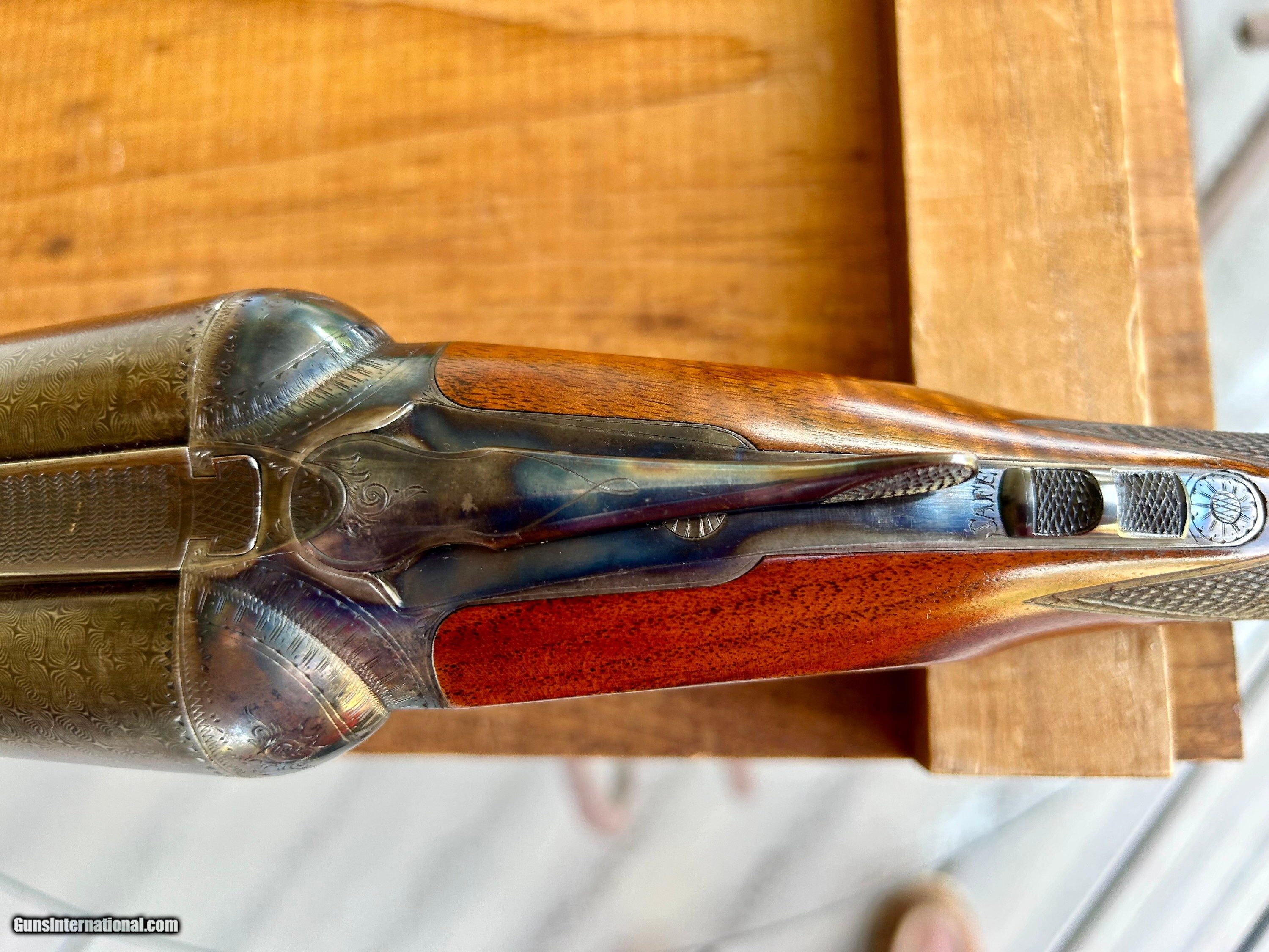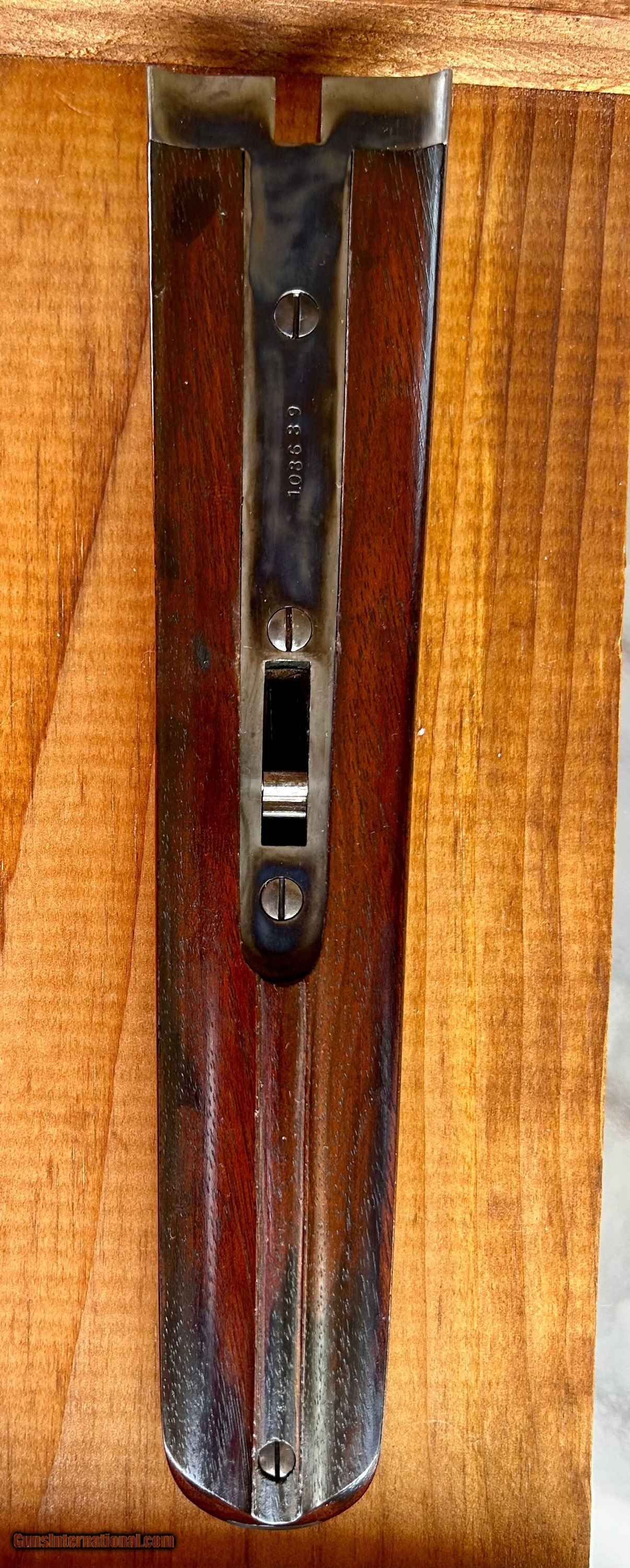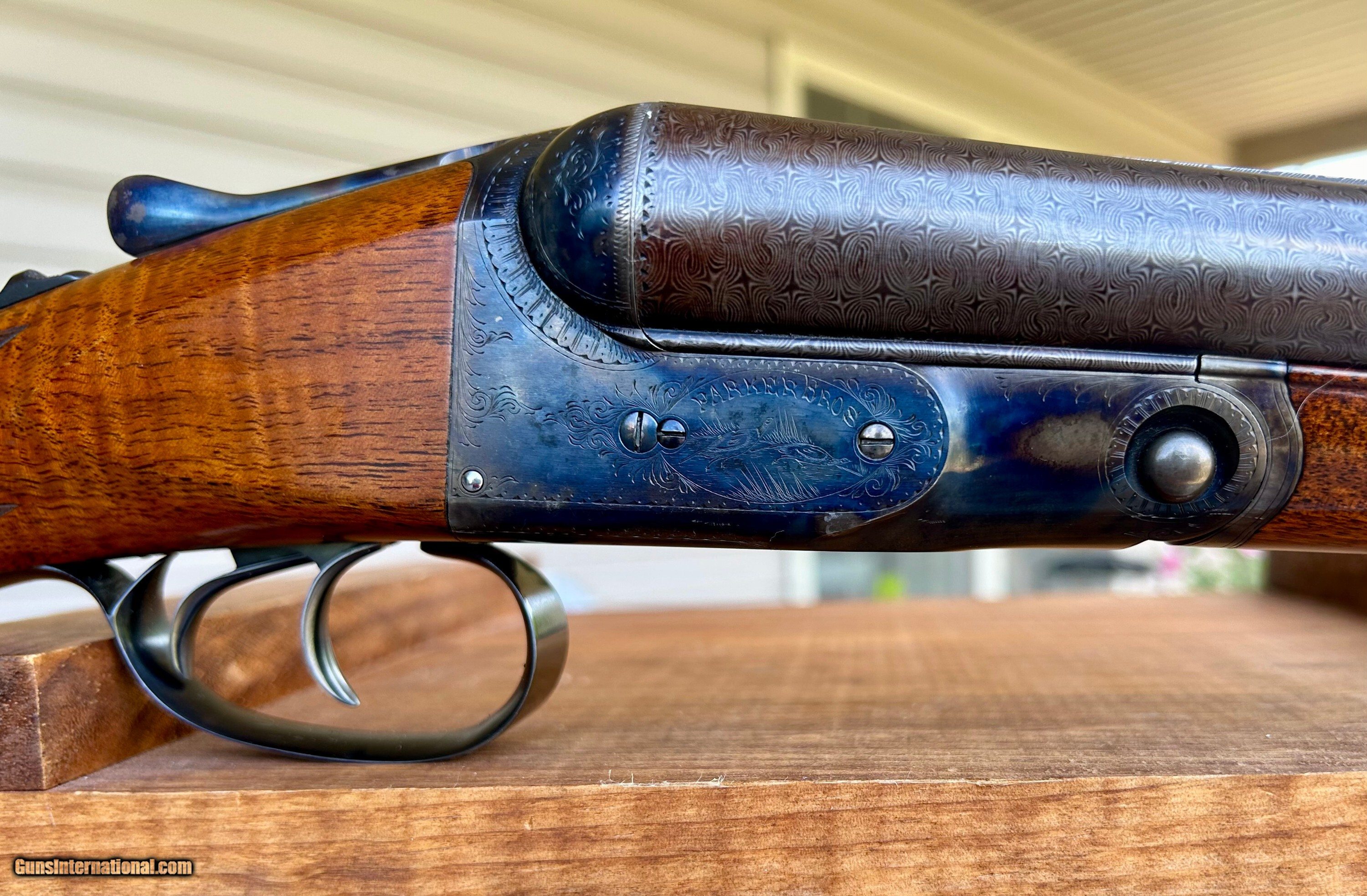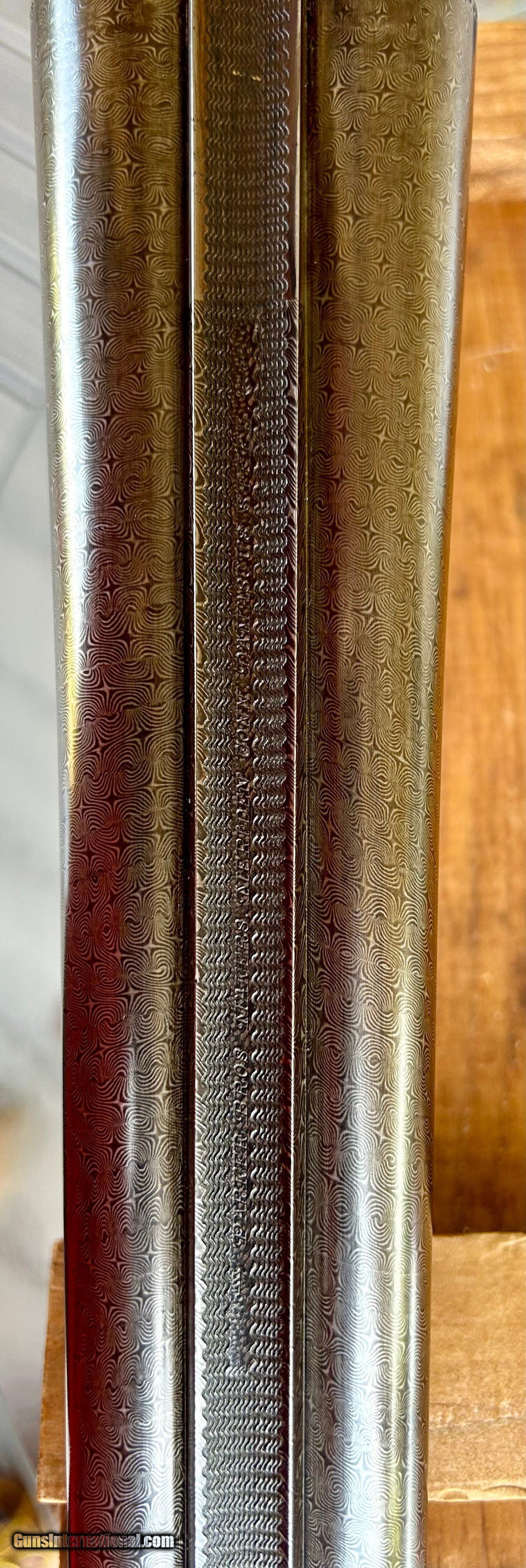 Description: 1902 Parker GH. Damascus barrels. Extractors. Double triggers. Dogs head butt plate. Splinter forearms. 8Lb, 30” barrels, Full & Full. 2 3/4” chambers. Wall thickness; .029r & .030l, Drop at comb 1 3/4” Drop at Heel 2 1/2”. LOP; 14” frt trigger, 13” rear. Beautiful Damascus pattern. Receiver colors redone at some point. Shotgun Gauge: 12 Gauge Price: $6,000.00 Contact Seller |