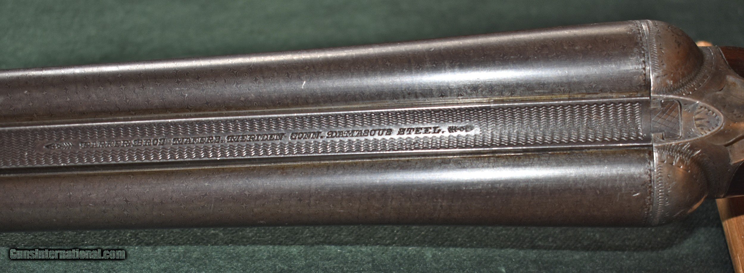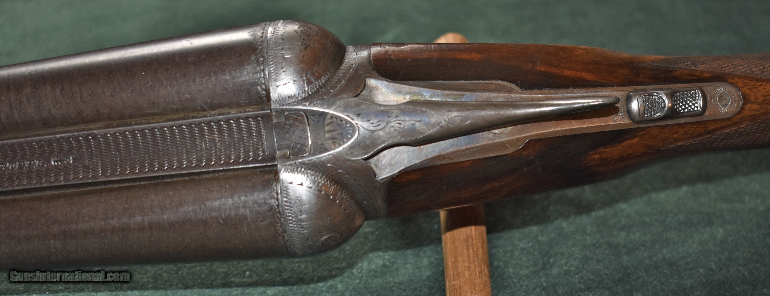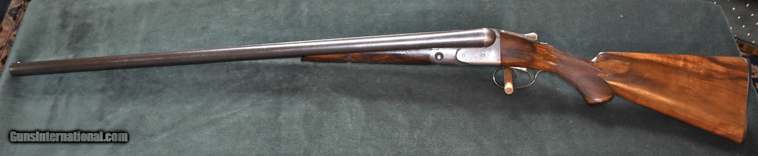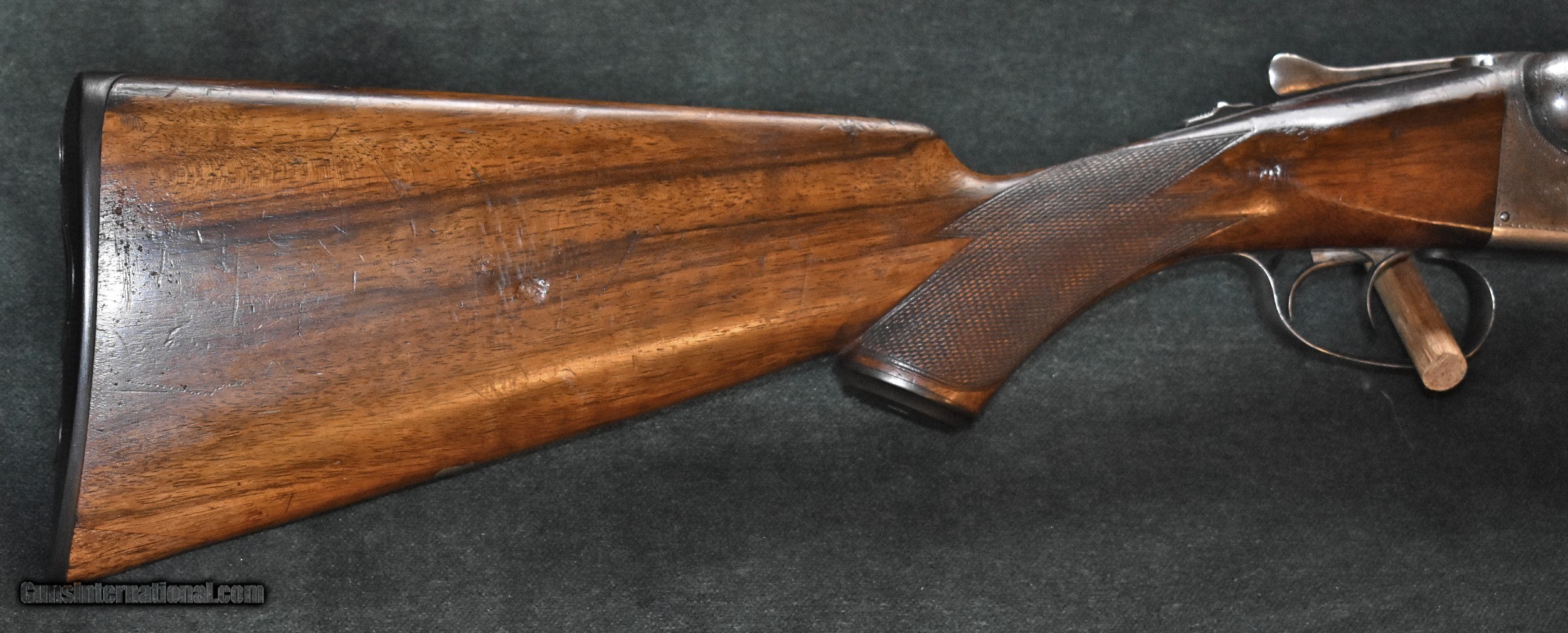 Description: An unusaul Parker GH grade 12 gauge with full length Briley 20 gauge insert tubes. Built in 1906 according to the factory letter, this gun has 30" damascus barrels choked improved cylinder (.005") and improved cylinder (.005"). In addition, it has been fitted with 20 gauge full length Briley titanium insert tubes with screw in chokes.The gun is in excellent condition retaining 25% of the original case colors and 90% of the original damascus pattern. The bores are excellent with no rust,or pitting. The barrels are on face and lock up tightly to the action with no play and have excellent wall thickness. The is one minor dent in the right barrel near the muzzle that does not show in the bore.(shown in photos).The stock is sound with no cracks or damage other than light handling marks. The stock retains the oiriginal dogs head buttplate with widows peak. Built on a #2 frame,the gun weighs 8-0 with the tubes in and 7-9 without the tubes. The stock dimensions are 143/8"x11/2"x21/2". I have shot the gun with 12 gauge 1oz loads.and 20 gauge 1 oz. loads and it performs well with either. The Briley tubes have and improved cylinder and a modified choke tube in the tube now. Others can be easily ordered from Briley if needed. A great Parker for all types of shooting. C&R eligible. SOLD Curio/Relic: Yes Shotgun Gauge: 12 Gauge, 20 Gauge Manufacturer: Parker Bros. Model: GH Serial Number: 124817 Barrel Length: 30 Chambers: 23/4 Ejectors: extractors Condition: excellent Metal Condition: excellent Wood Condition: excellent Bore Condition: excellent Barrel Type: damascus steel Action: double barrel Triggers: double Stock Dimensions: 143/8"x11/2"x21/2 Butt Pad: Factory Dog's Head Buttplate Manufacture Date: 1906 Extras: factory letter Minimum Wall Thickness Left: .035 Minimum Wall Thickness Right: .033 |